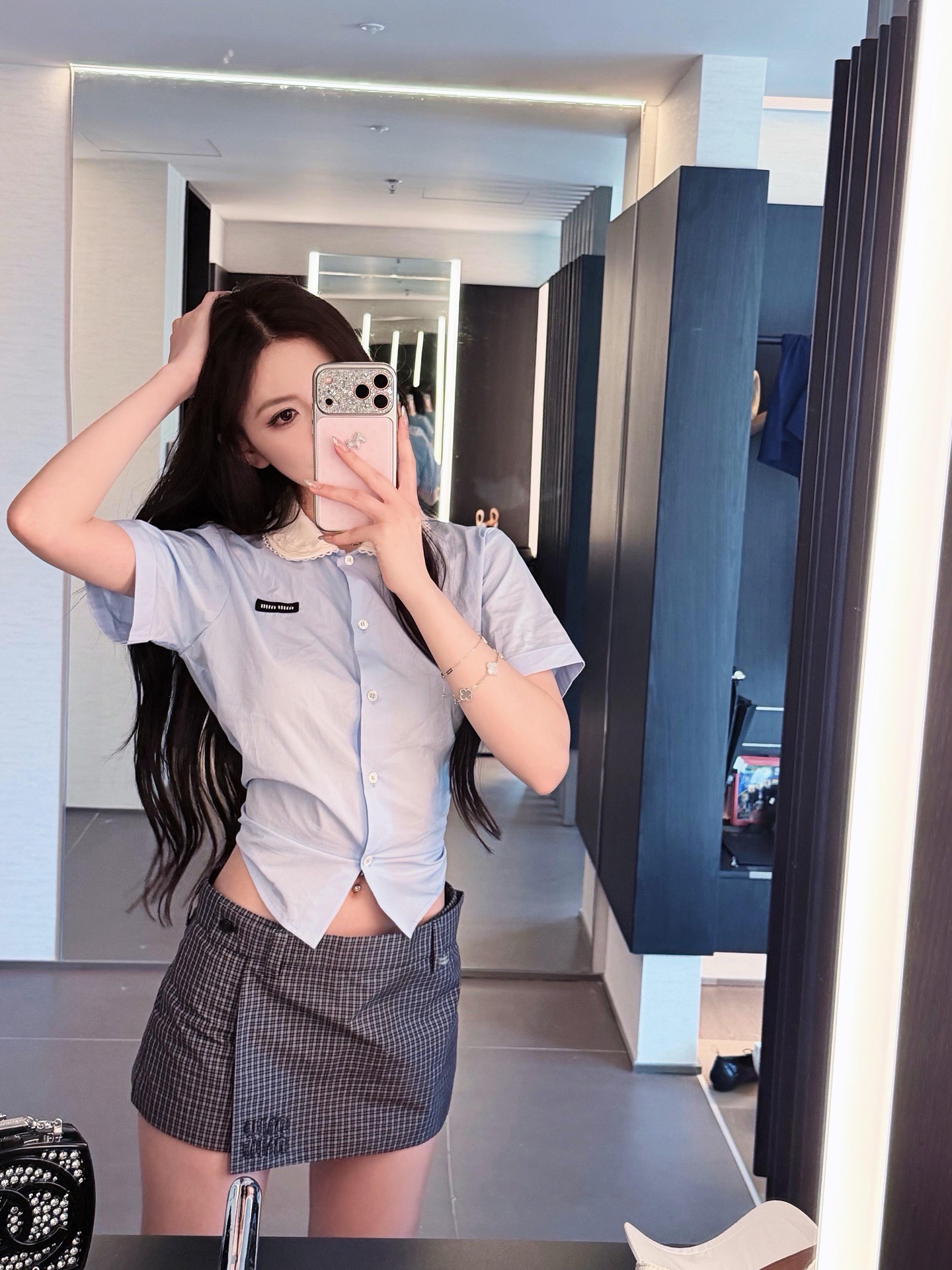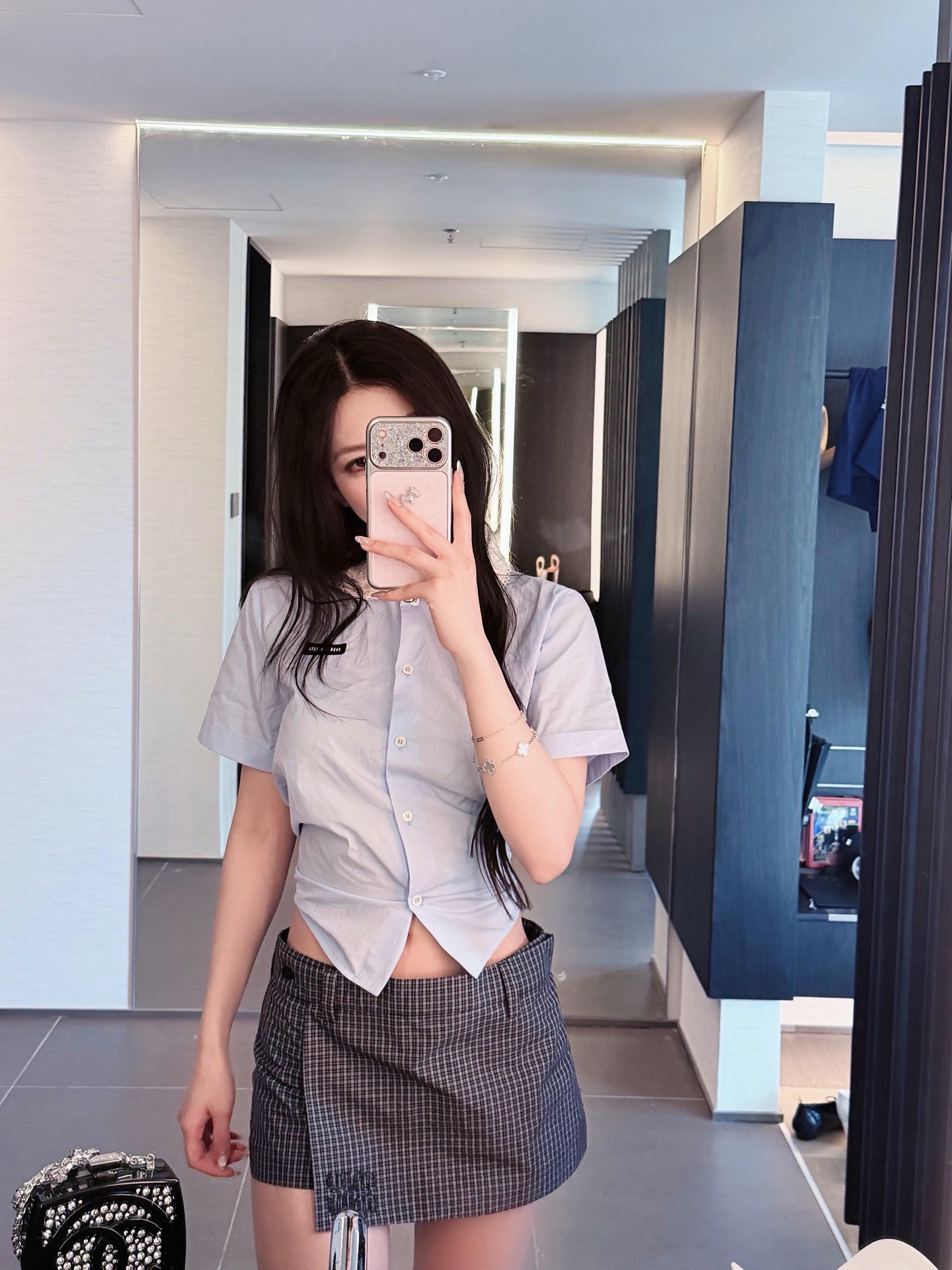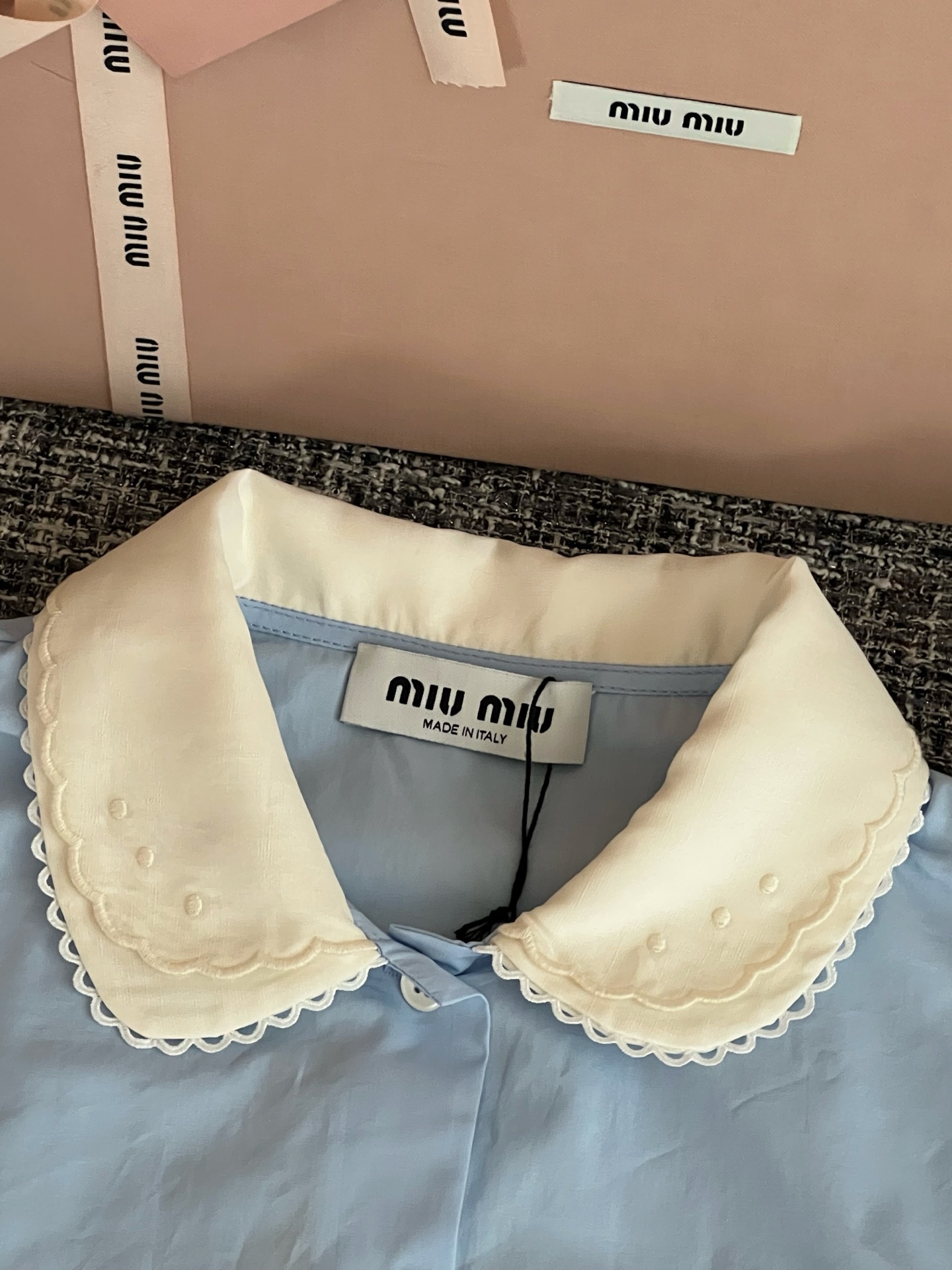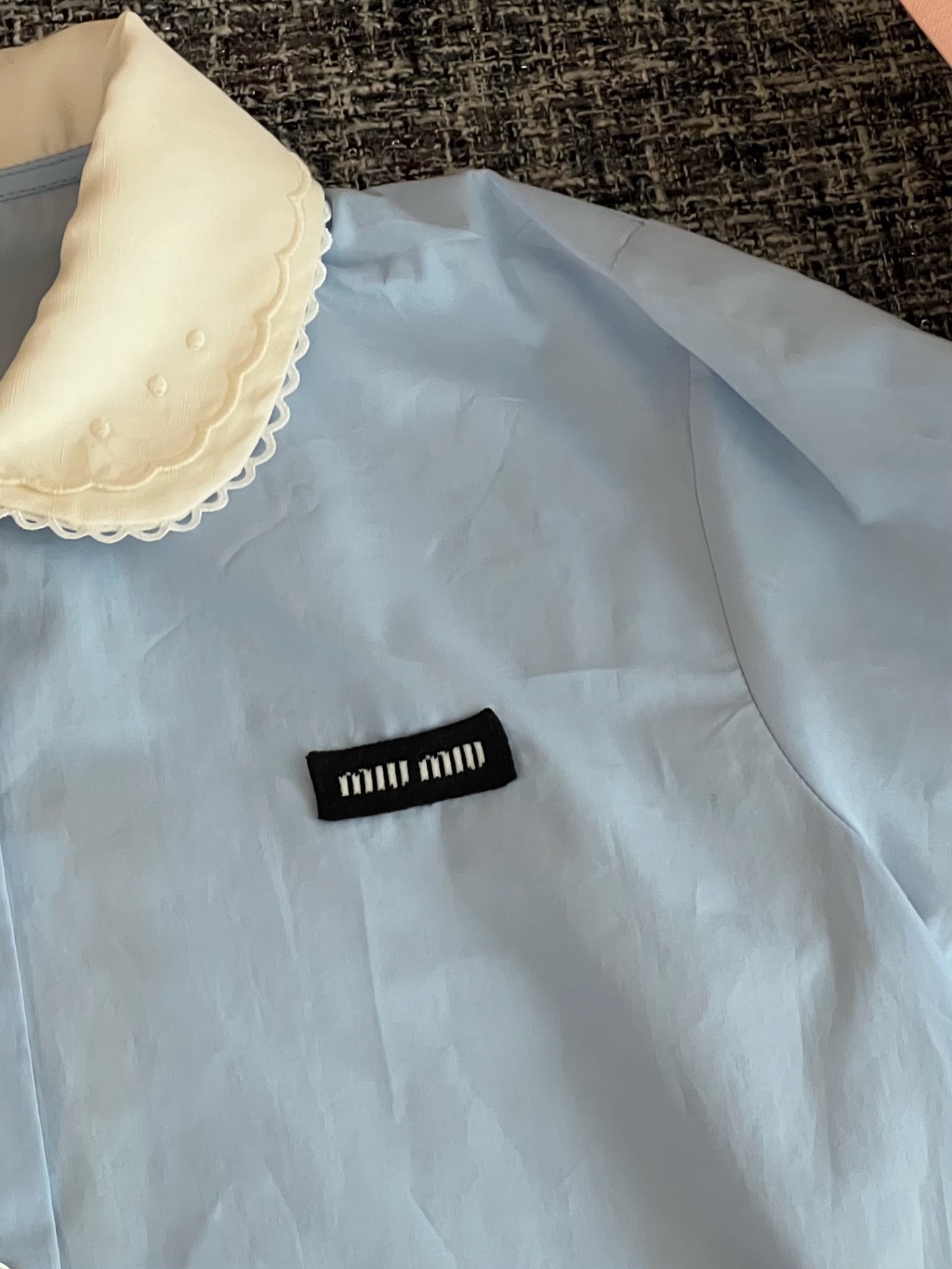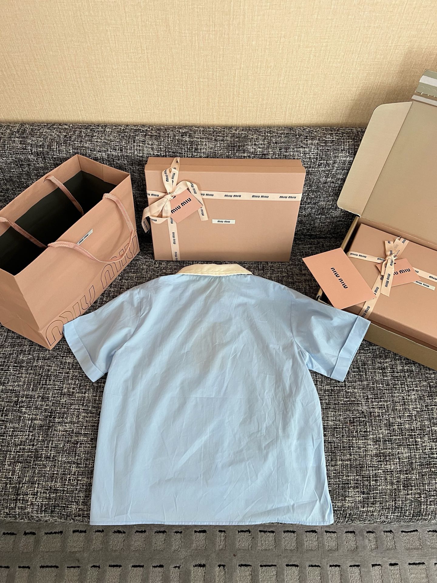 MiuMiu 26早春新款衬衫短袖🐮13600购买Zp拆解打造,订织订染三防梭织面料🐮 真正用到100%纯棉纱线做到对版出货💪工艺放大看细节除还原度接近98以上 做工也无敌了🔥真正做到1:1还原 直接闭着眼购买👀码数:36 38 40