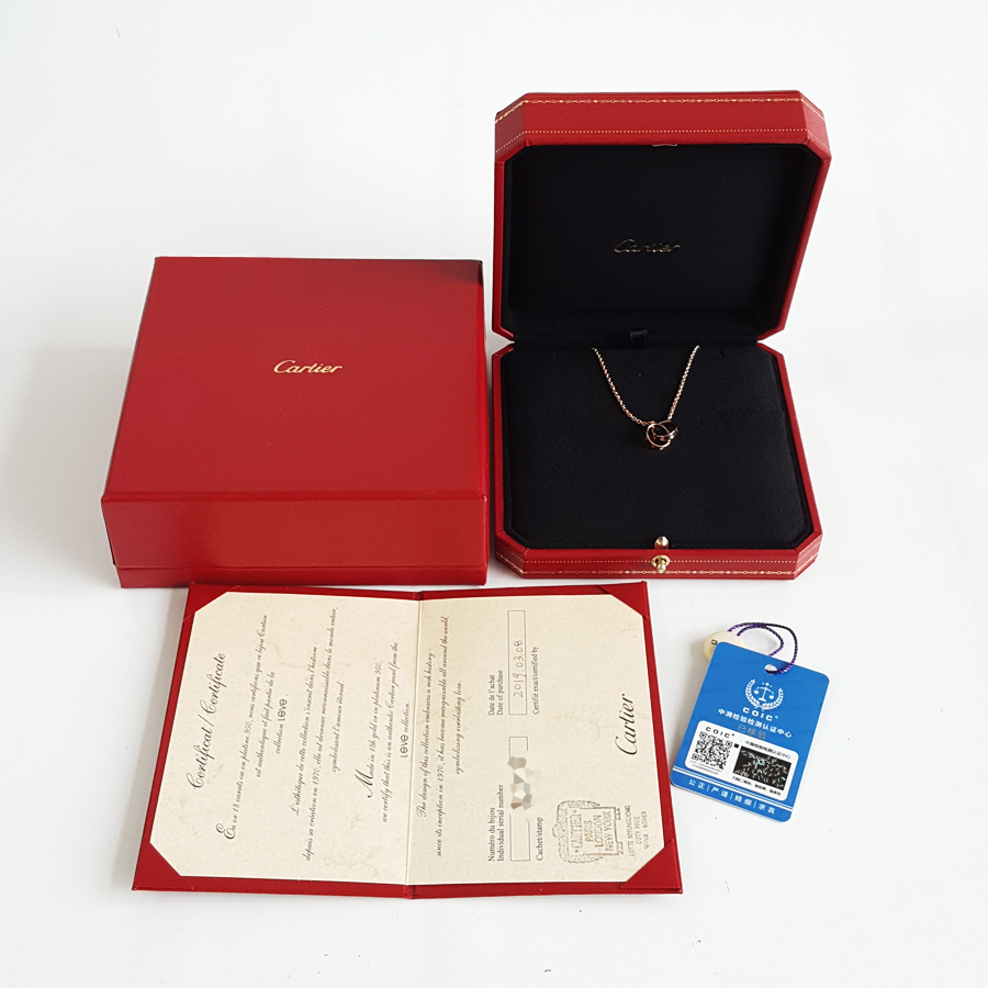 【95新】Cartier卡地亚LOVE系列B7212300玫瑰金双环LOVE项链 链长约44cm女士260326NJT26