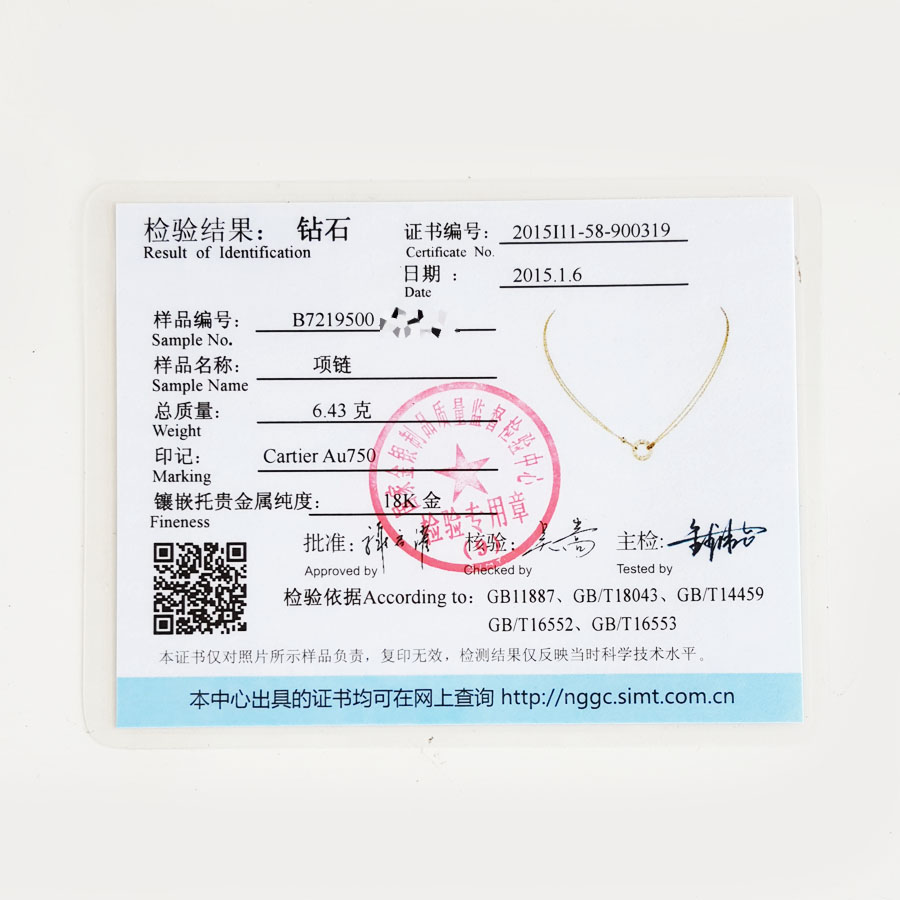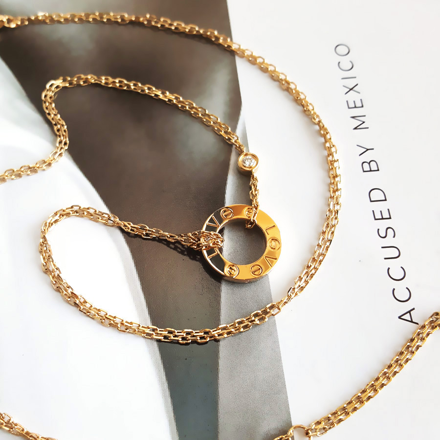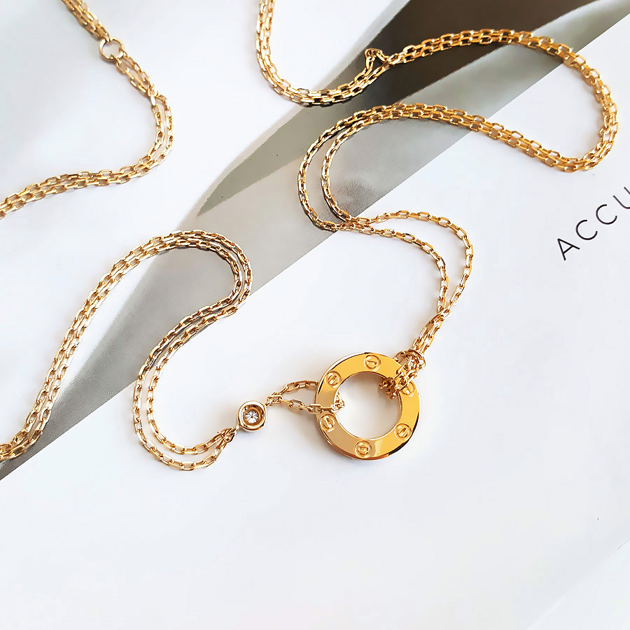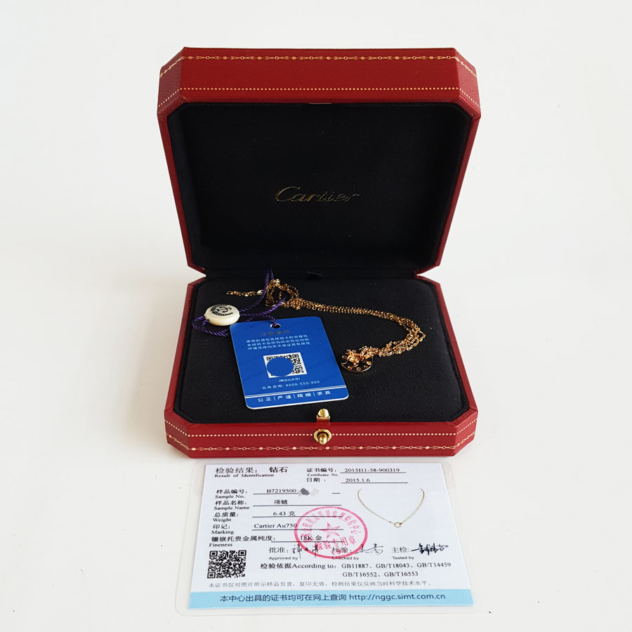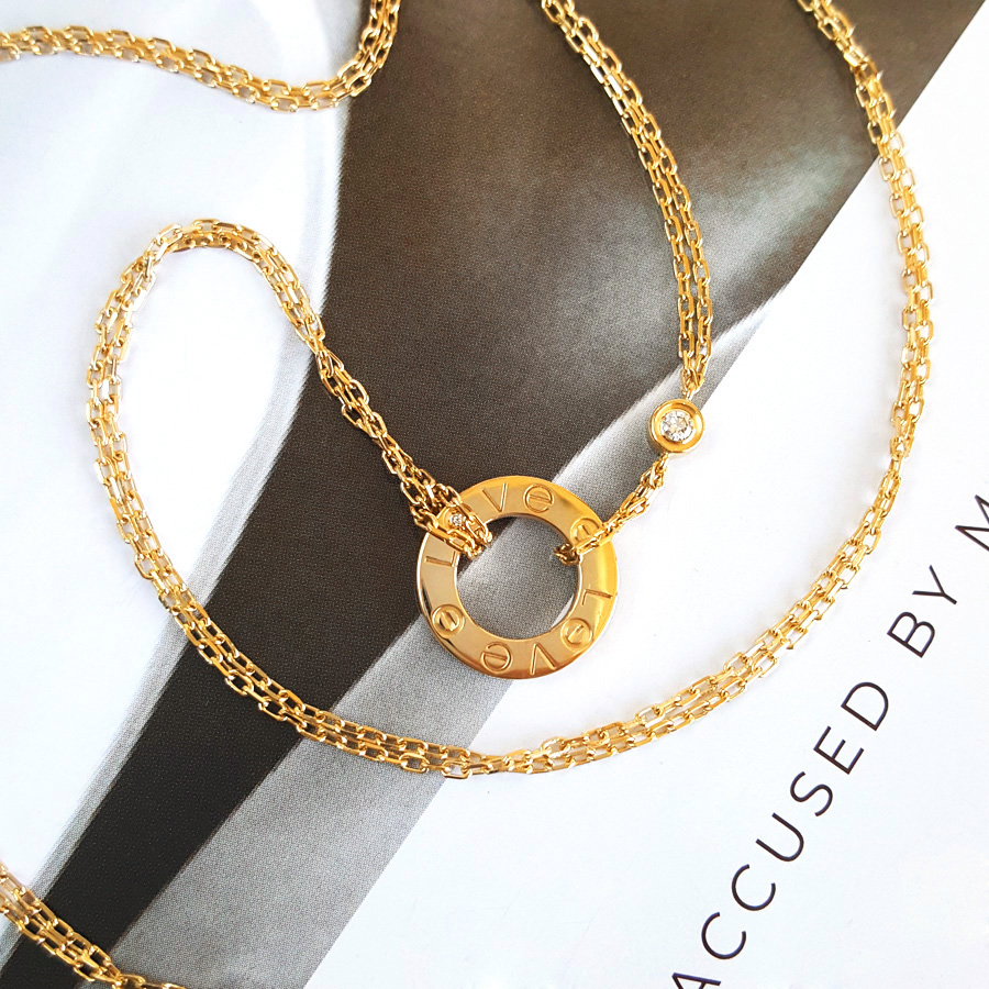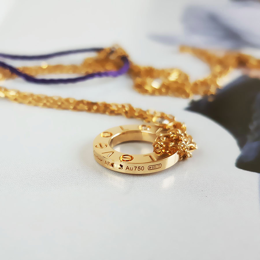 【95新】Cartier卡地亚LOVE系列B721950018K黄金镶2钻小圆饼LOVE项链链长约41cm女士050326NJS20