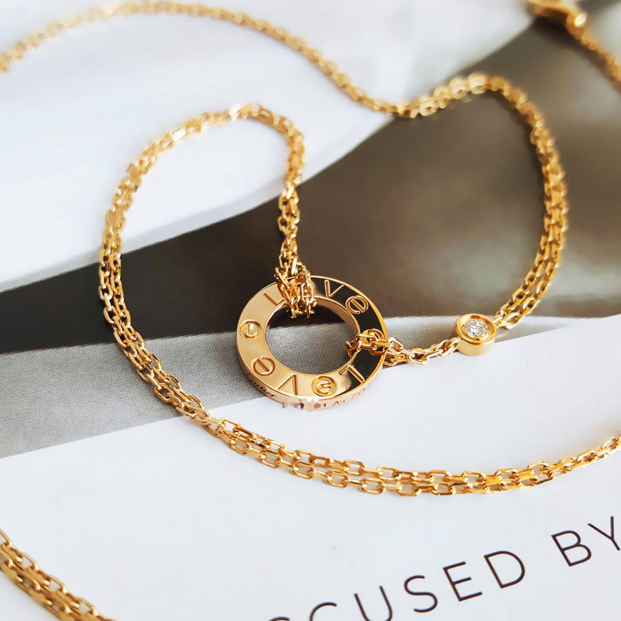 款式 | 18K黄金镶2钻小圆饼LOVE项链 |