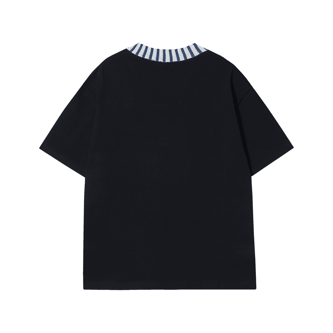 6583208早春新款时尚个性韩版简约撞色假两件短袖T恤百搭情侣套头上衣