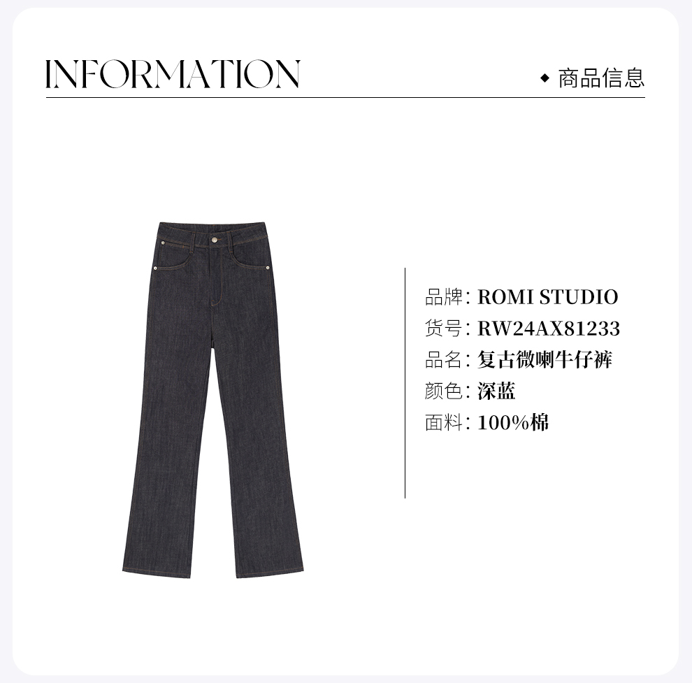 ROMI STUDIO“超模牛仔”100棉水洗高士线YKK微喇牛仔裤RW24AX81233