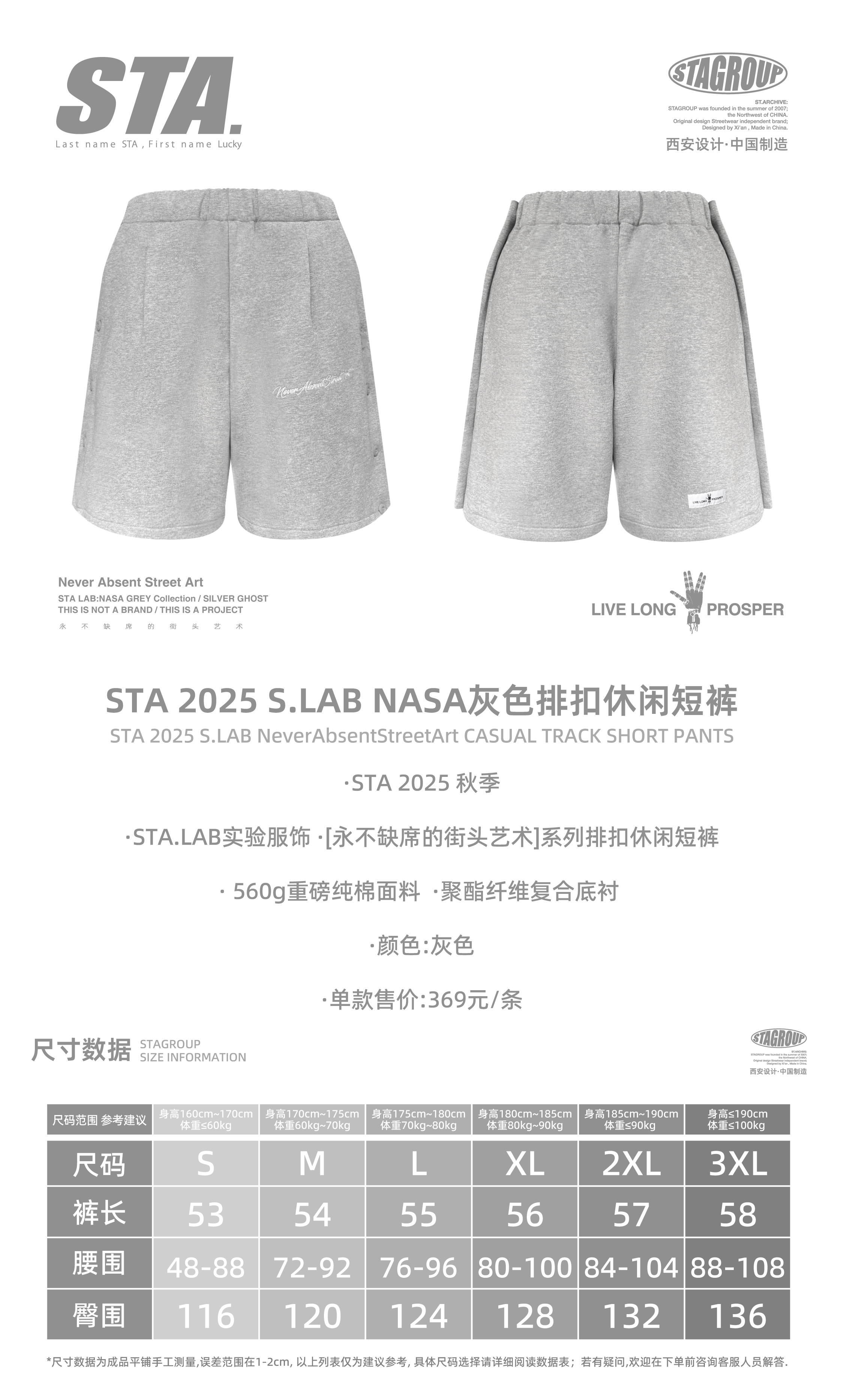 S.LAB | NASA系列灰色排扣休闲短裤