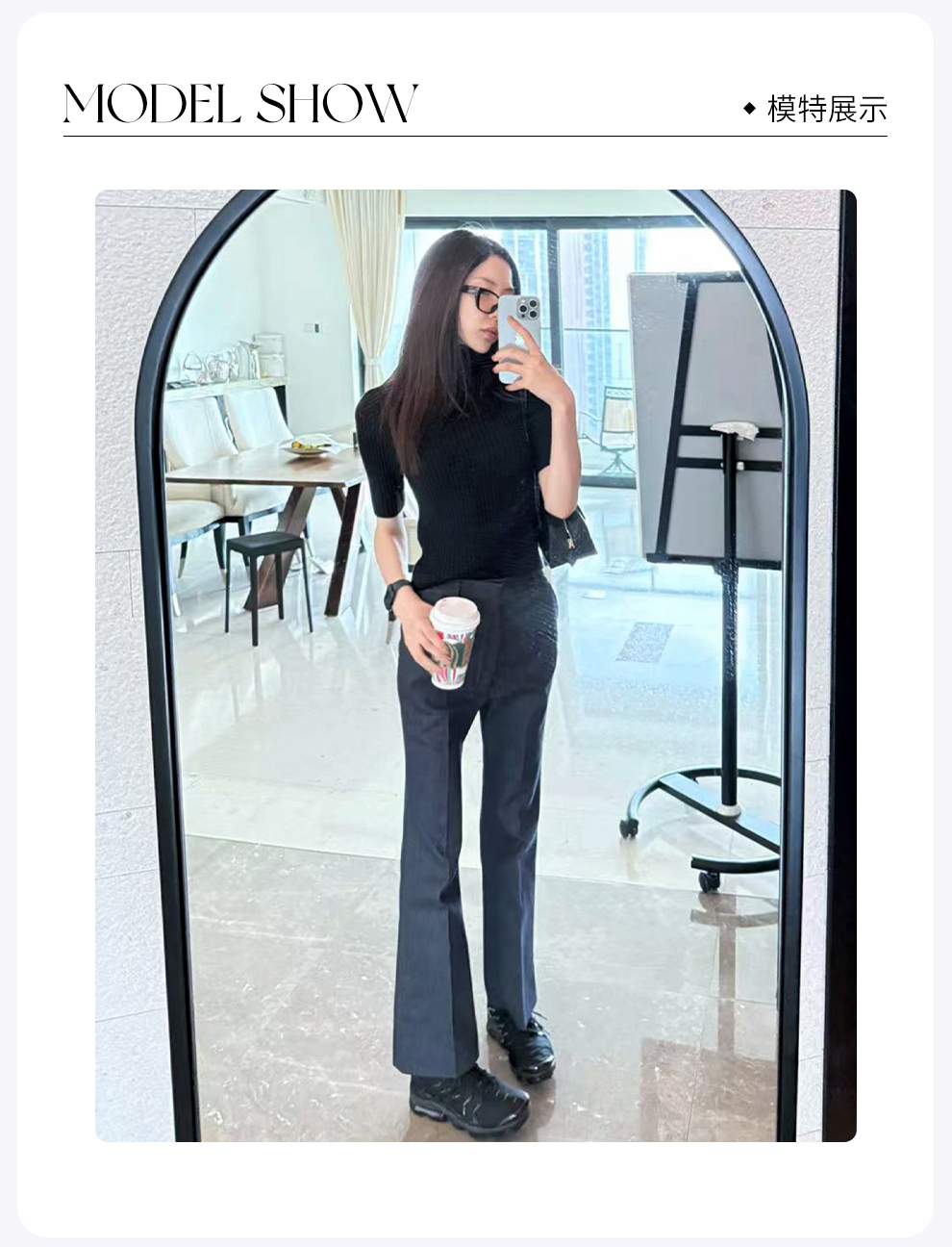 ROMI STUDIO“复古格调”棉质渐变洗水无弹中腰阔腿微喇牛仔裤RWCAX86965