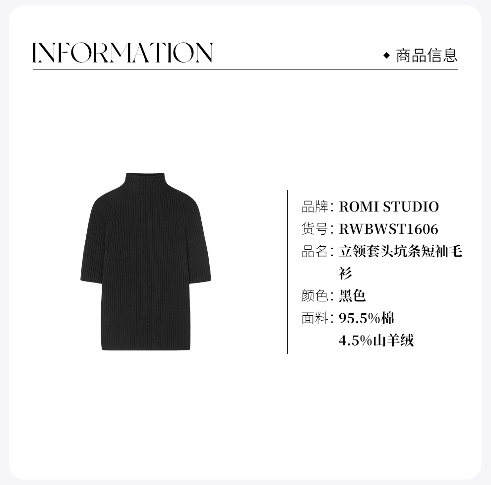 ROMI STUDIO“低调优雅”山羊绒棉混纺立领修身短袖毛衫 RWBWST1606