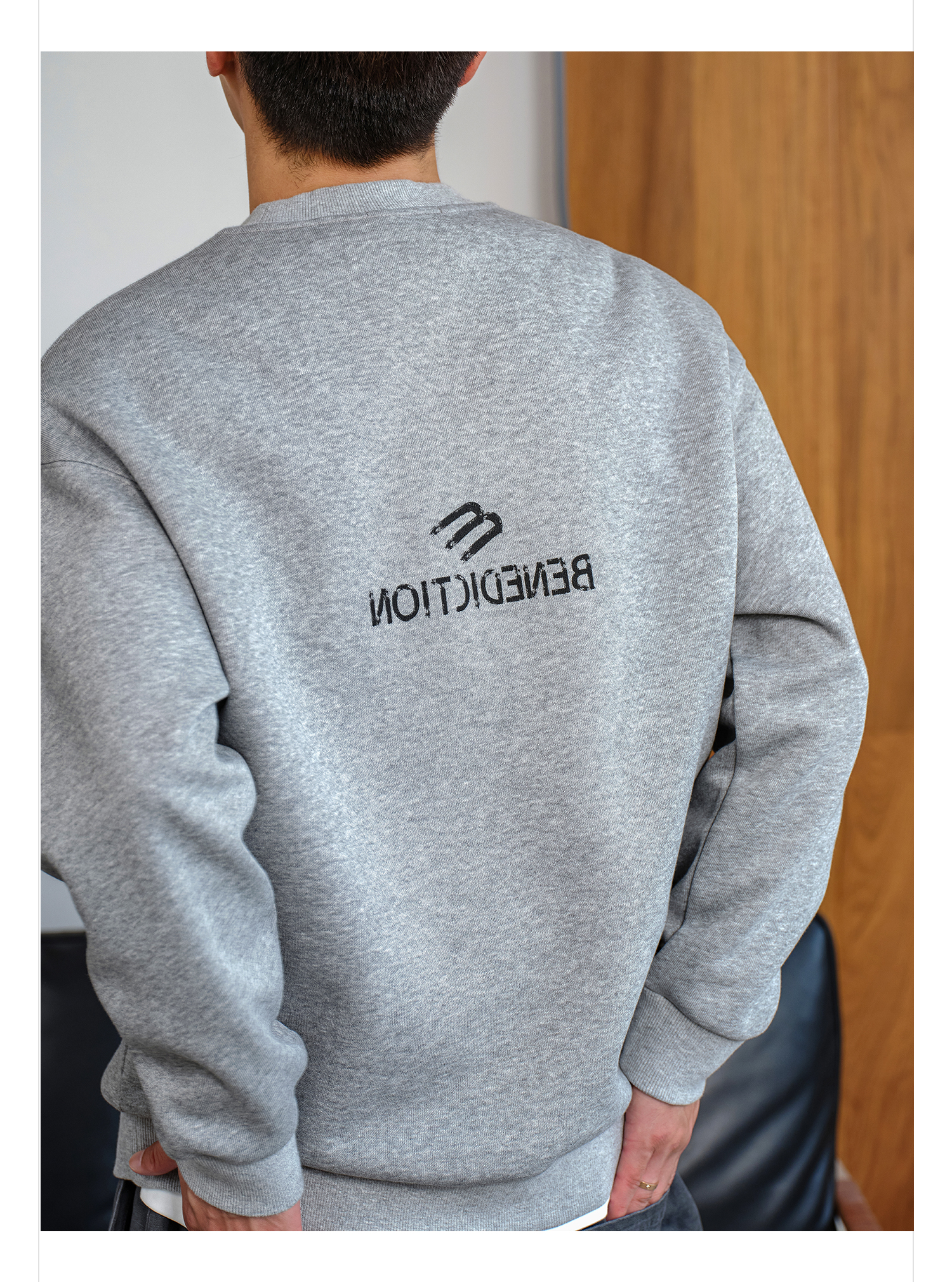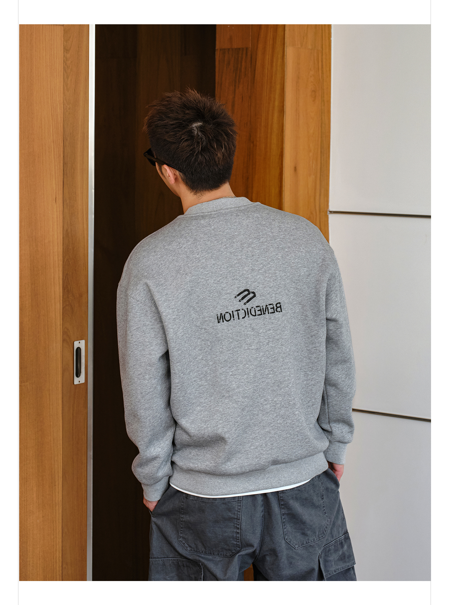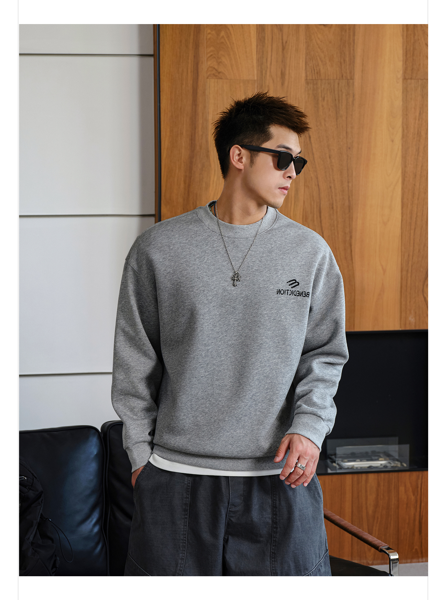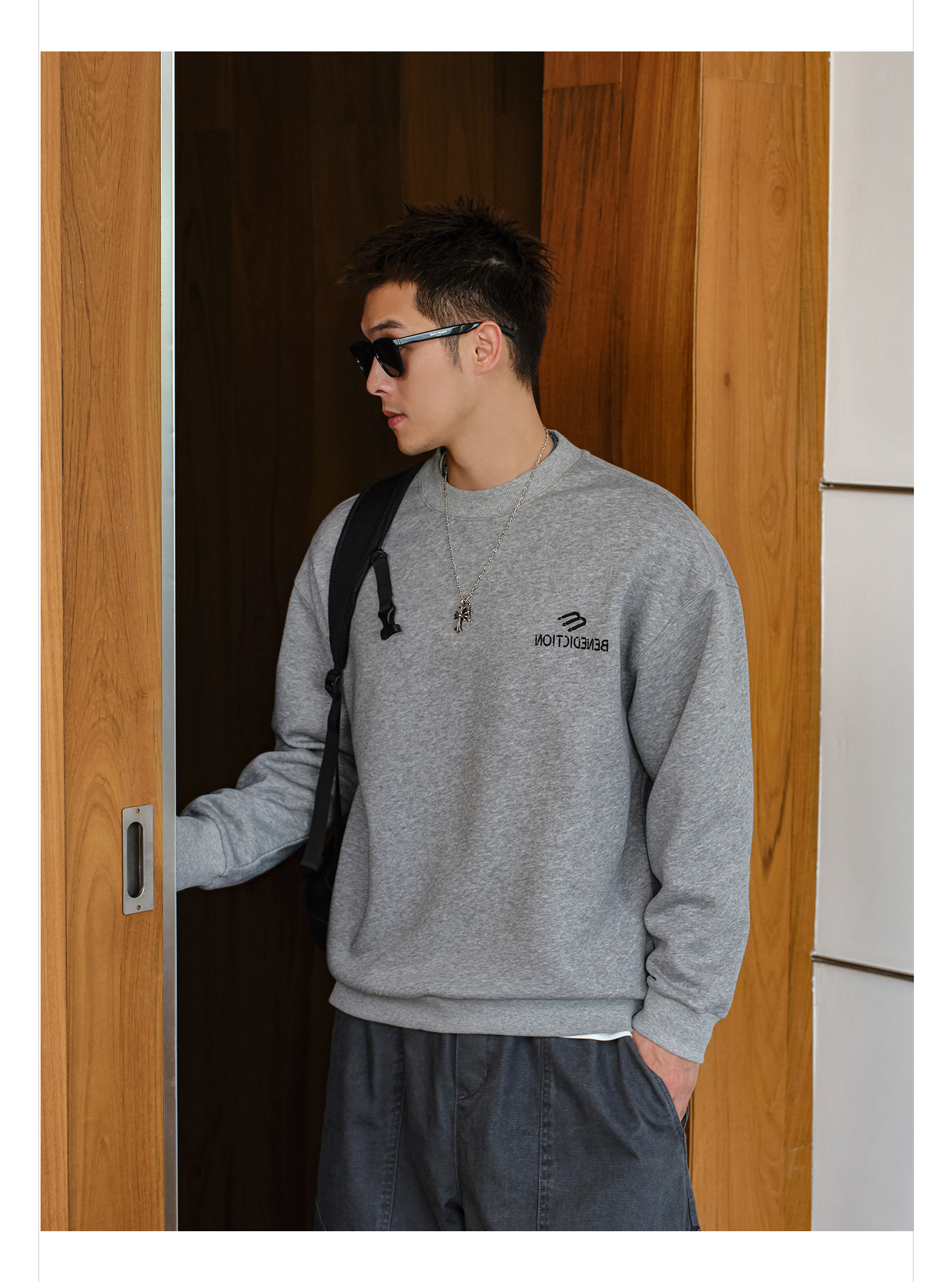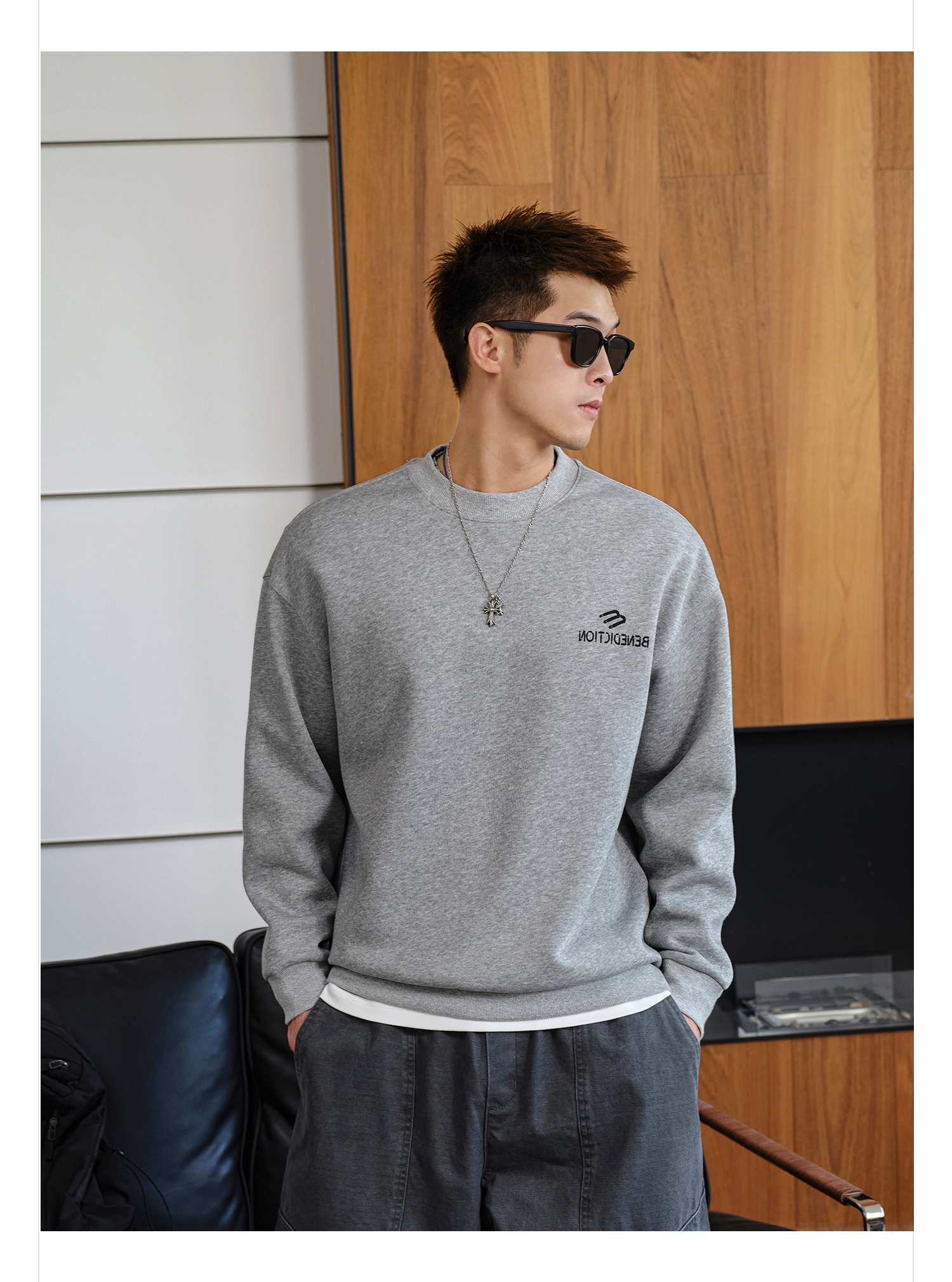徐太浪【字母印花 花灰色】圆领卫衣男春秋大码男装休闲通勤上衣