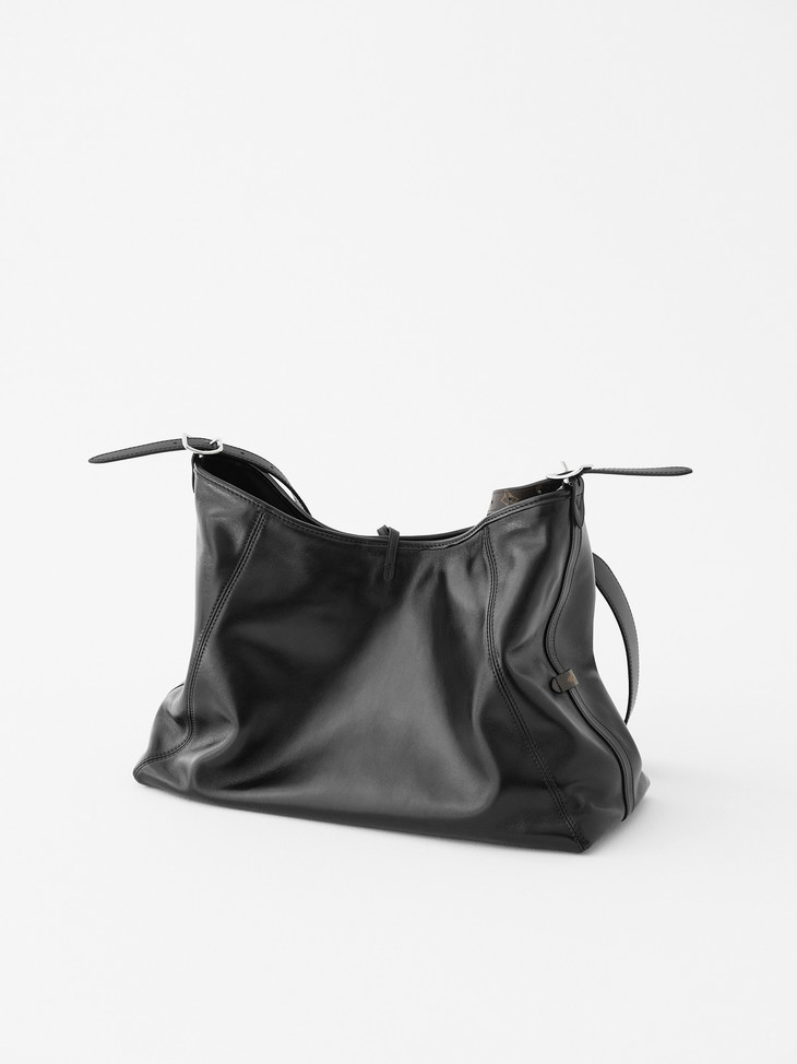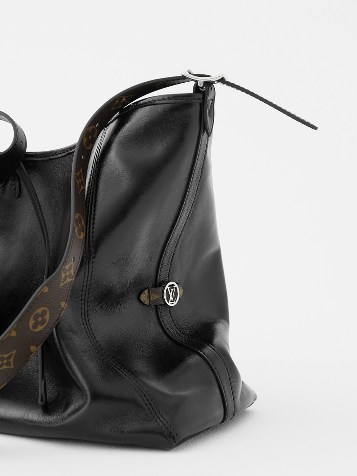 本款CarryAllCargo小号手袋以柔软羊皮革呈现时尚微皱效果,并为深邃背景搭配抛光金属件与慵懒构型,成就昼夜场合佳选。可拆卸肩带与链带实现多种造型可能。