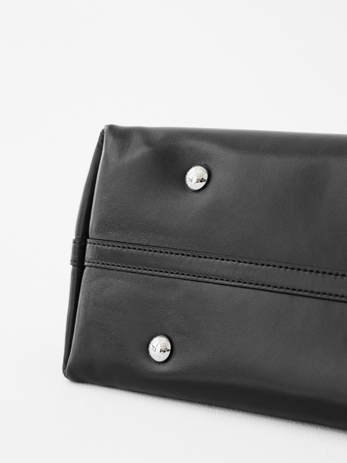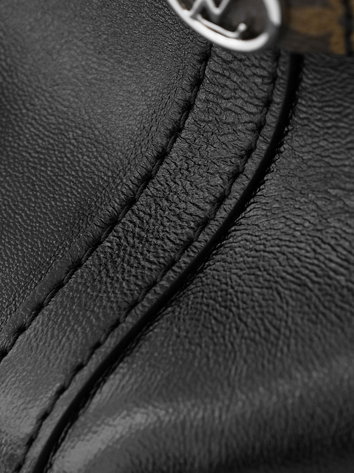 光滑柔软小羊皮和硬朗钢制肩链的碰撞