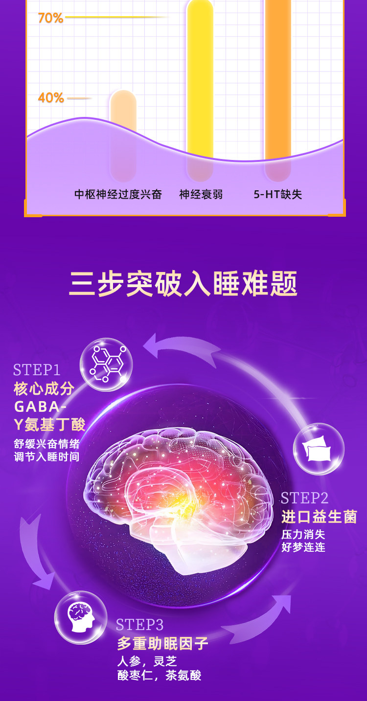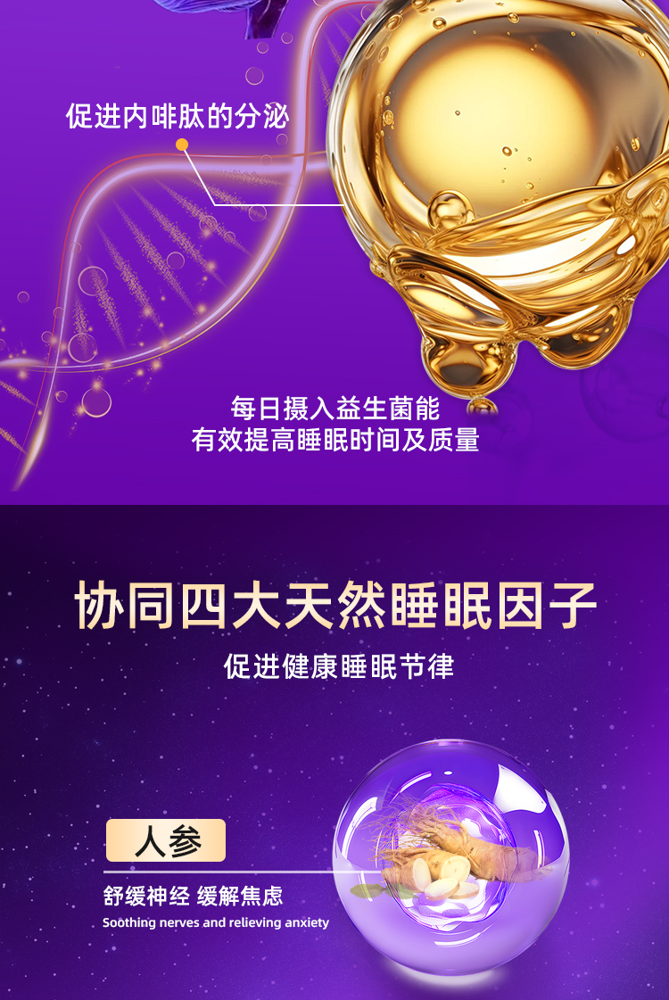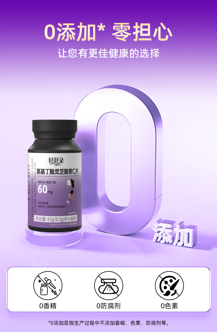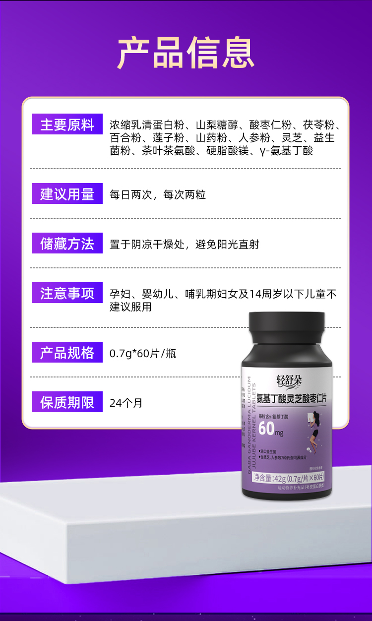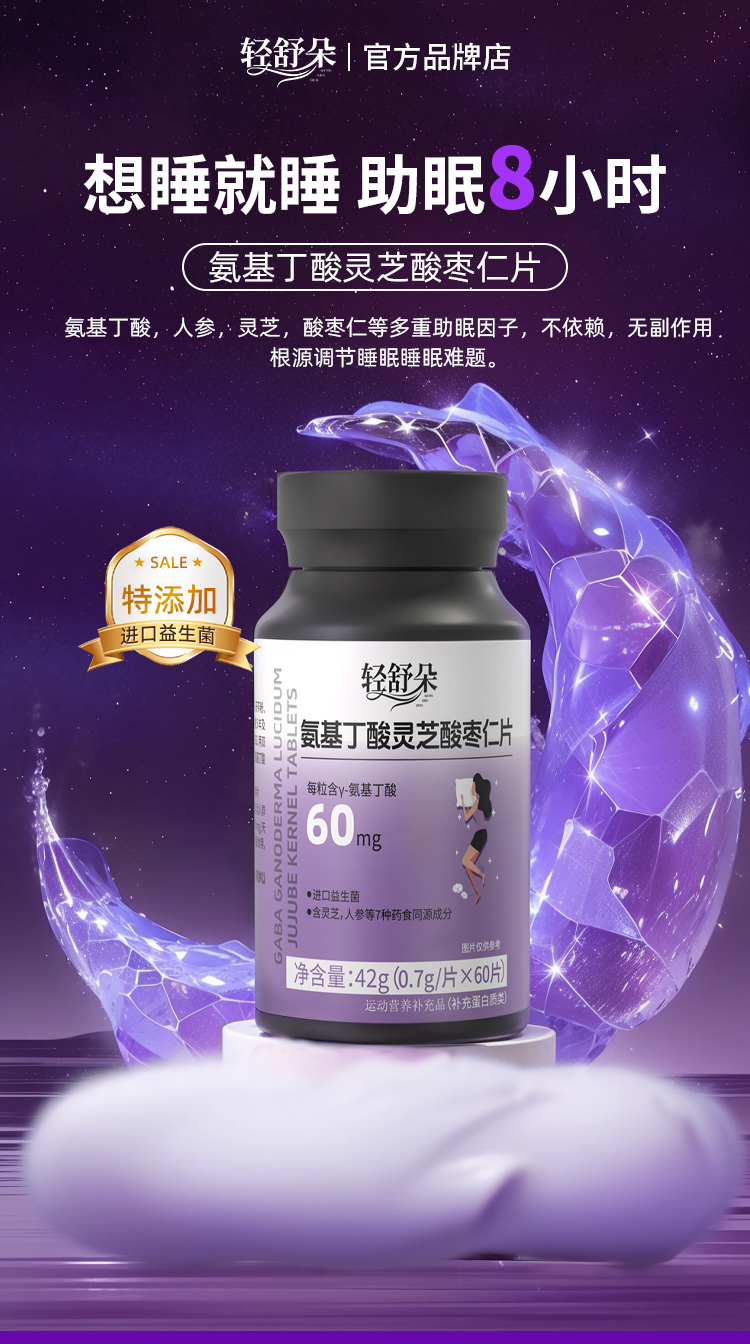 轻舒朵酸枣仁片进口氨基丁酸GABA灵芝晚安片非褪黑素睡眠片助眠片