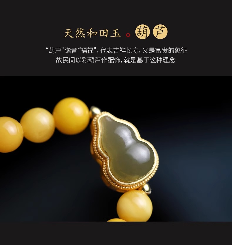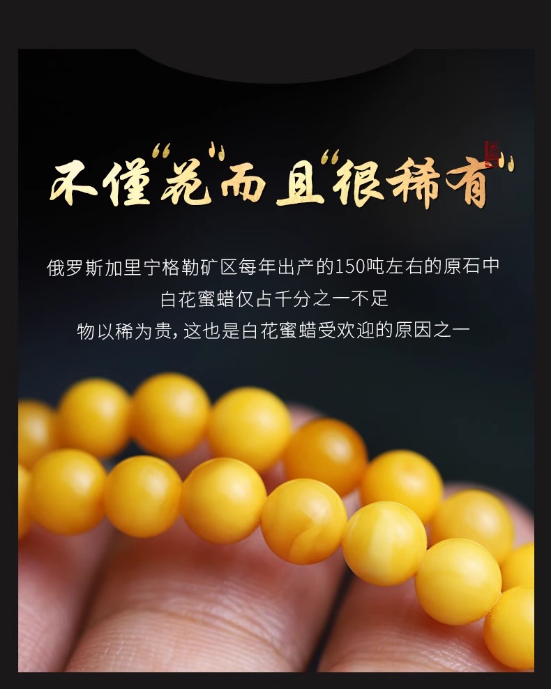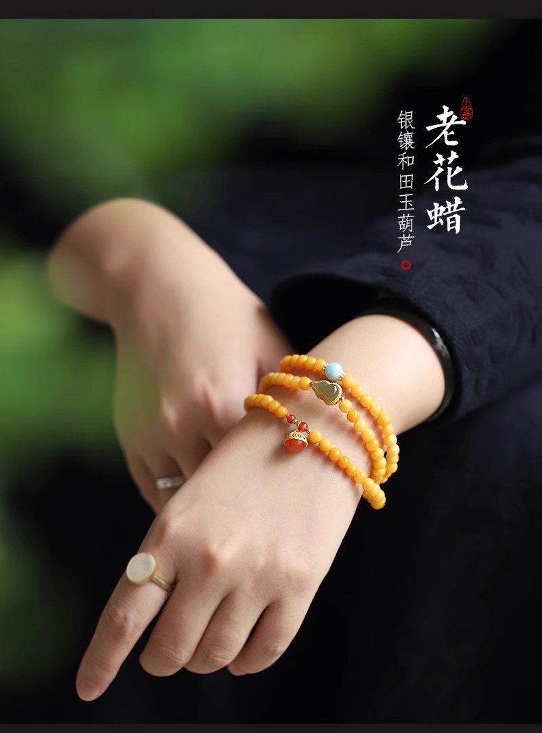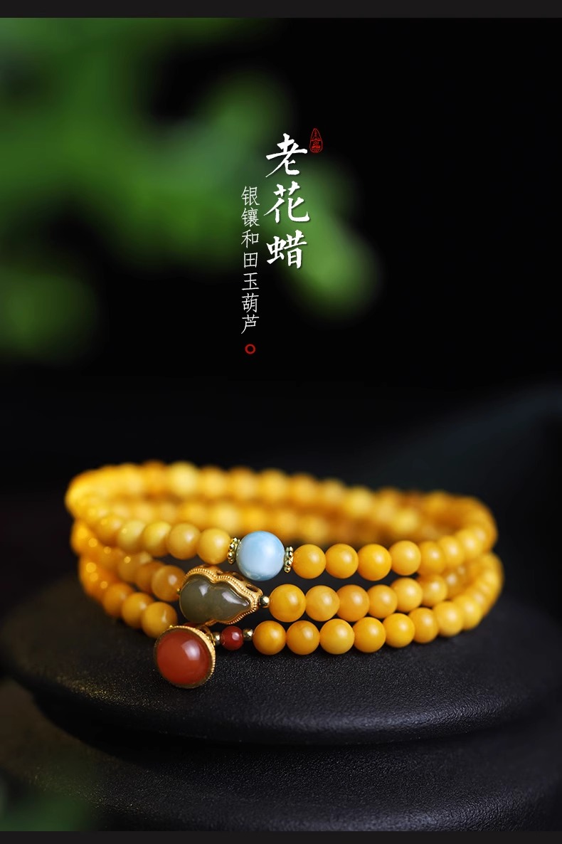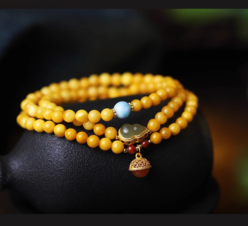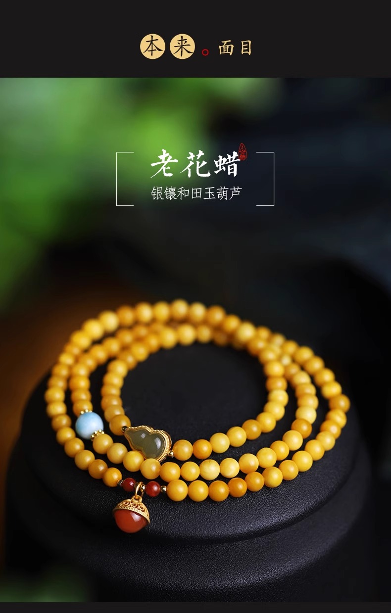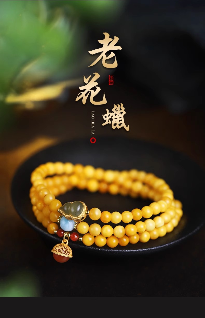 【普陀】天然鸡油黄蜜蜡佛珠手串 -普陀山发出