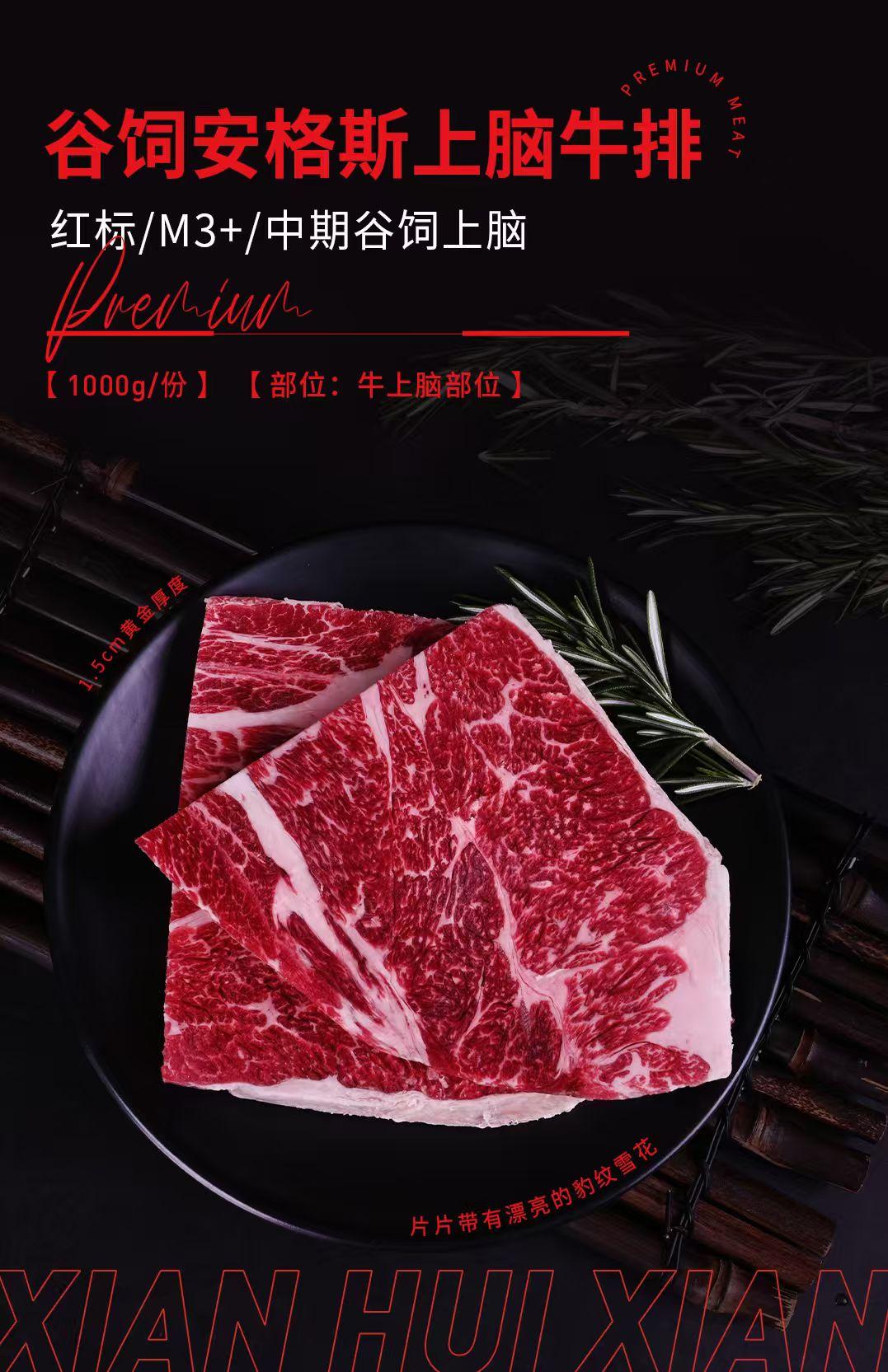【鲜会鲜精选】谷饲红标上脑牛排1kg原切雪花牛肉牛扒送礼甄选 生鲜不支持七天无理由