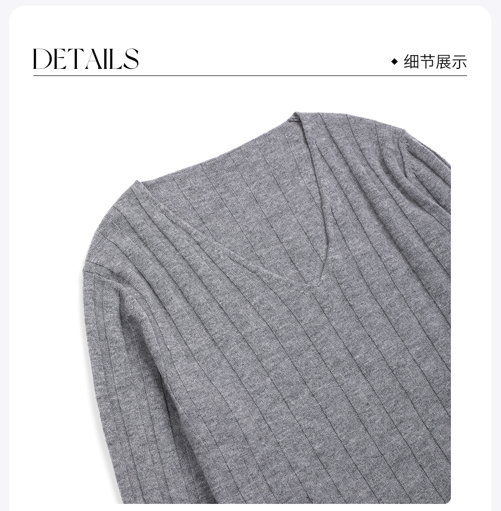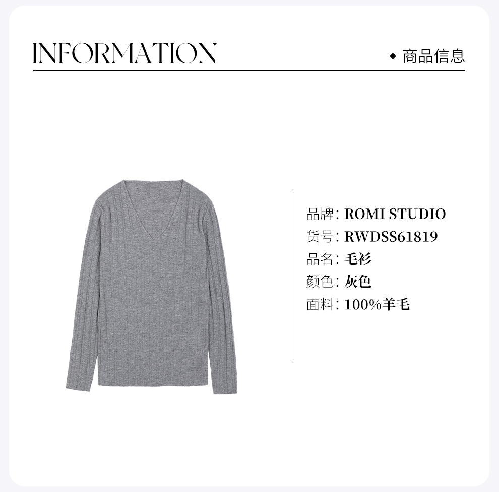 ROMI STUDIO“优雅舒适”100%羊毛坑条立体V领套头毛衫 RWDSS61819