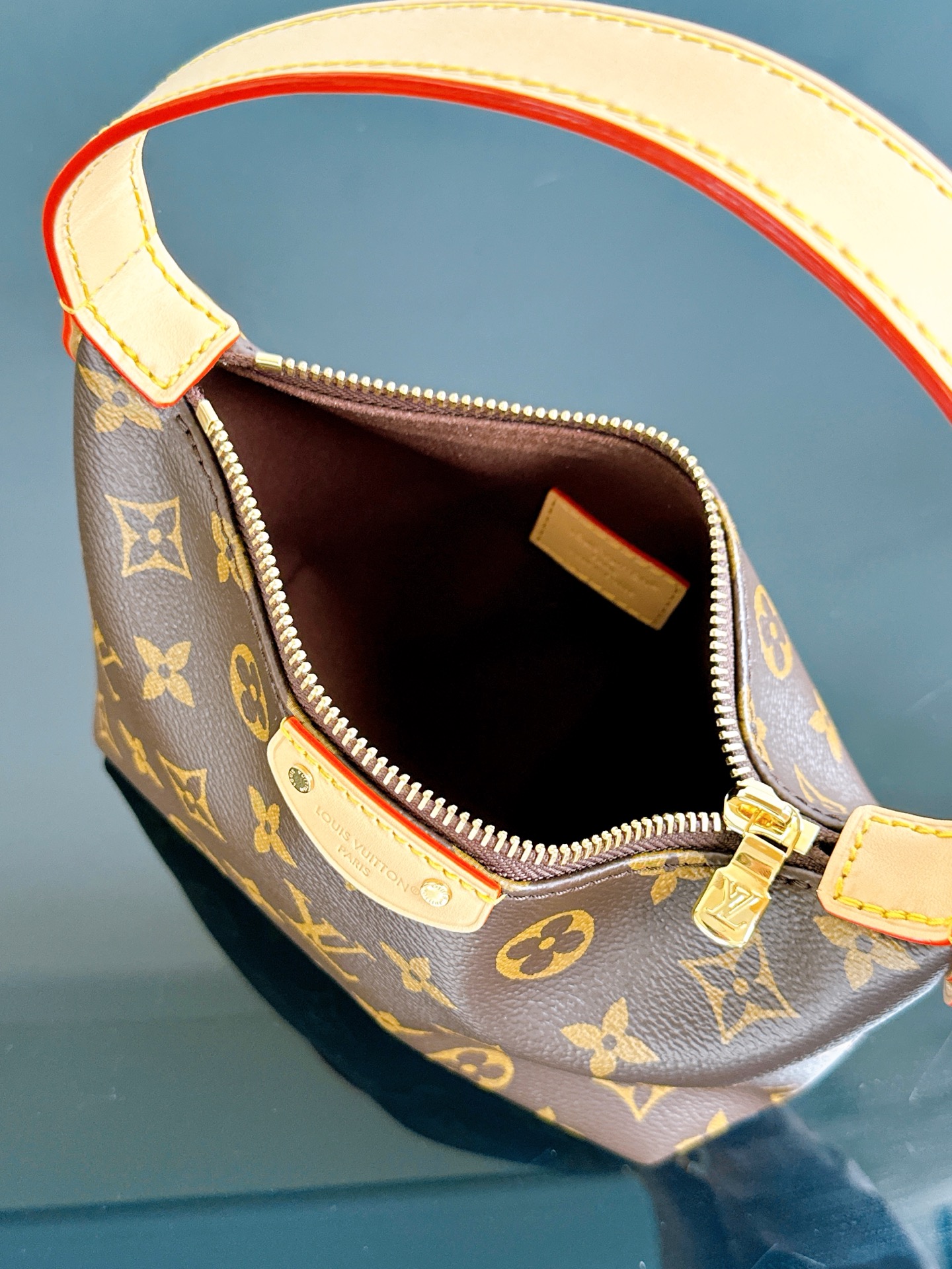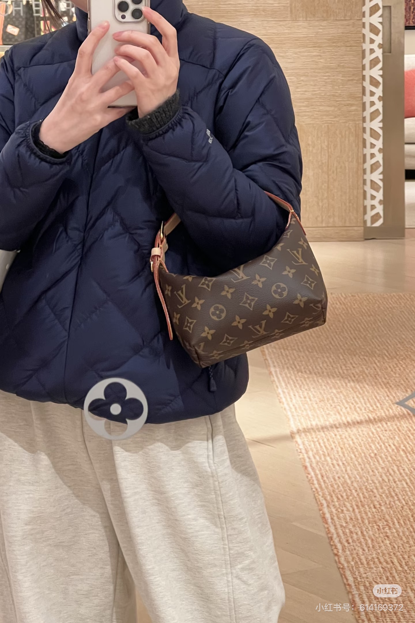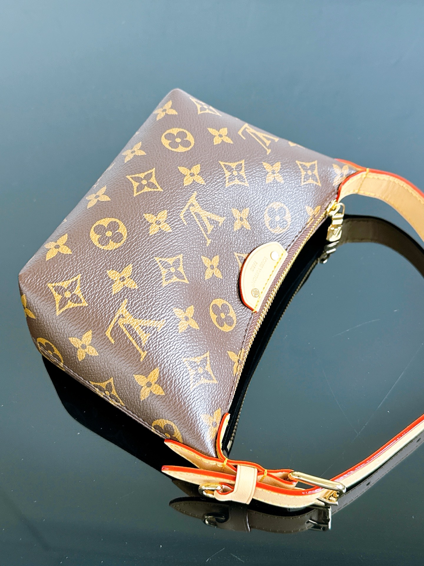 M27509老花 饭盒包腋下包 Pochette Hills 手袋 这款优雅的Pochette Hills 由Monogram Origine hr帆布制成,搭配牛皮手腕装饰,其理想的尺寸可以容纳日常必需品,而其可调节的手柄提供了精致的穿着。尺寸:18.5 x 11 x 6.5厘米(长度x高度x宽度)