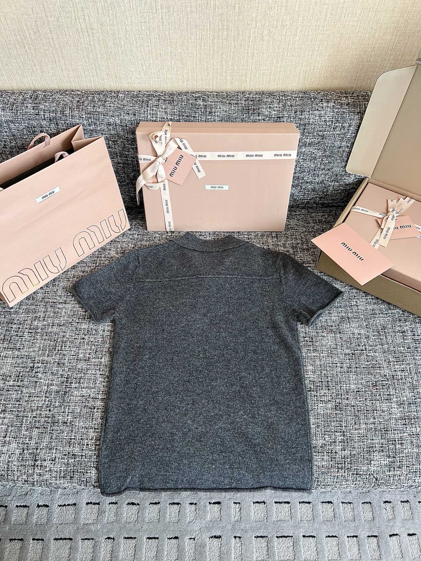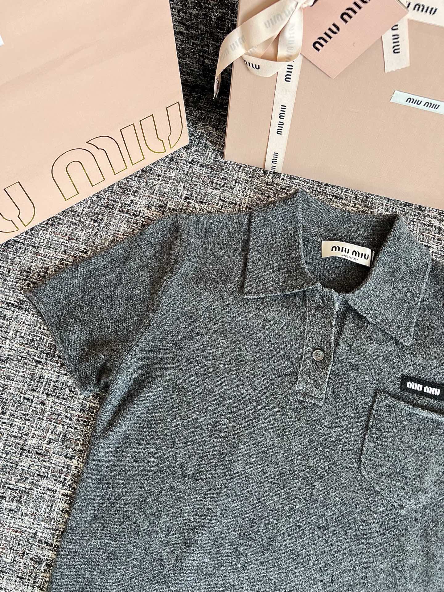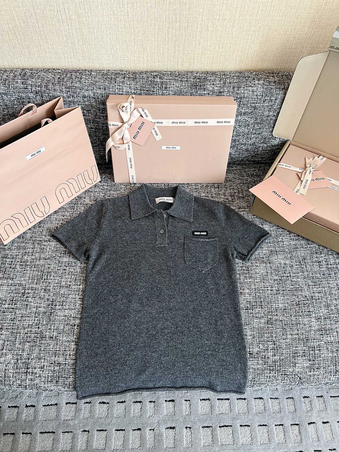 MiuMiu 26早春新款短袖🐮16900购买Zp拆解打造,订织订染美利奴进口面料🐮 真正用到100%山羊绒纱线做到对版出货💪工艺放大看细节除还原度接近98以上 做工也无敌了🔥真正做到1:1还原 直接闭着眼购买👀码数:S M L