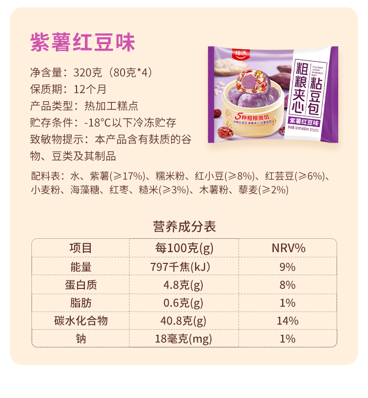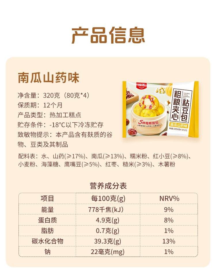 精选|拾沃粗粮夹心粘豆包 山东纯手工粗粮粘豆包低脂早餐主食 2种口味混搭 320g/袋