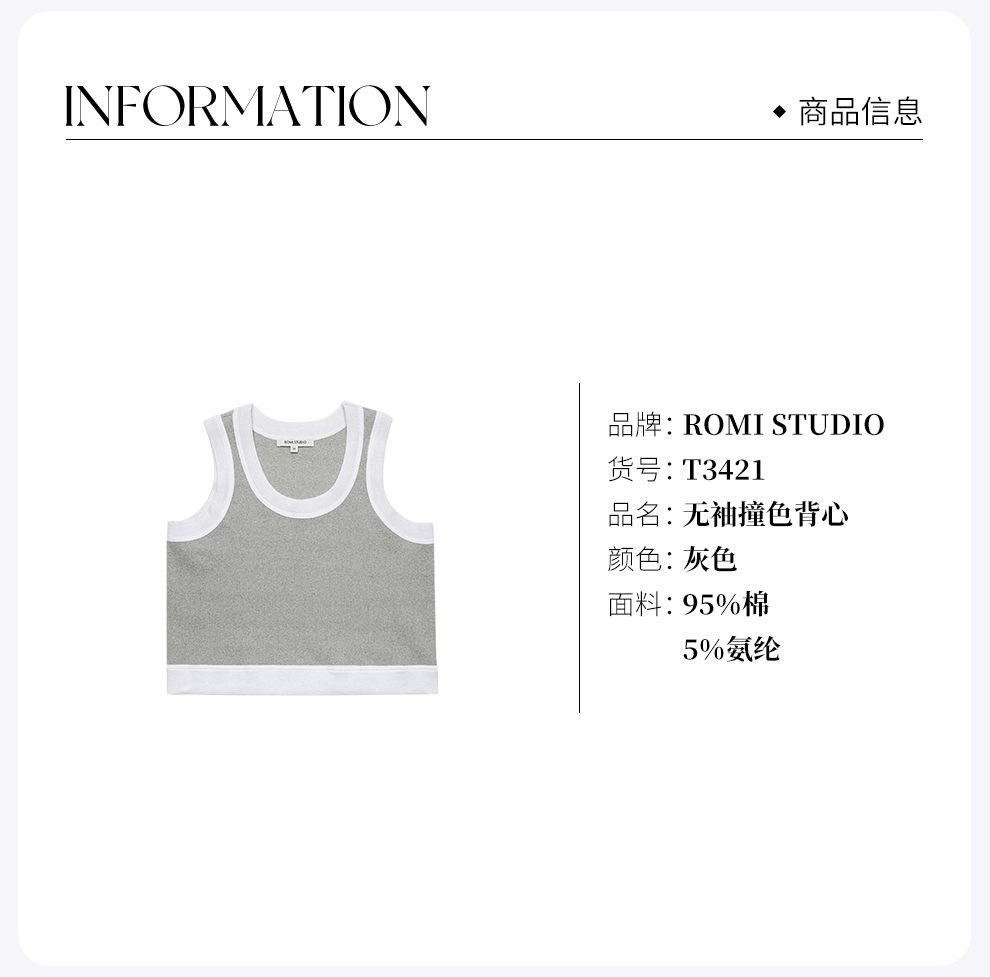ROMI STUDIO法式简约 纯色休闲修身小个子打底针织吊带背心T3407