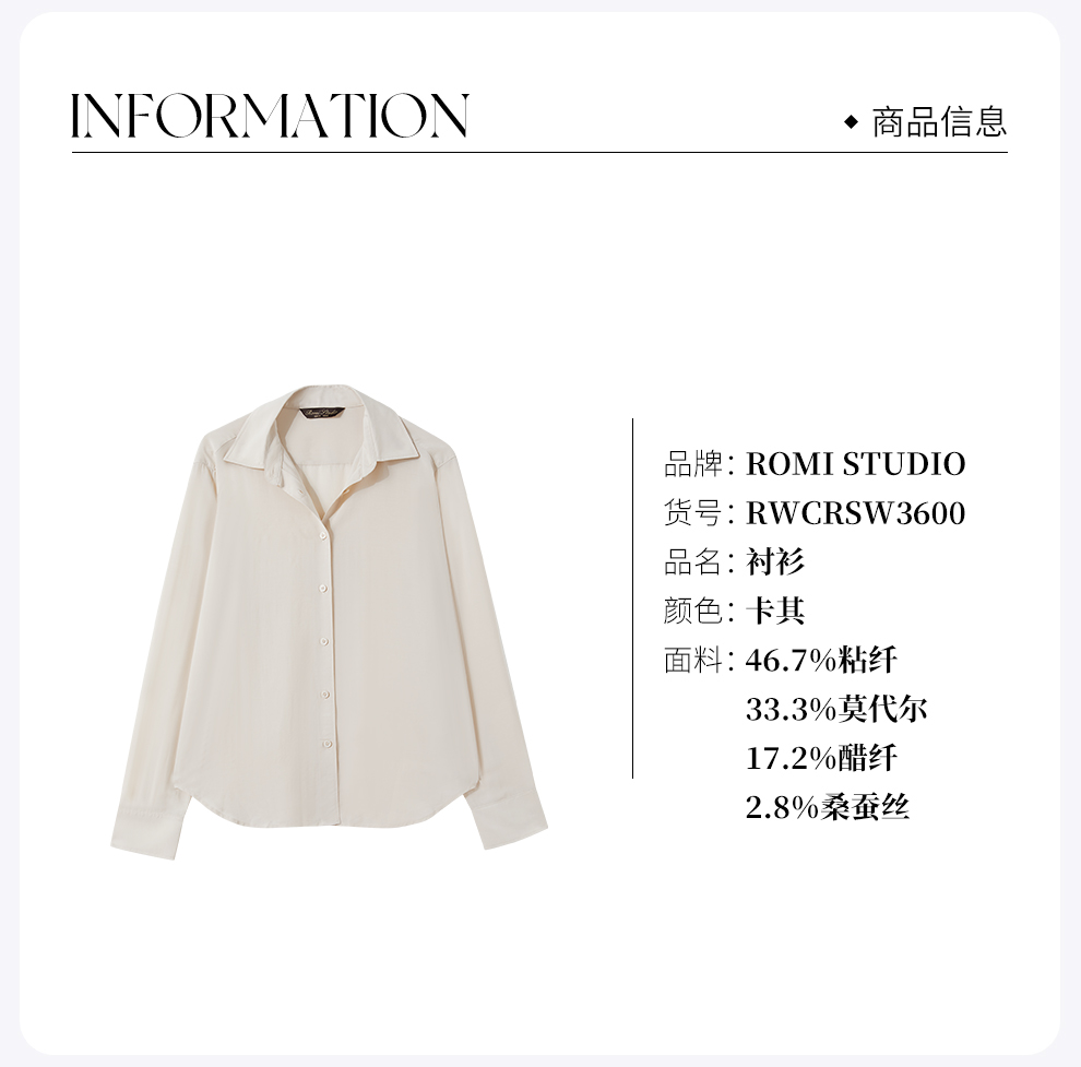 ROMI STUDIO 醋酸莫代尔桑蚕丝轻盈薄透凉感翻领衬衫 RWCRSW3600