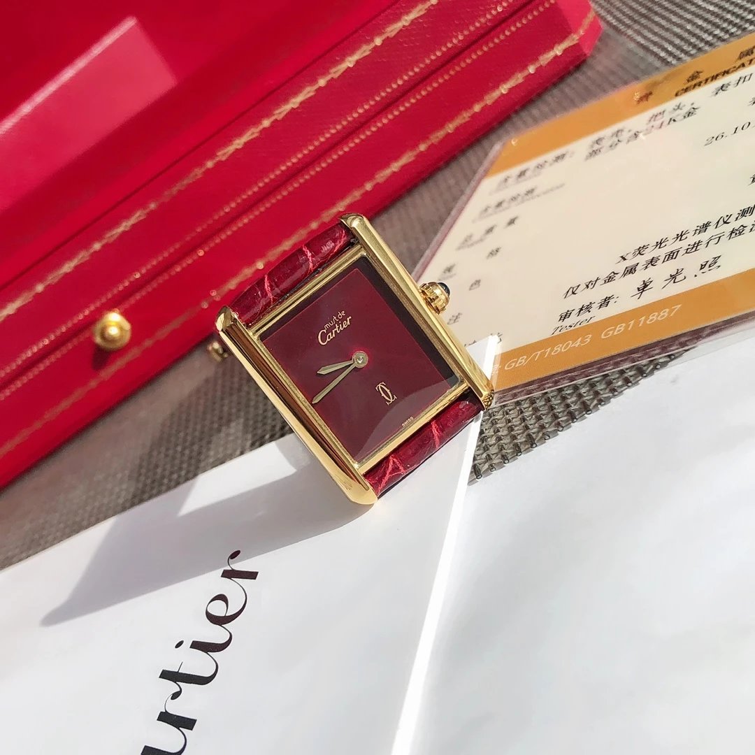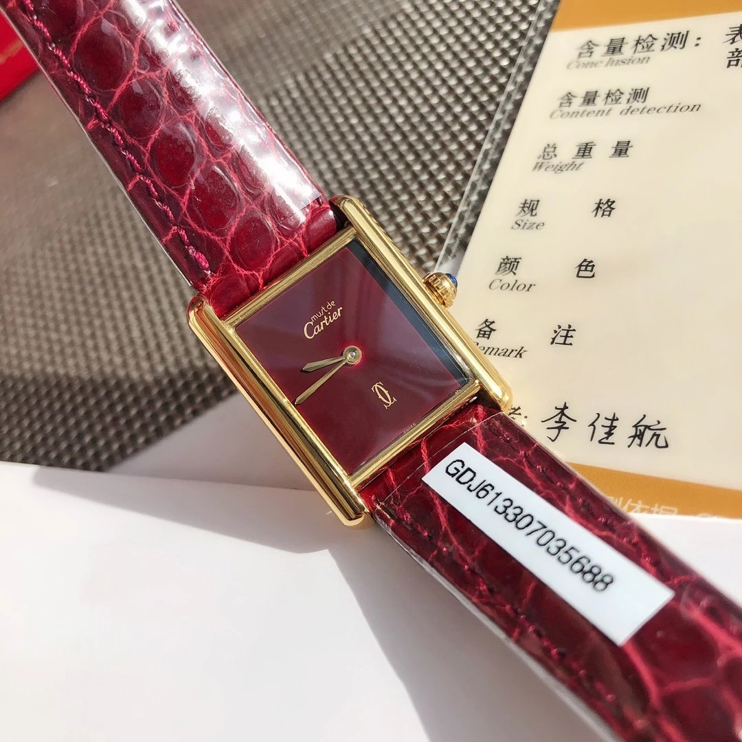 24k包真金Cartier tank must de中古坦克小金表,原装数据 神仙颜值 进口美洲鳄鱼皮表带 蓝宝石表冠精美透彻 不畏高成本运作