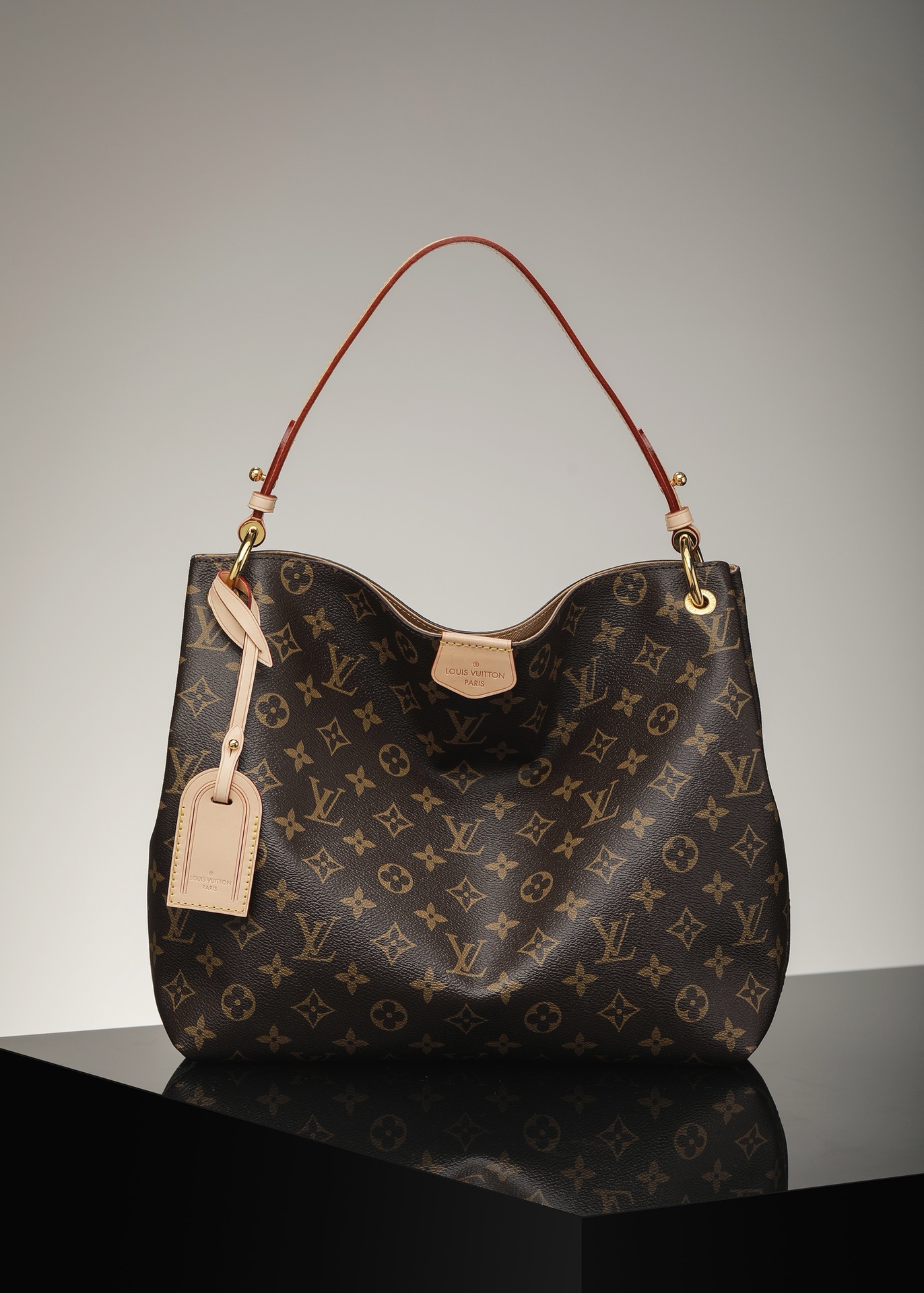 驴家Graceful MM *老花满印磁扣开合 涂层帆布拼牛皮革饰边 hobo包托特包单肩包手提包 女款 棕色(CB)