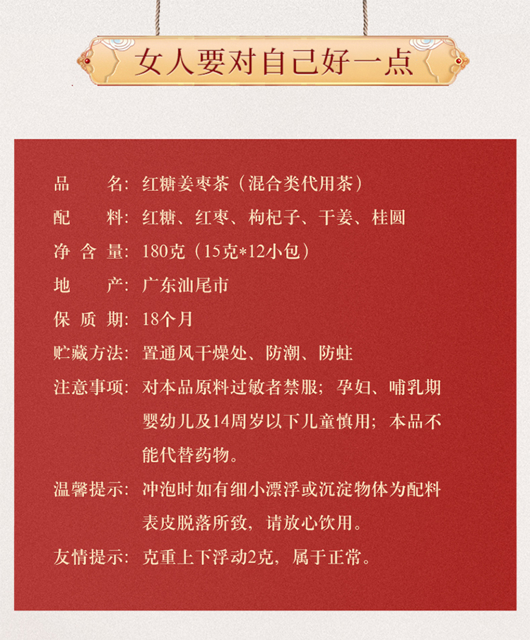广东汕尾无咪个红糖姜枣茶180g/盒