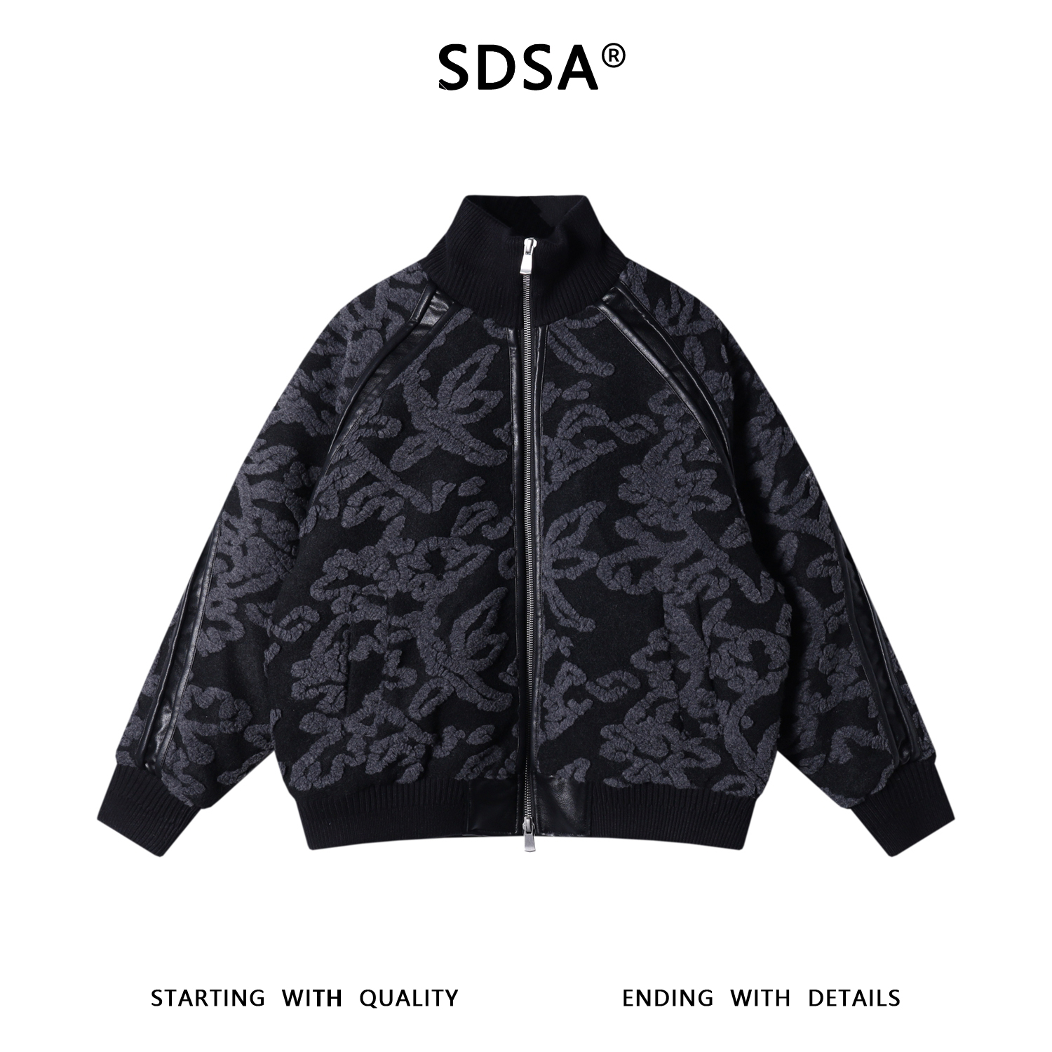 SDSA男士秋冬新款痞帅男装复古撞色提花拉链立领羽绒服外套百搭