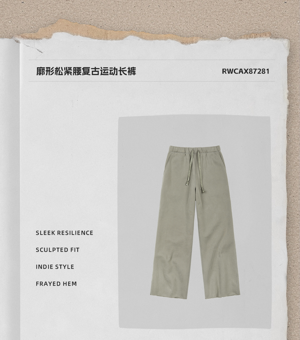 ROMI STUDIO”慵懒弧度“垂坠廓形松紧腰复古运动长裤 RWCAX87281