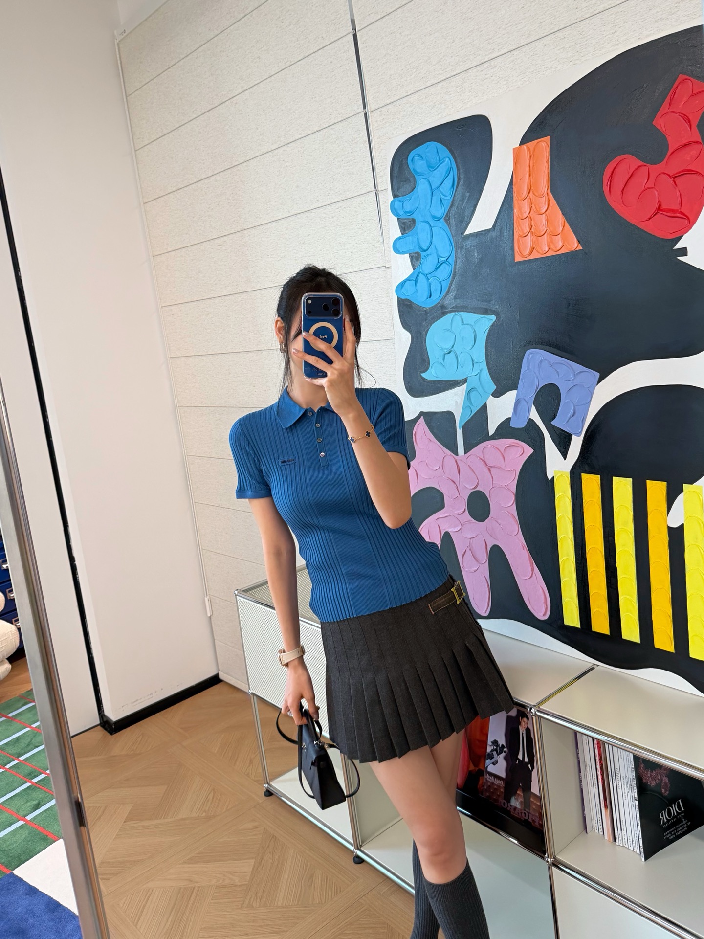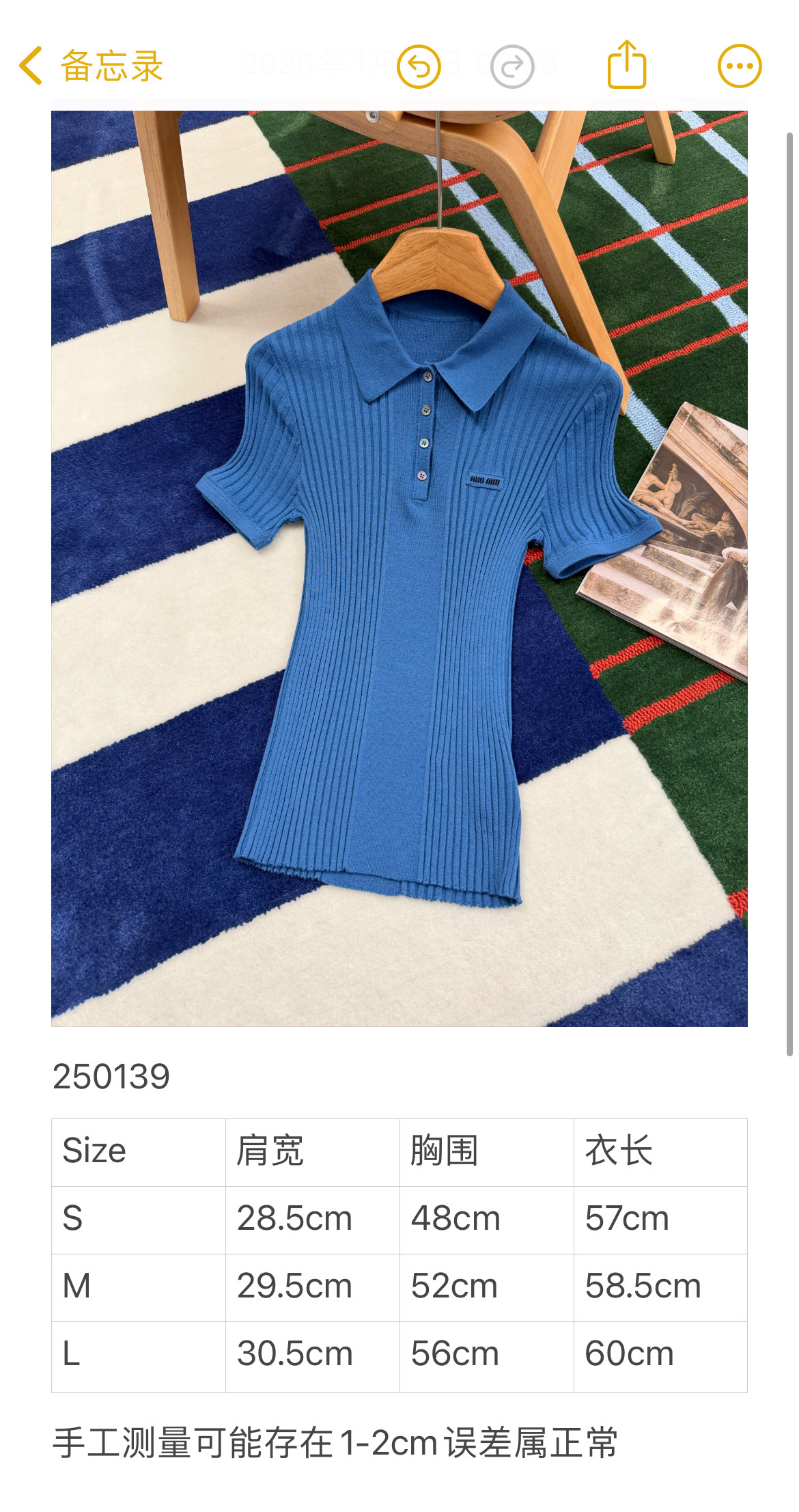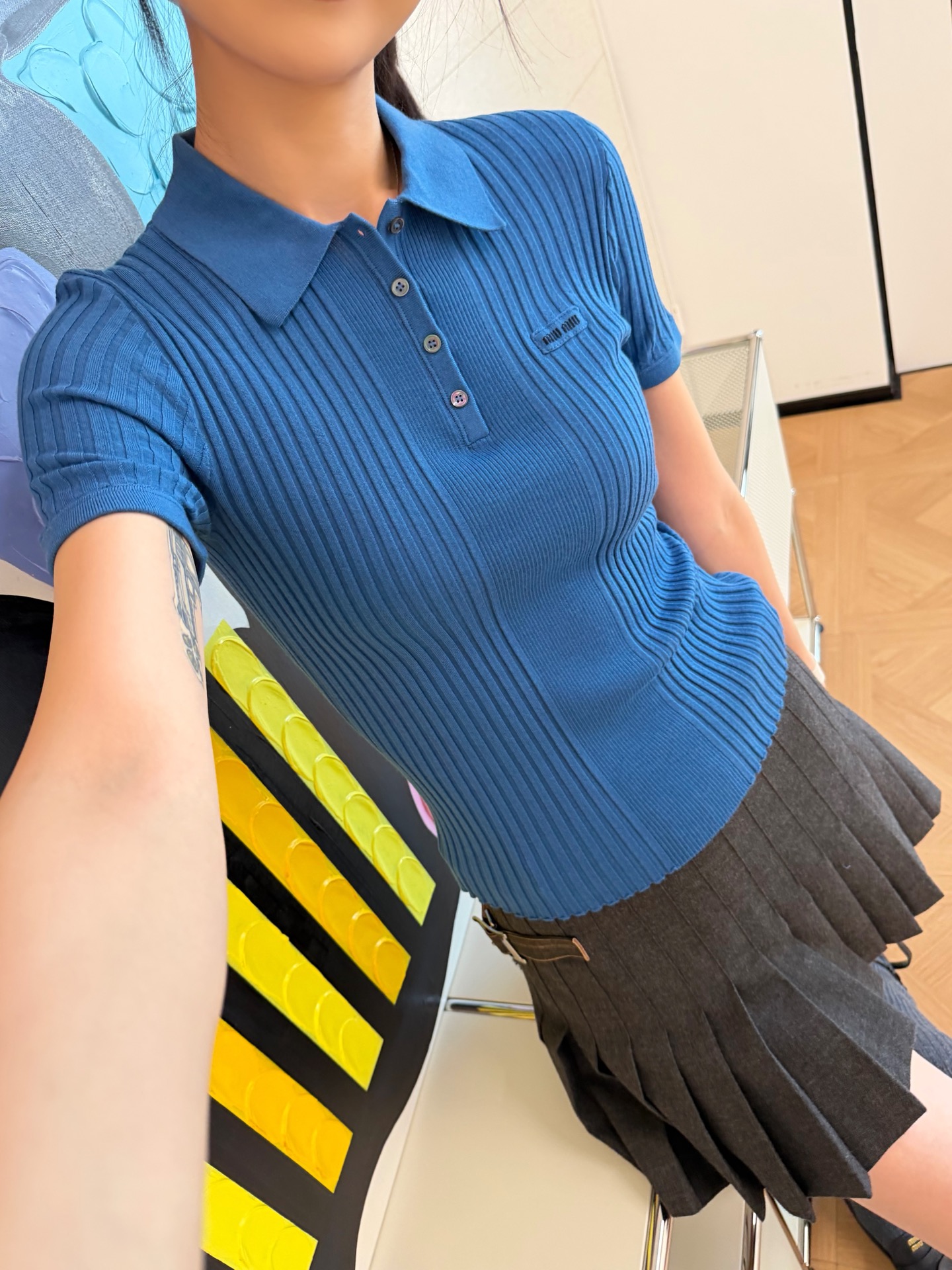 【新款现货发售】2026最新款🌠针织polo上衣💫时髦早春必备💙满满的法式复古风〰️特殊定制100%绵羊毛纱线🧶弹力大且舒适度满分💯面料柔软且有韧性☑️ 上身效果就是温柔且坚韧的独立女性形象✨简约的基调,利落版型剪裁,修身显瘦😜搭配扣子的点缀恰到好处🔝细节之处更显高级...✨买到赚到的一款百搭💙你值得拥有 码数SML