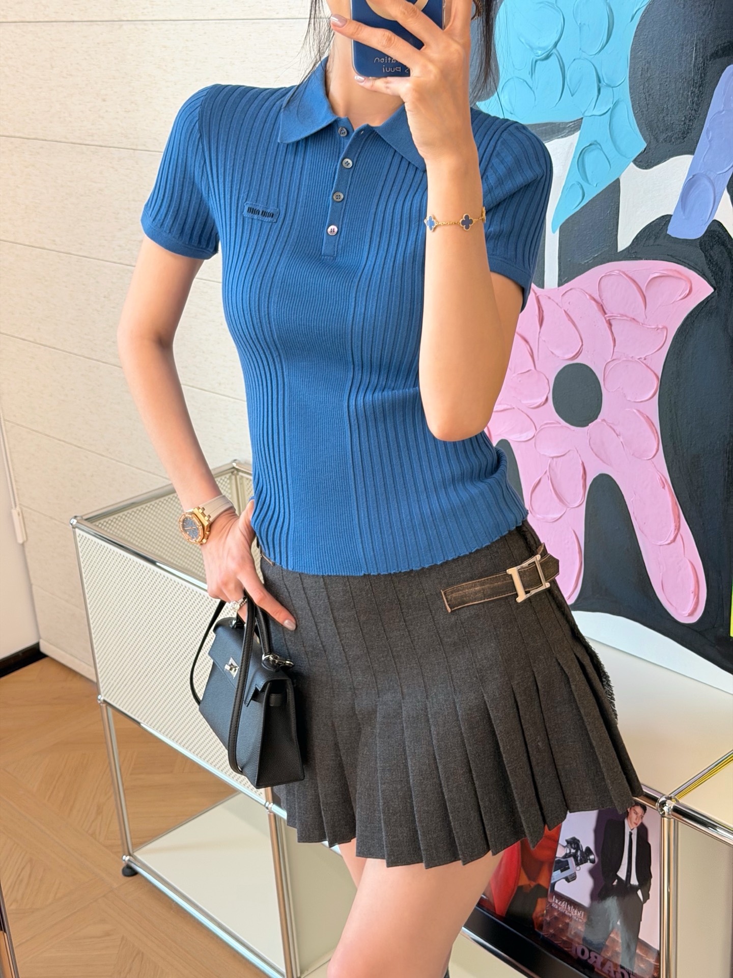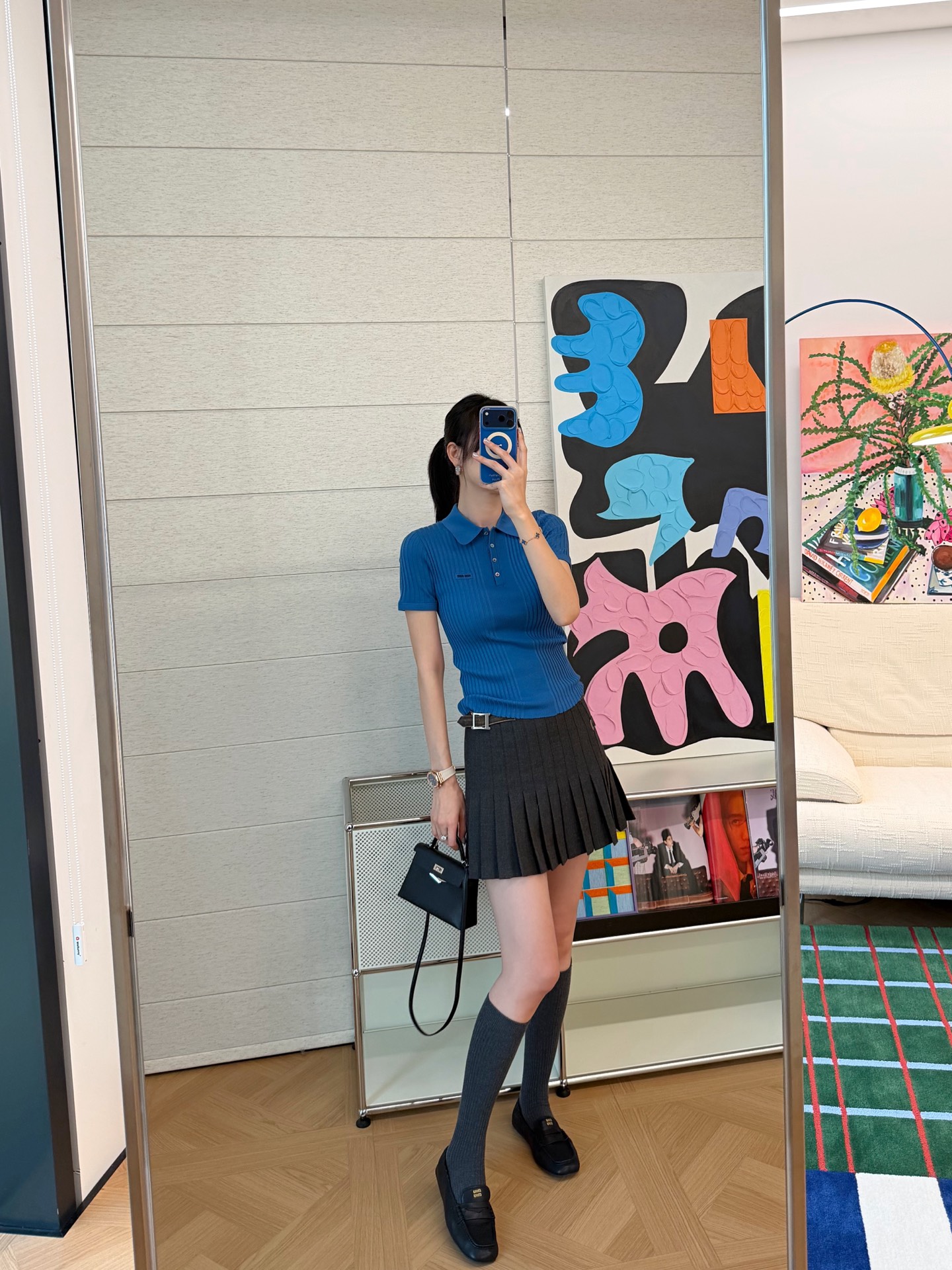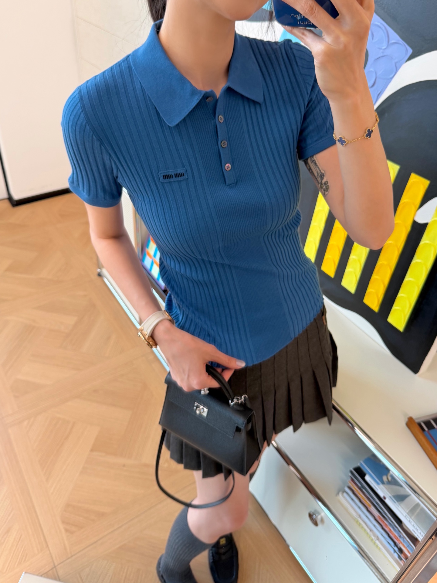 【新款现货发售】2026最新款🌠针织polo上衣💫时髦早春必备💙满满的法式复古风〰️特殊定制100%绵羊毛纱线🧶弹力大且舒适度满分💯面料柔软且有韧性☑️ 上身效果就是温柔且坚韧的独立女性形象✨简约的基调,利落版型剪裁,修身显瘦😜搭配扣子的点缀恰到好处🔝细节之处更显高级...✨买到赚到的一款百搭💙你值得拥有 码数SML