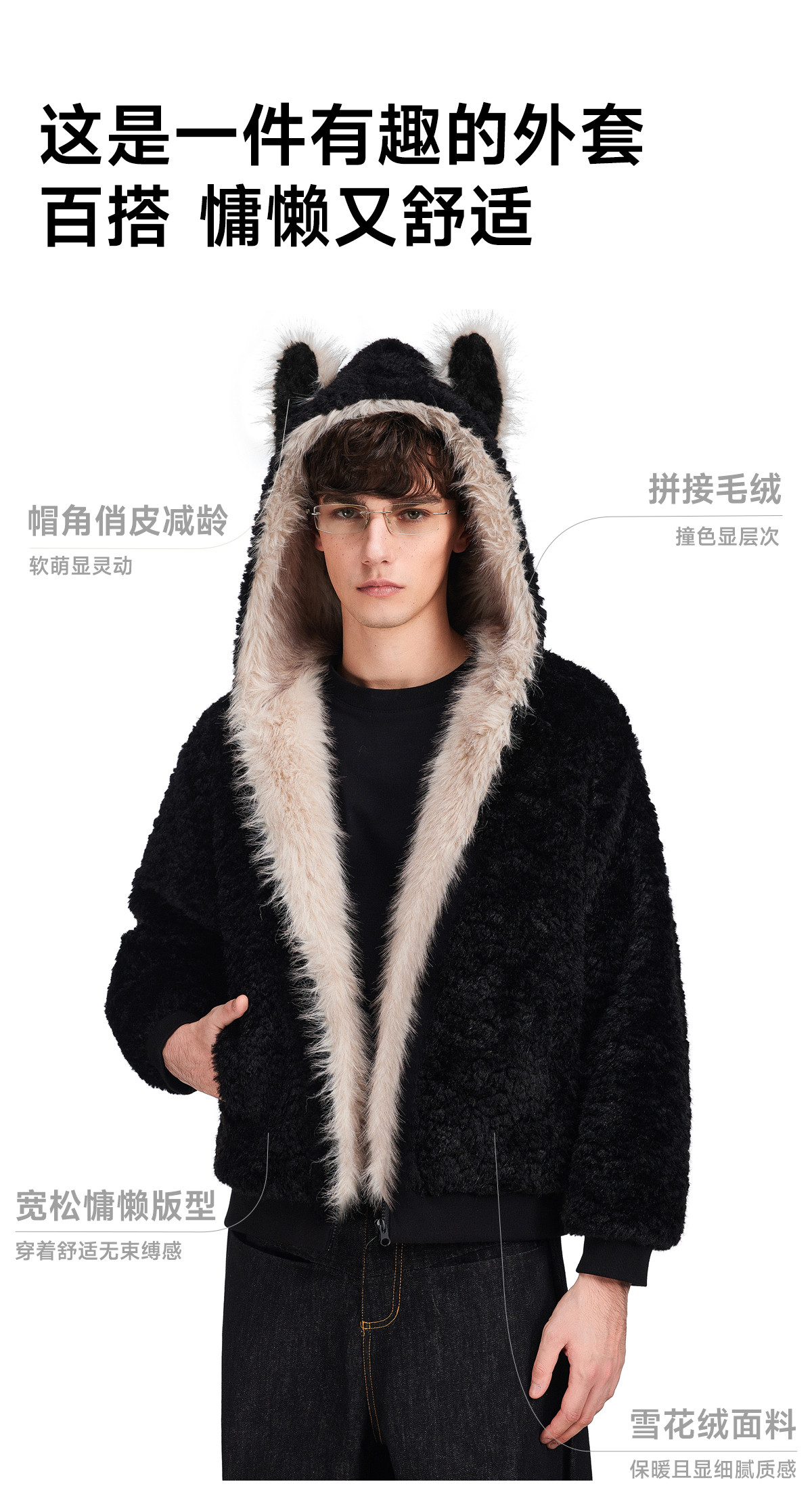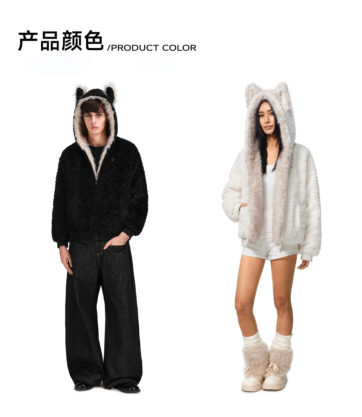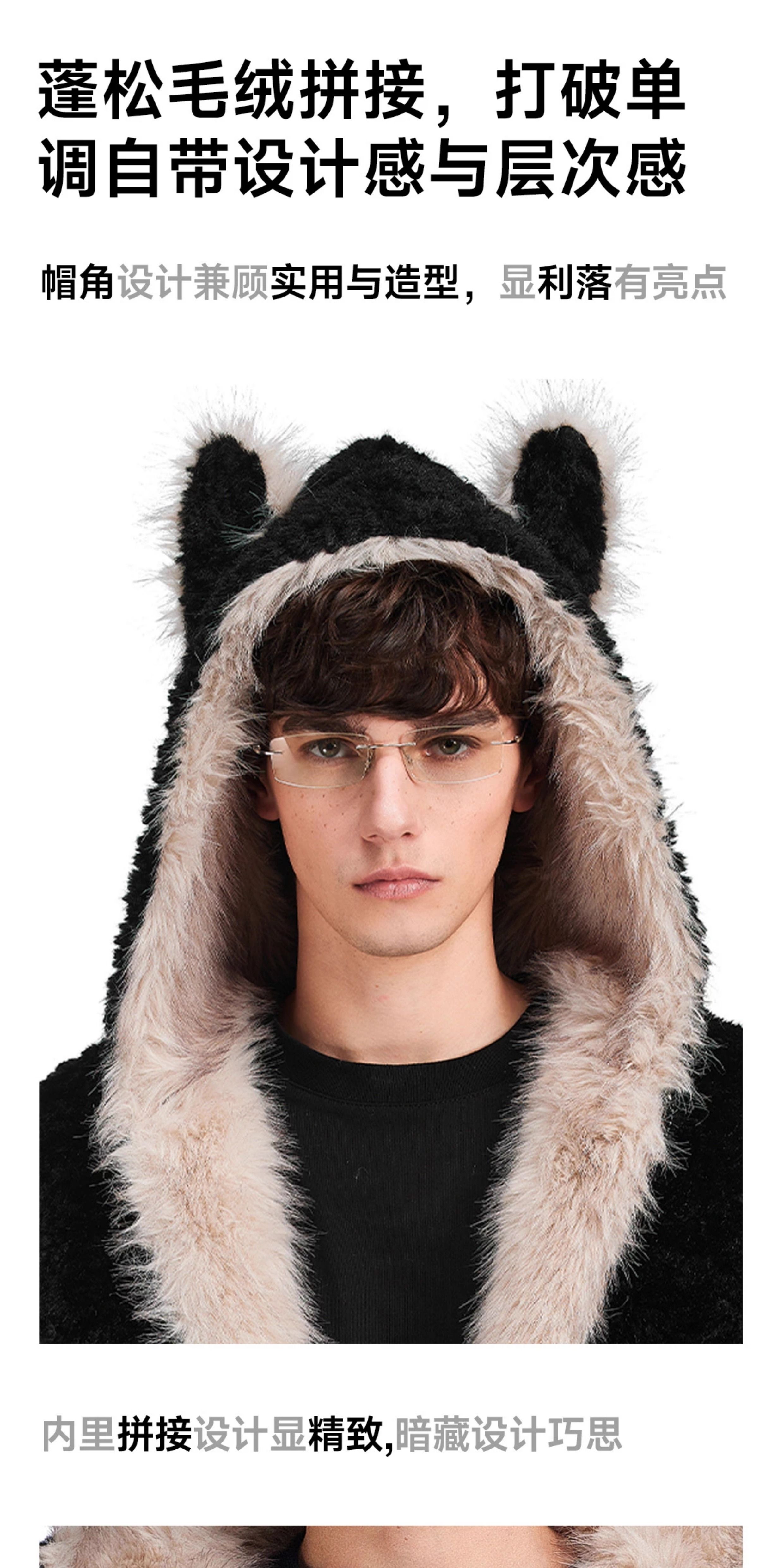 FDR旗舰店 羊羔绒毛领加厚连帽上衣男美式复古猫耳朵座山雕外套女