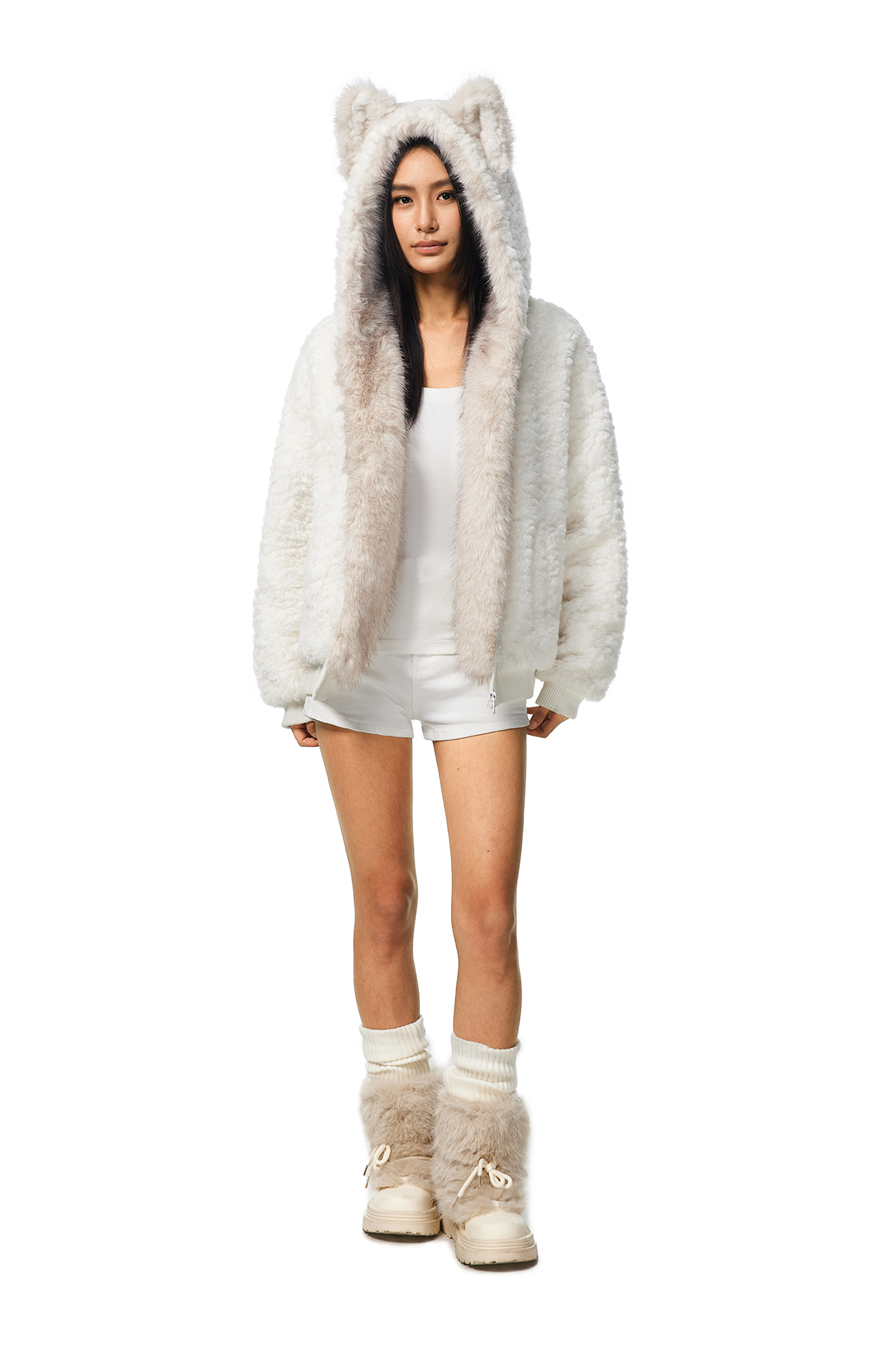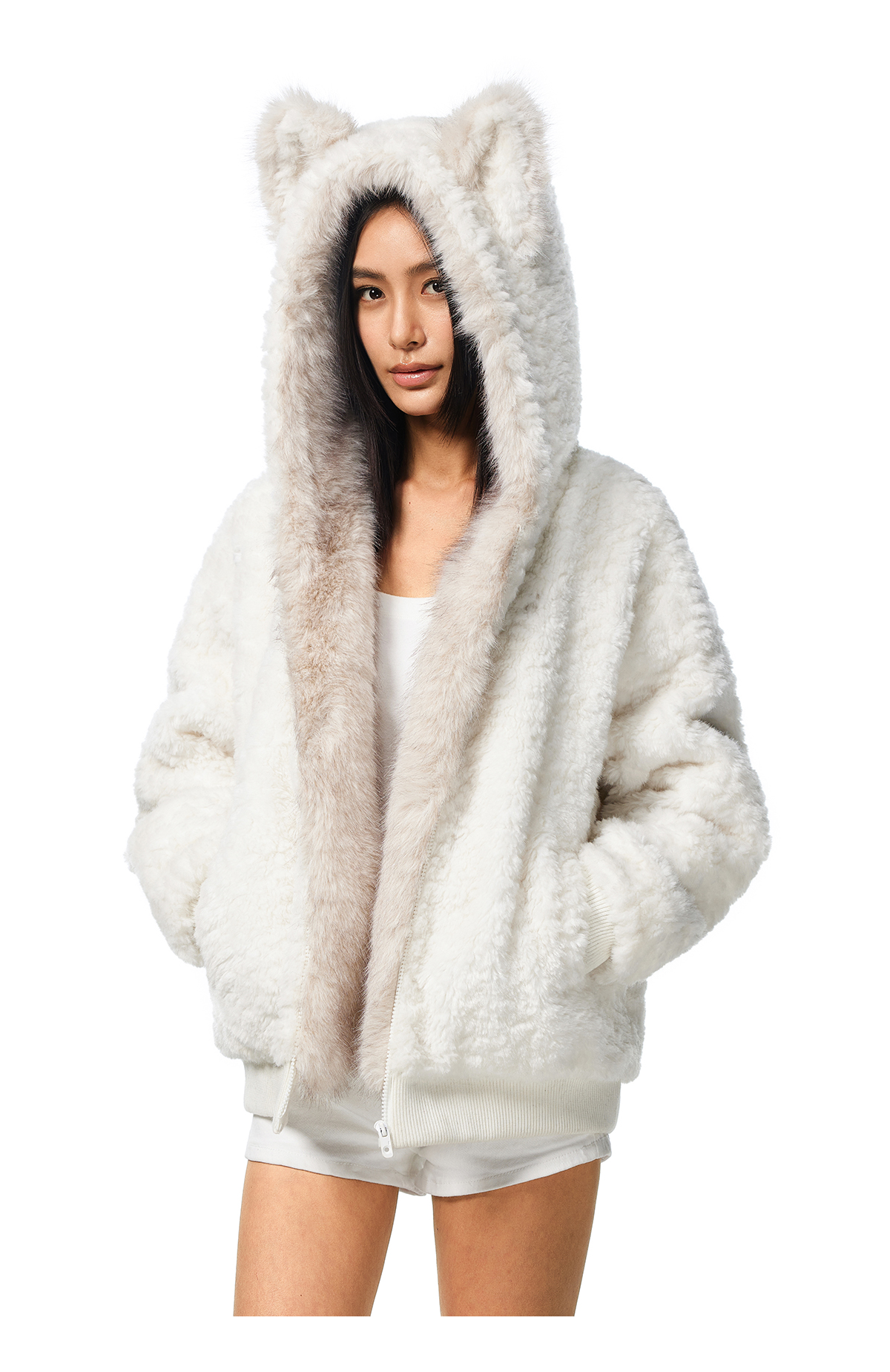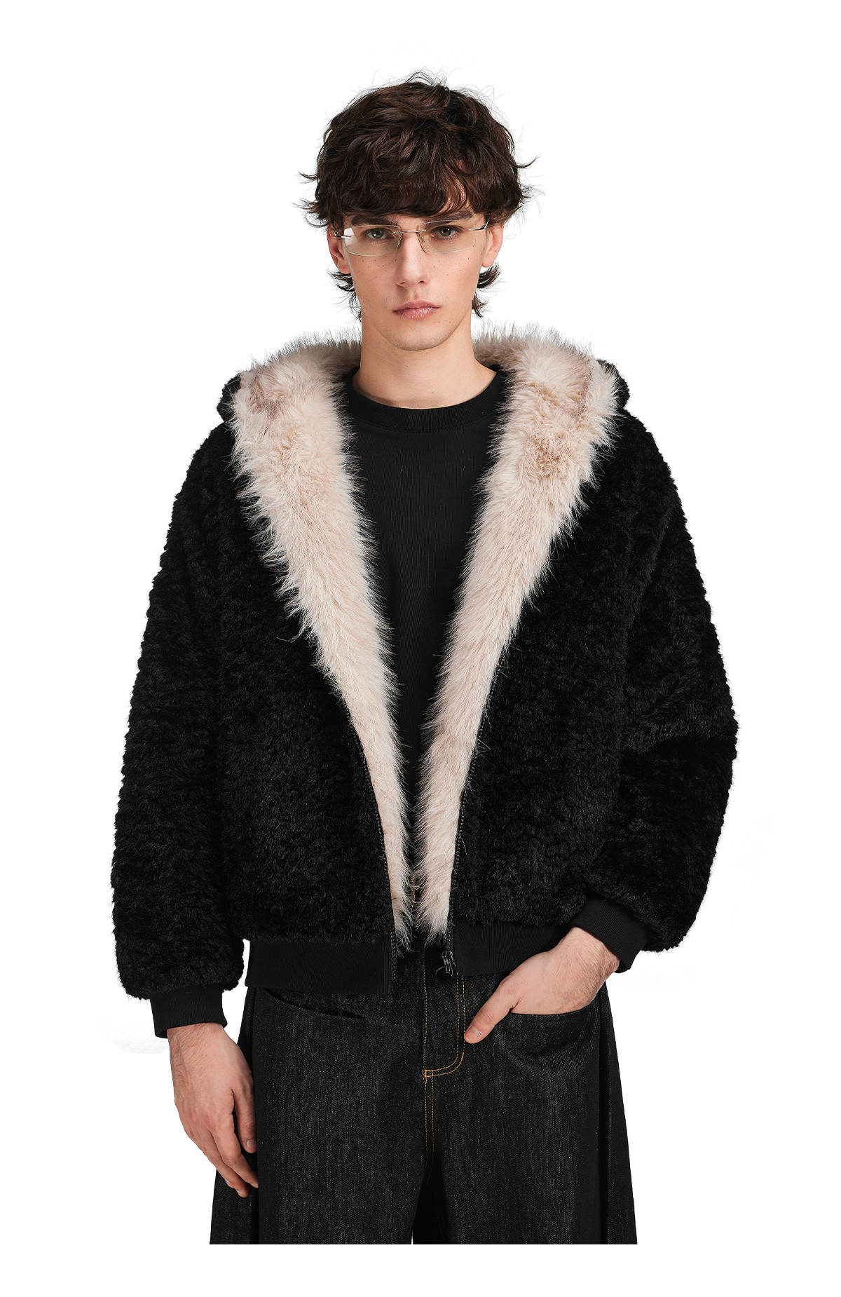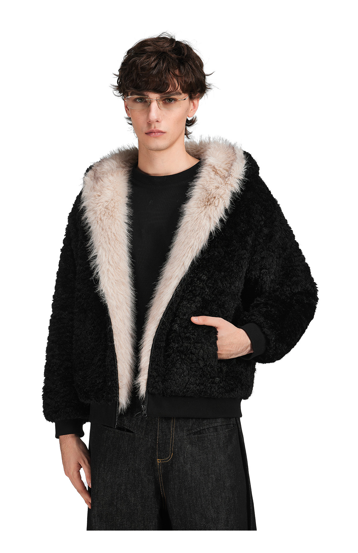 FDR旗舰店 羊羔绒毛领加厚连帽上衣男美式复古猫耳朵座山雕外套女