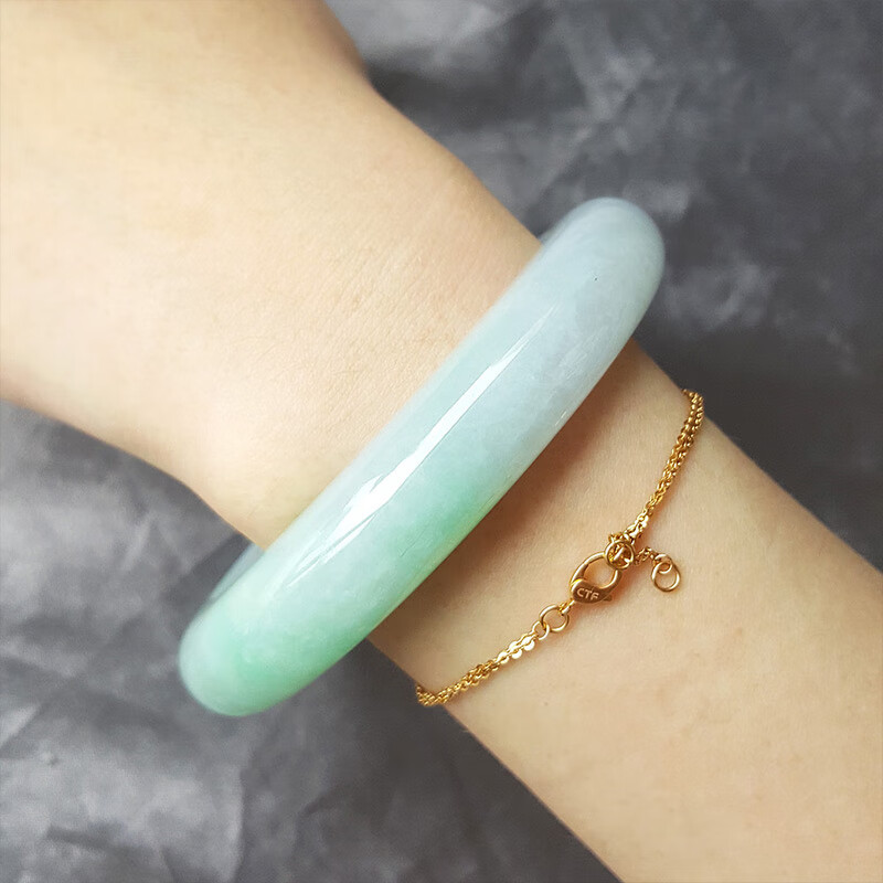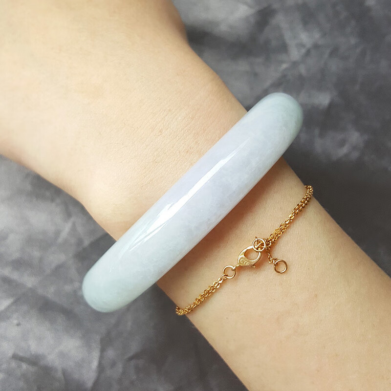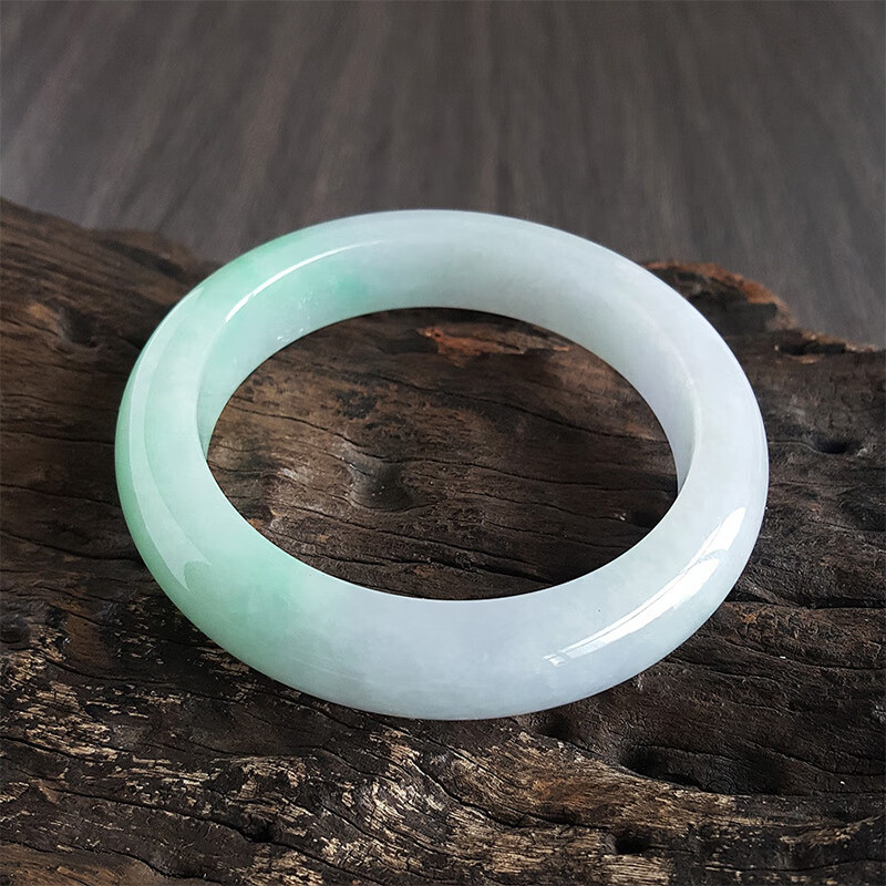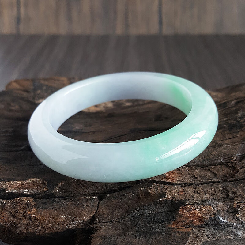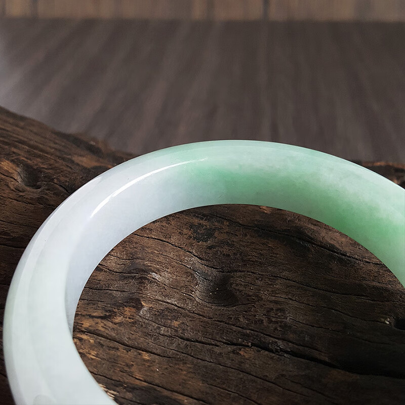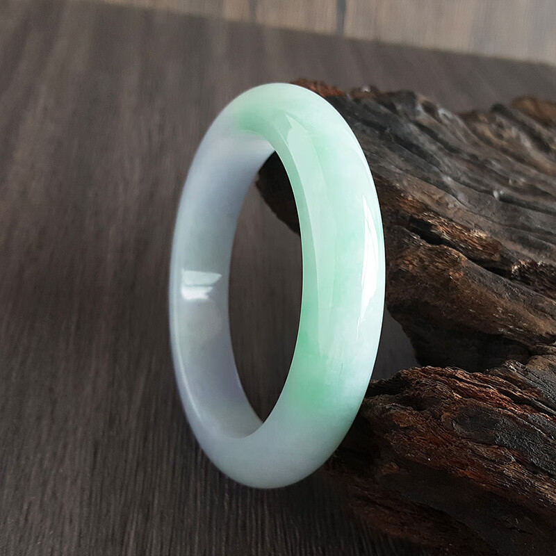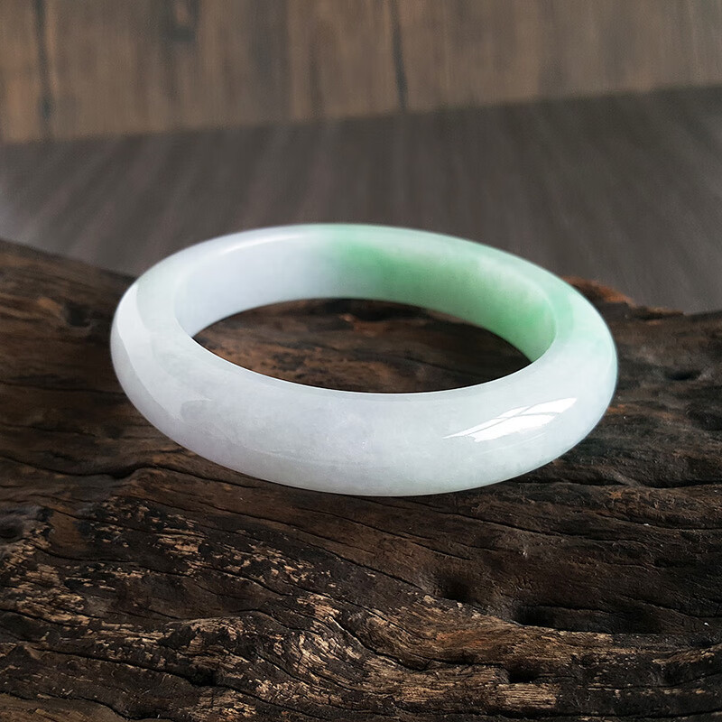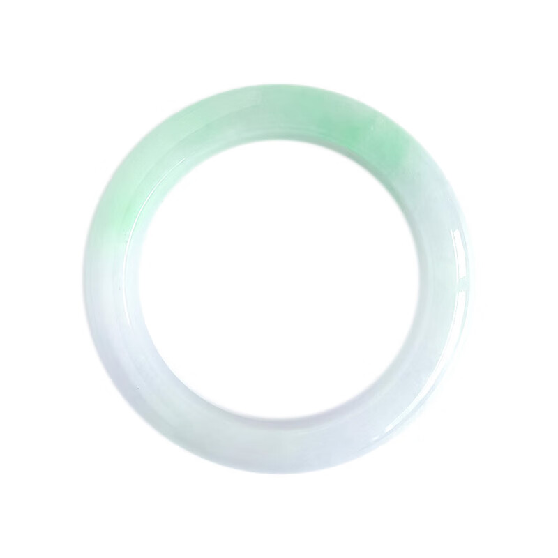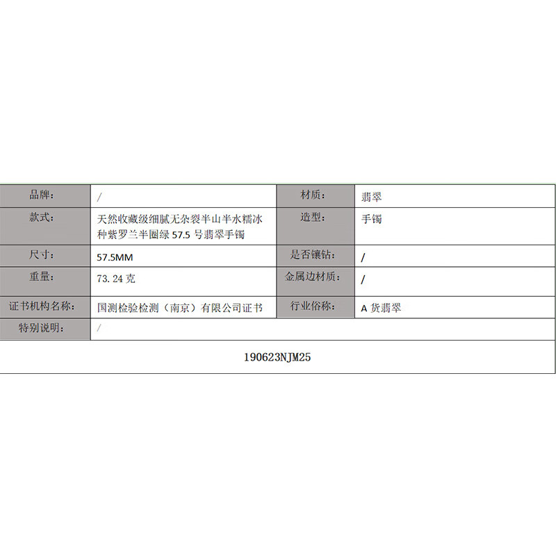 【天然正品】天然收藏级细腻无杂裂半山半水糯冰种紫罗兰半圈绿57.5号翡翠手镯 190623NJM25