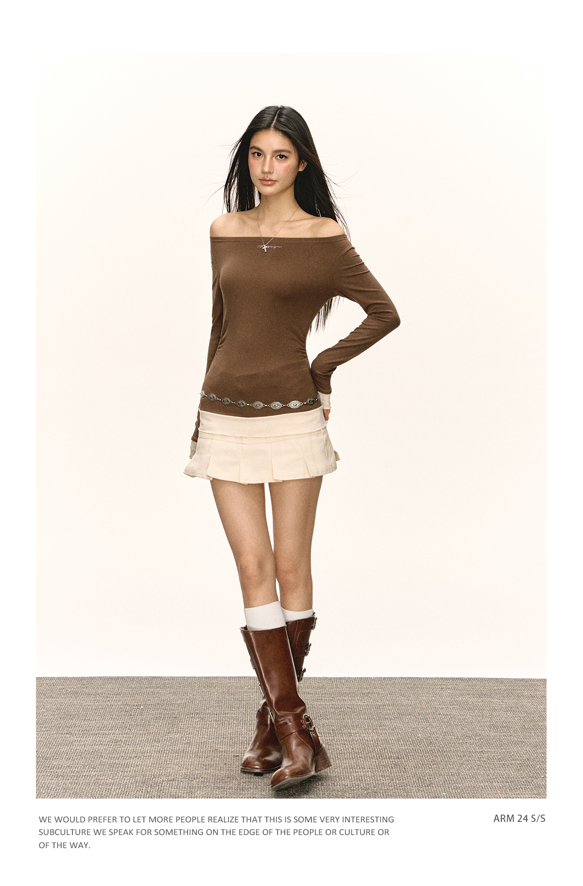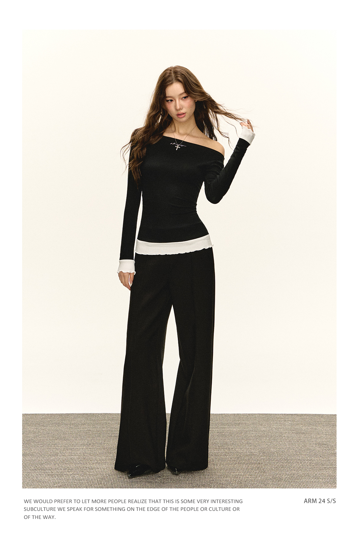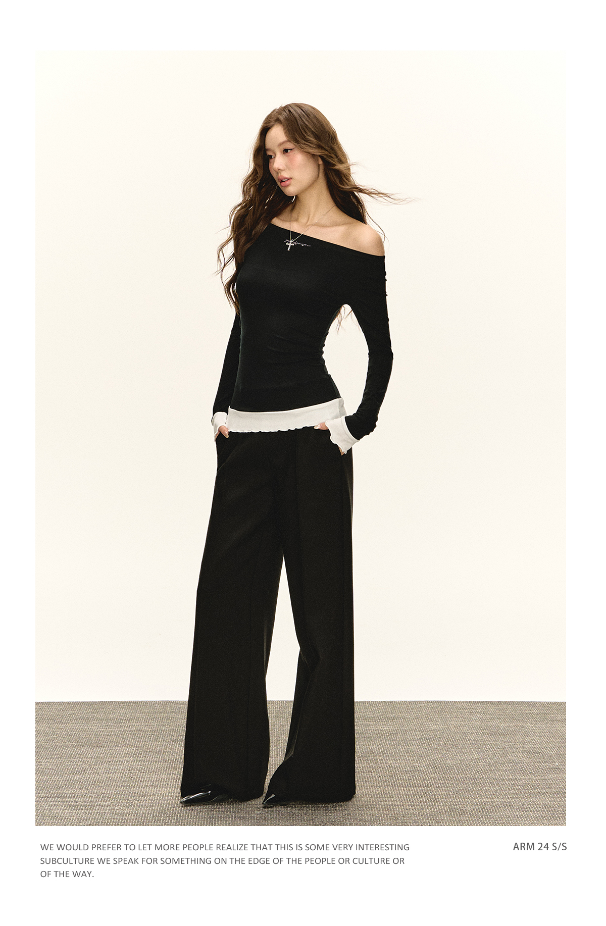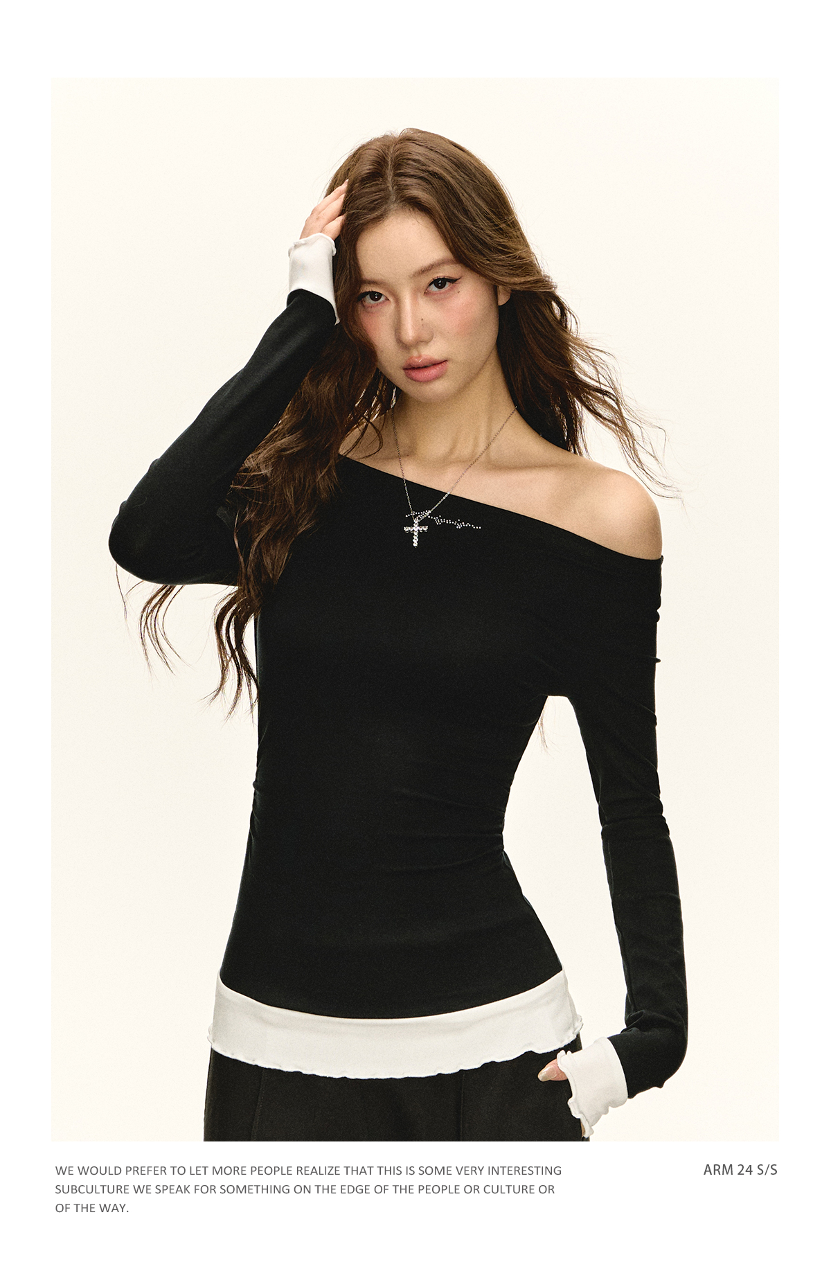 Ariseism美式复古高级感一字肩长袖针织衫女春季新款内搭打底上衣