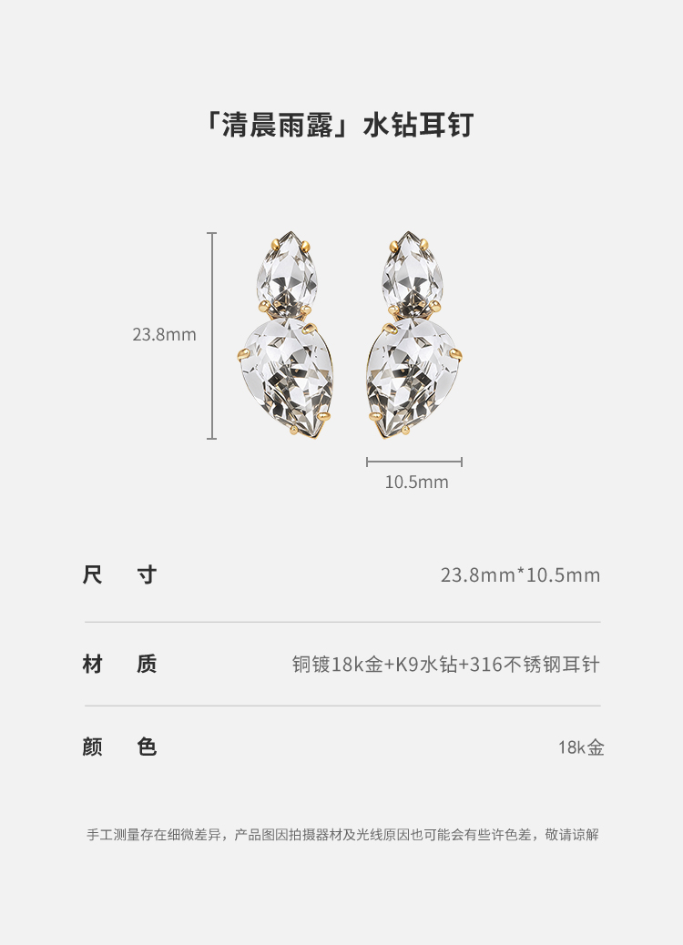 ANGEL ISLAND 「清晨雨露」新款小众气质耳饰水钻耳钉