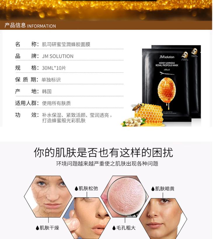 JM莹润蜂胶面膜30ml*10片(蜂蜜面膜)