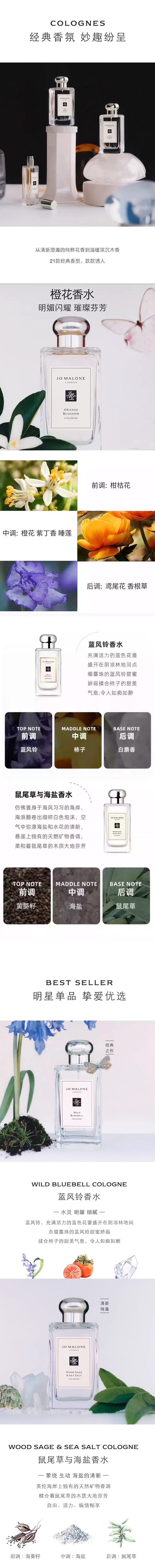 【全球购·送礼袋】Jo Malone London祖玛珑橙花/鼠尾草/蓝风铃香水100ml·中秋特惠海淘香港🇭🇰直邮