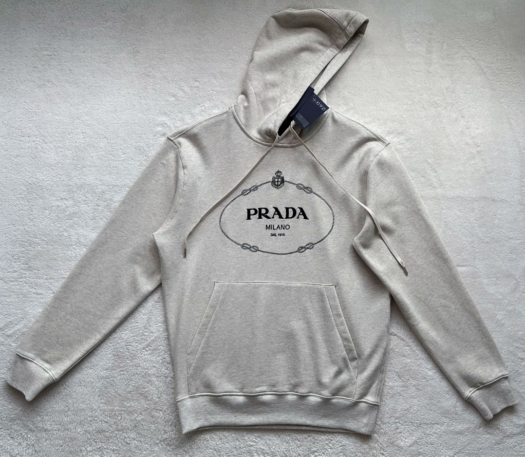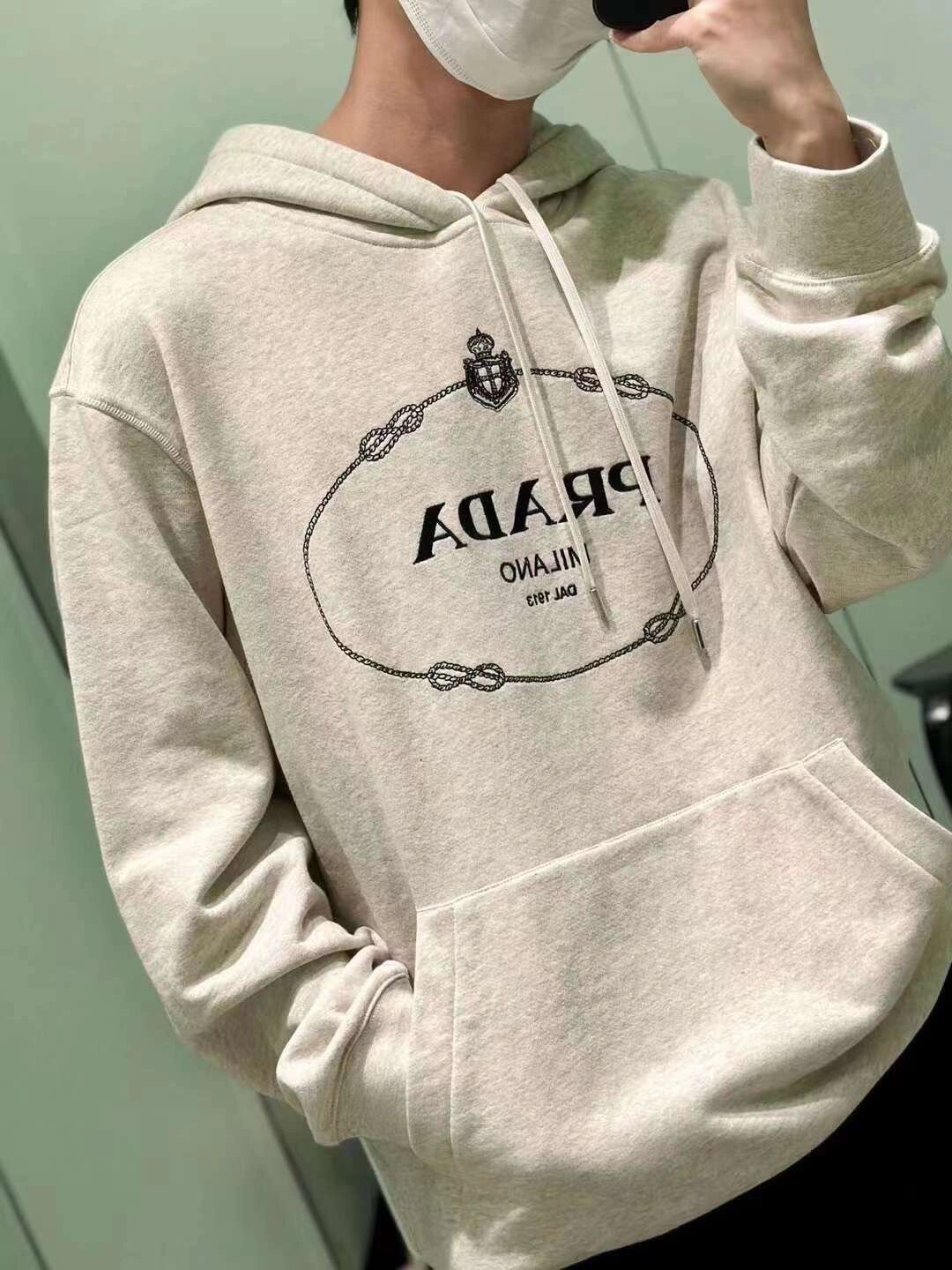 P家 新款麻绳绣花连帽卫衣