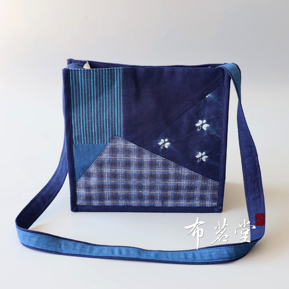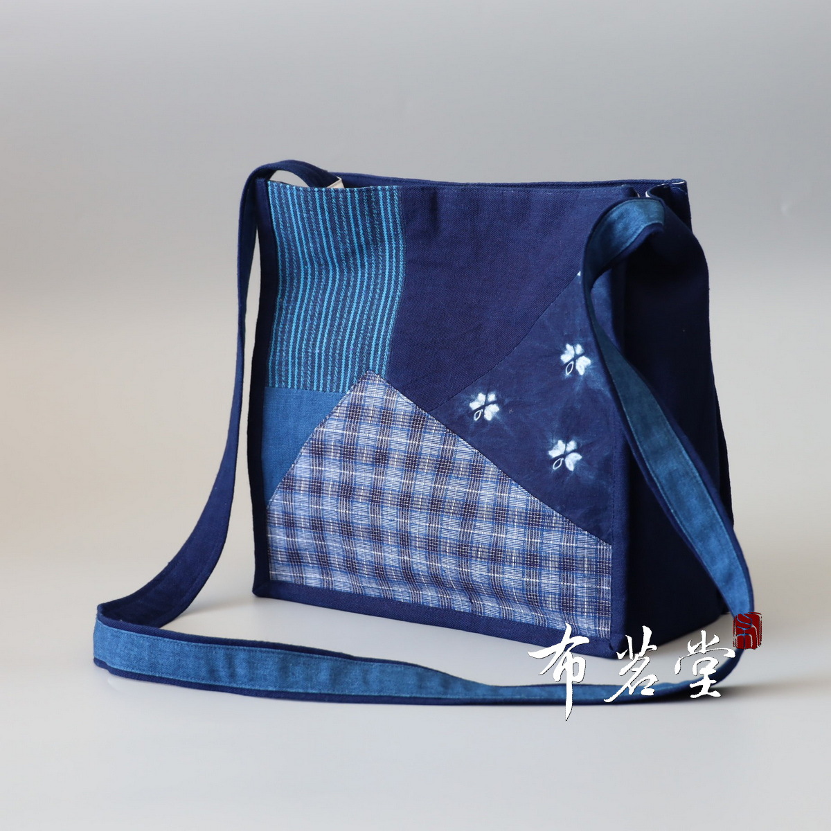 拼布斜挎方包 蓝染扎染土布拼接