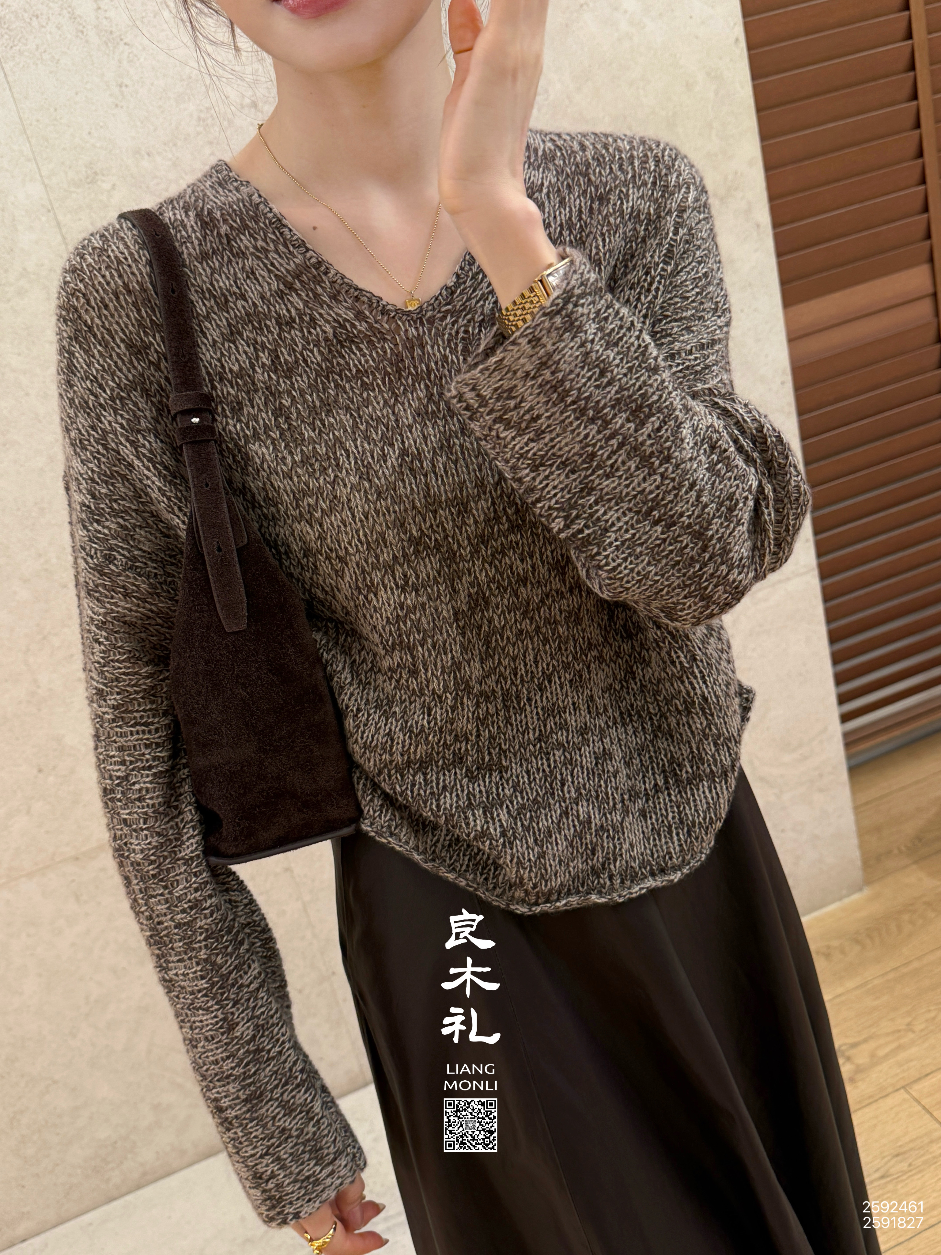 【特价不退不换】良木礼山羊绒V领上衣(Q2592461)
