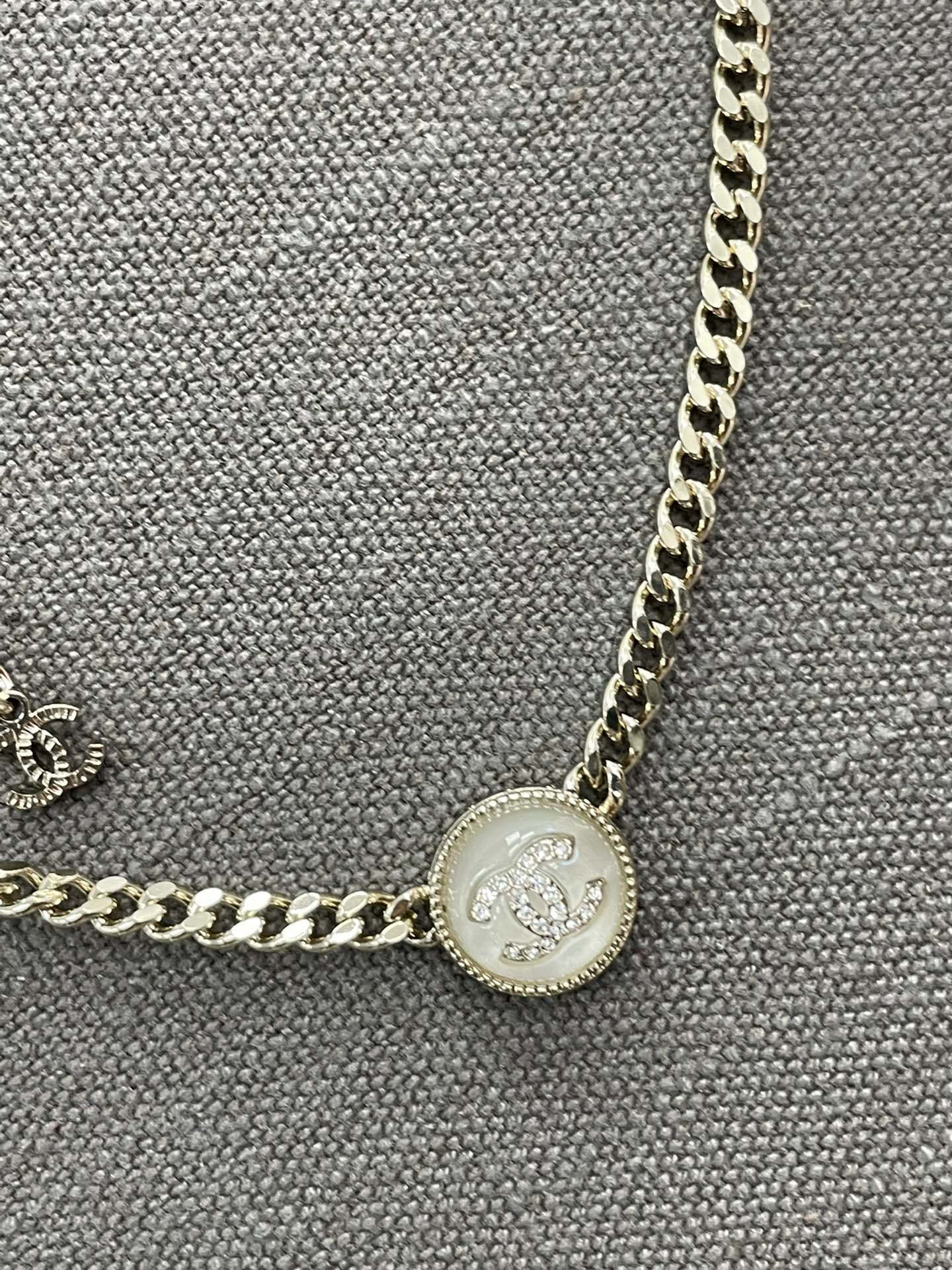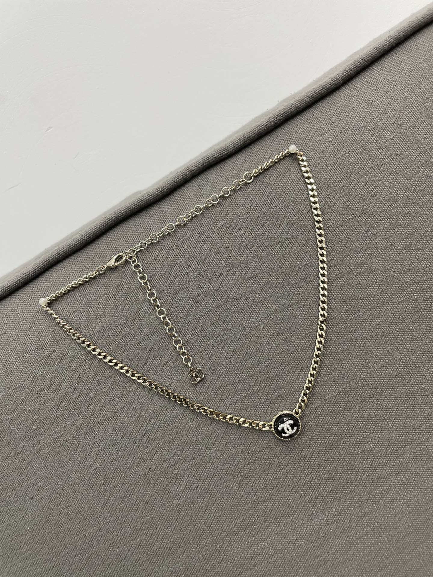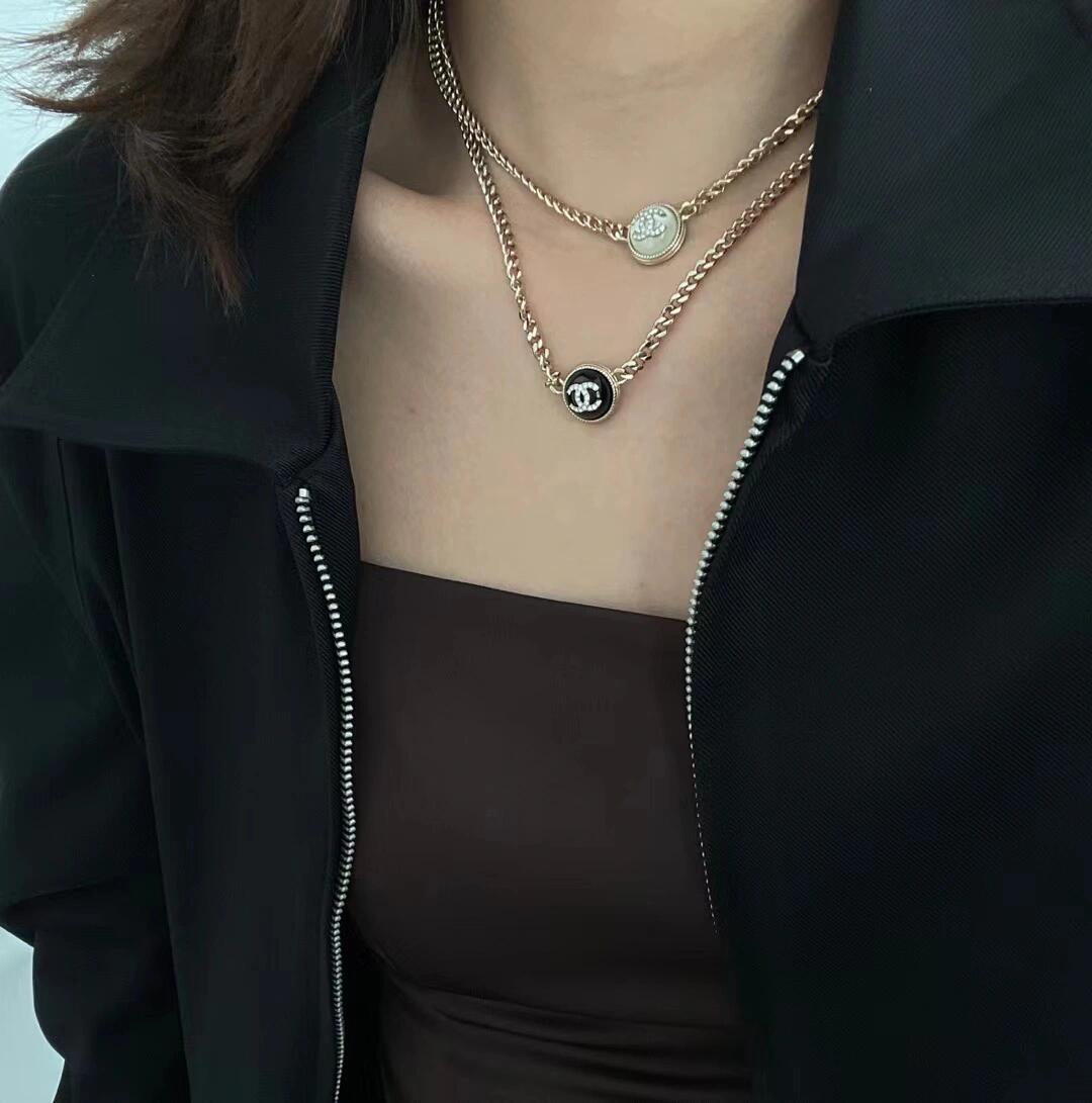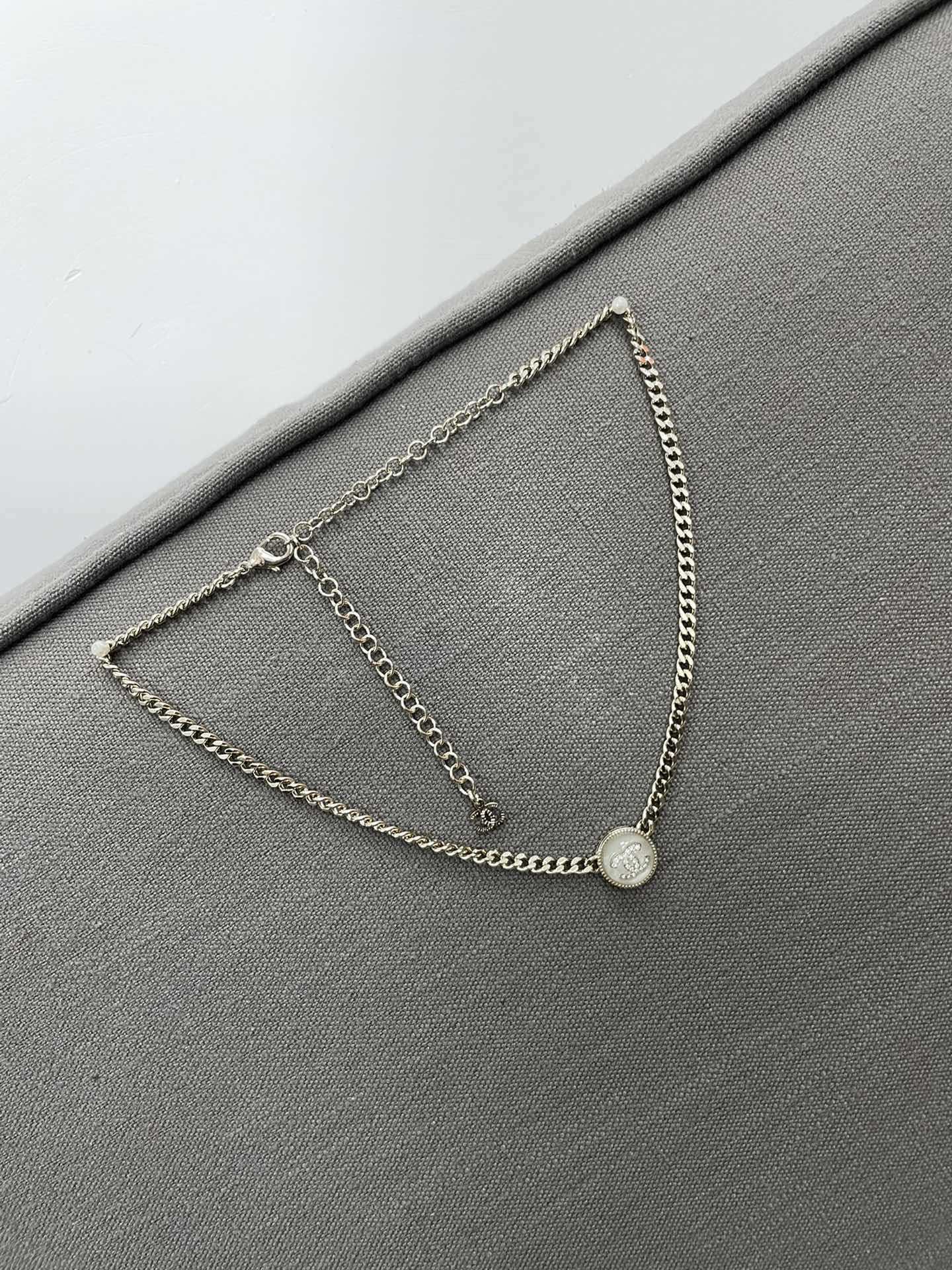 香奈儿双c纽扣项链 双C logo非常秀气,再加上满镶施华洛水晶,blingbling超级灵动 适合日常各种搭配!特别推荐白色黑色都入 叠戴搭配特别仙 总链长53cm 可调节