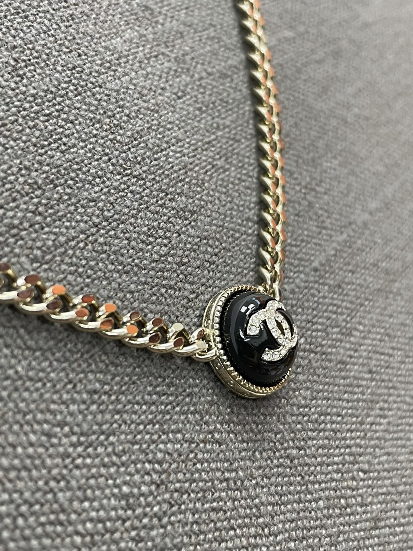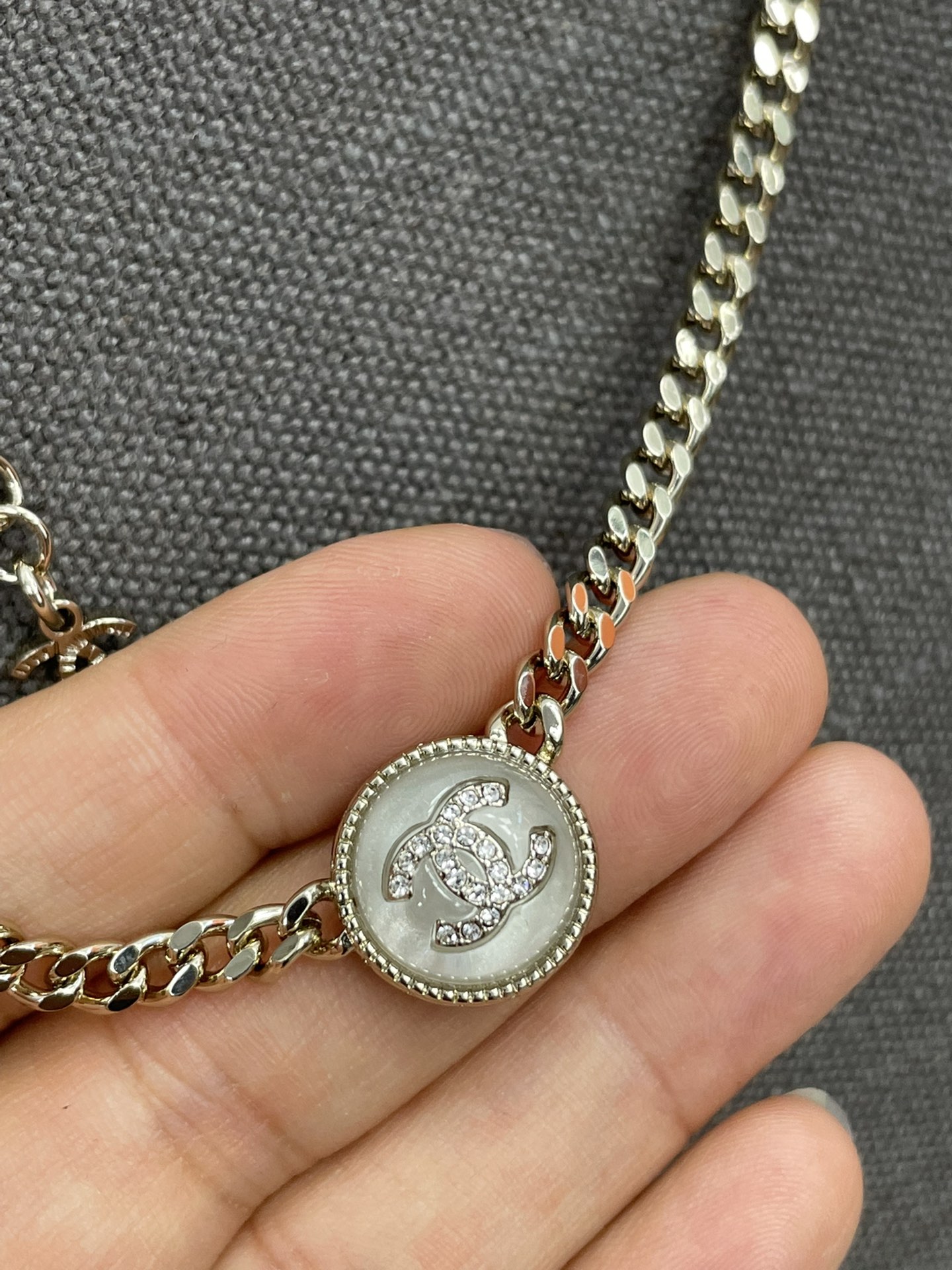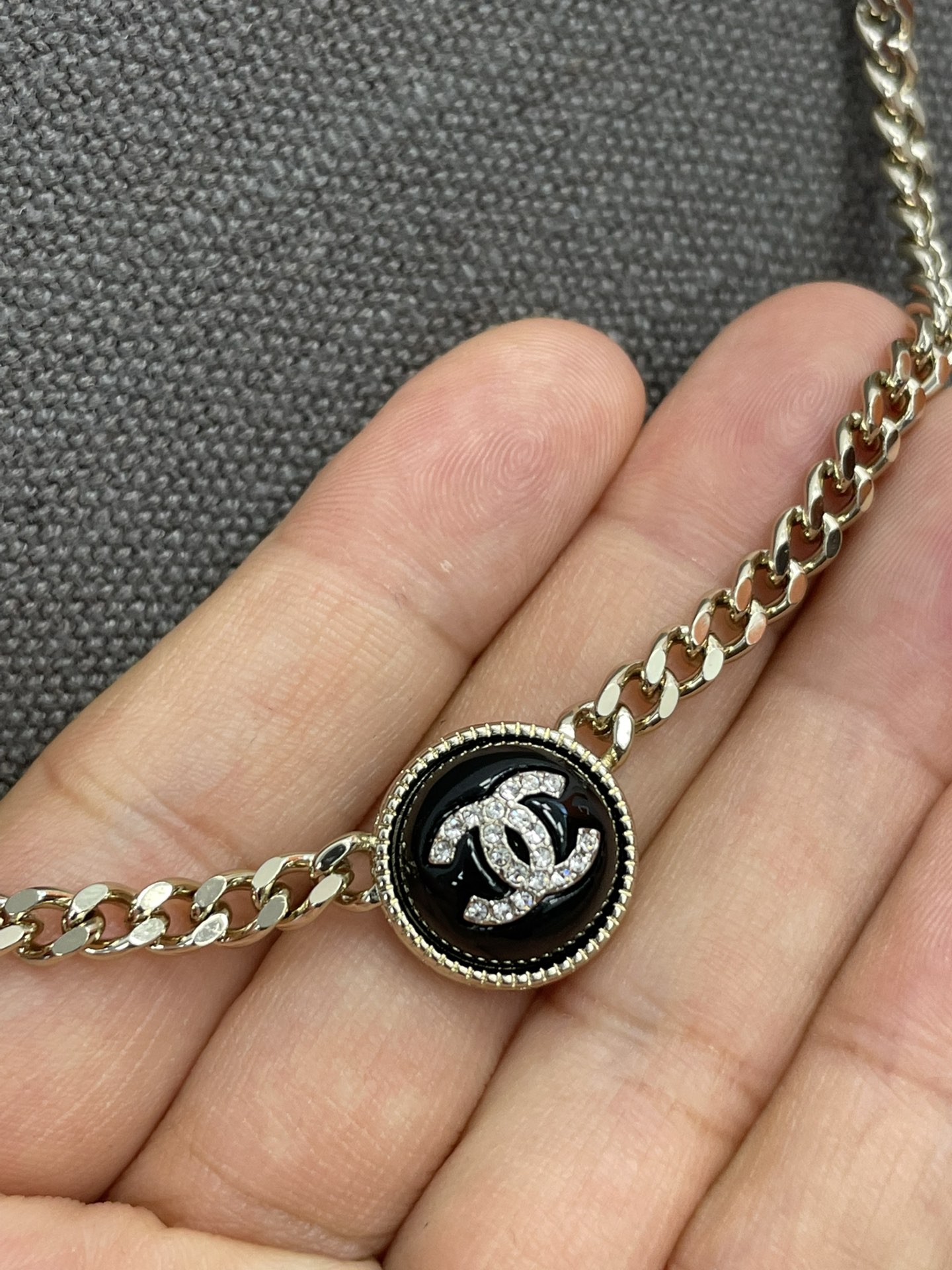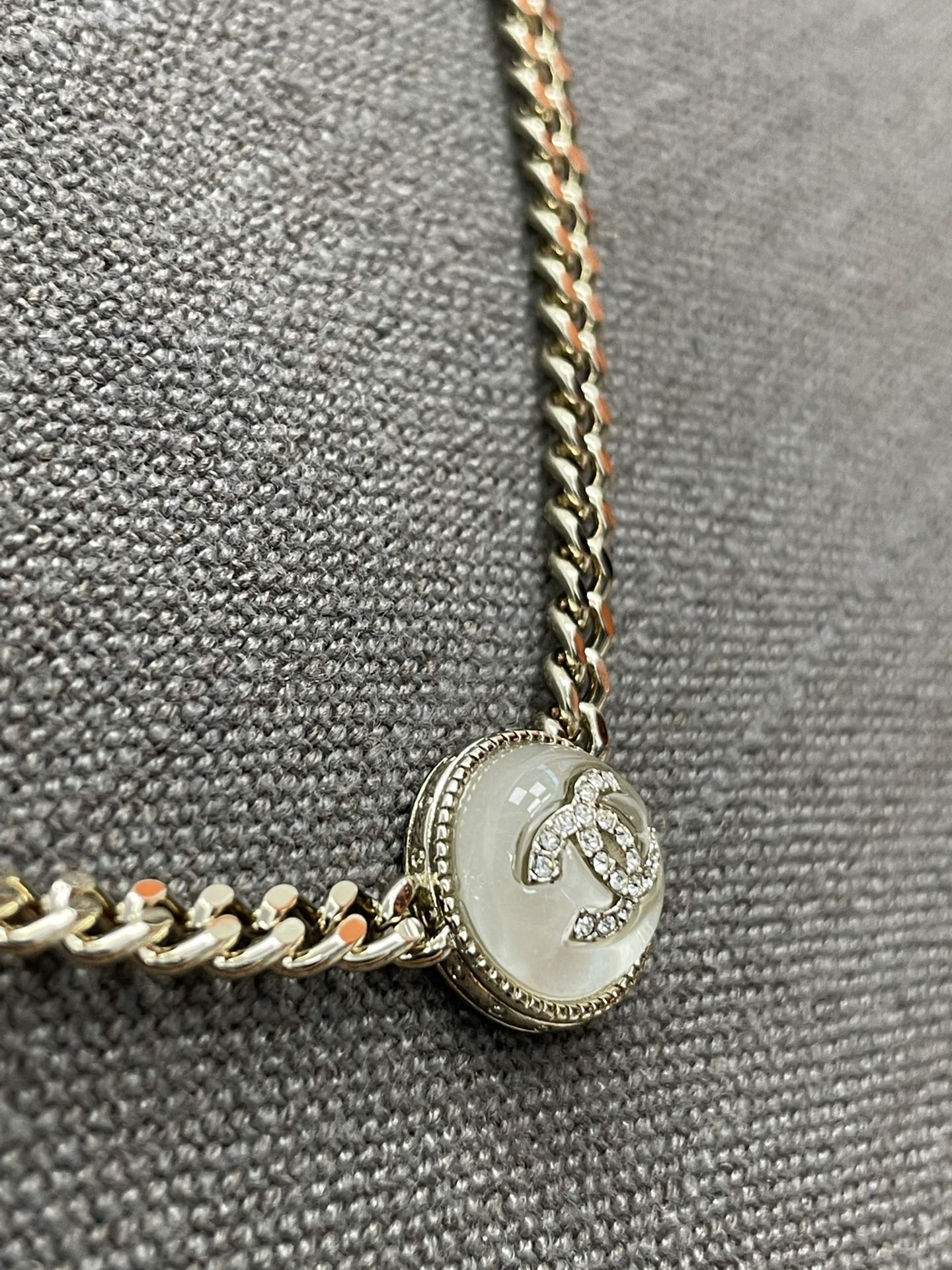 香奈儿双c纽扣项链 双C logo非常秀气,再加上满镶施华洛水晶,blingbling超级灵动 适合日常各种搭配!特别推荐白色黑色都入 叠戴搭配特别仙 总链长53cm 可调节