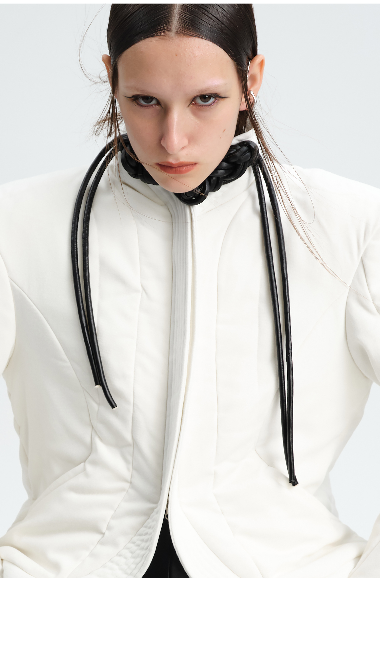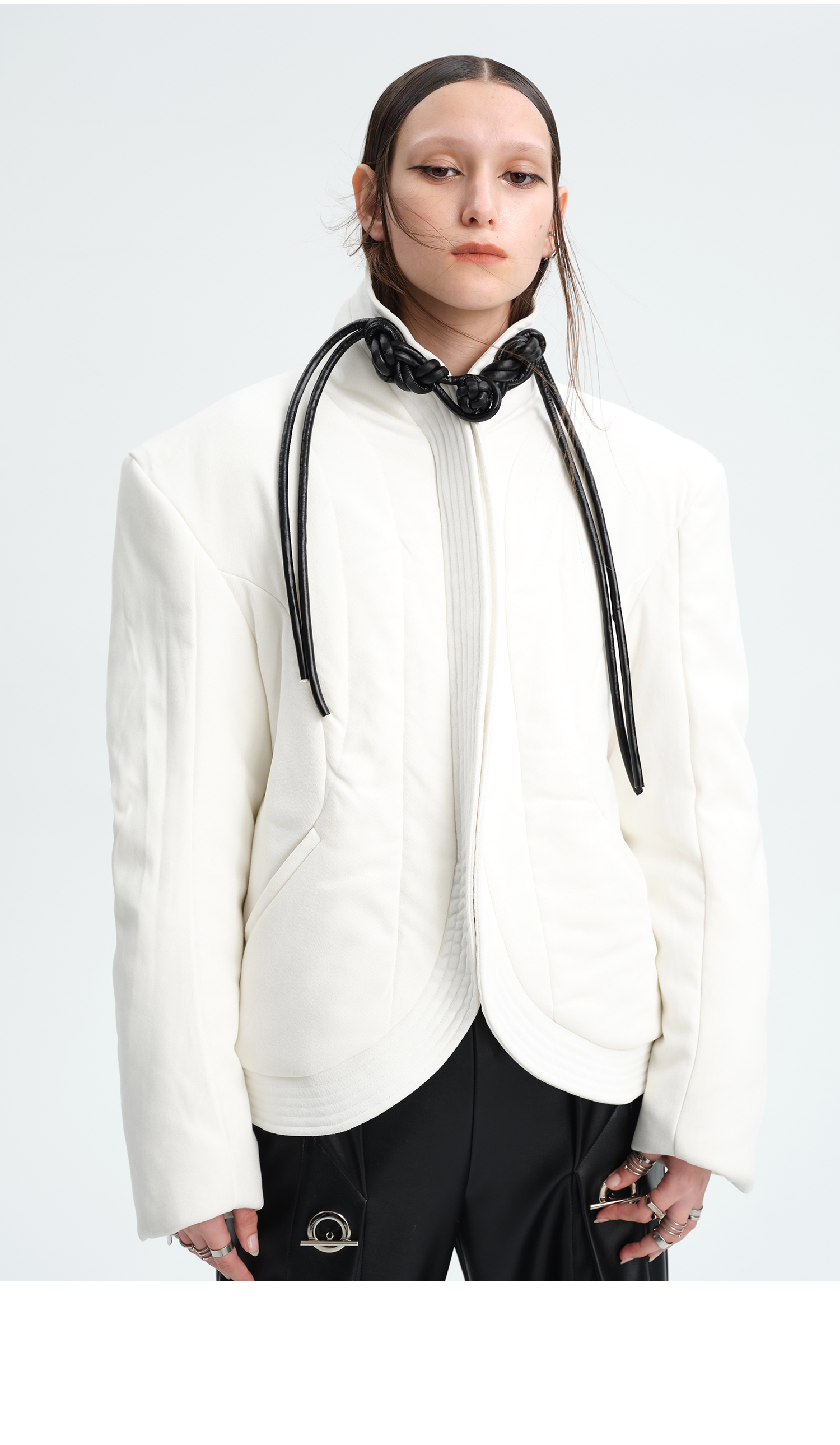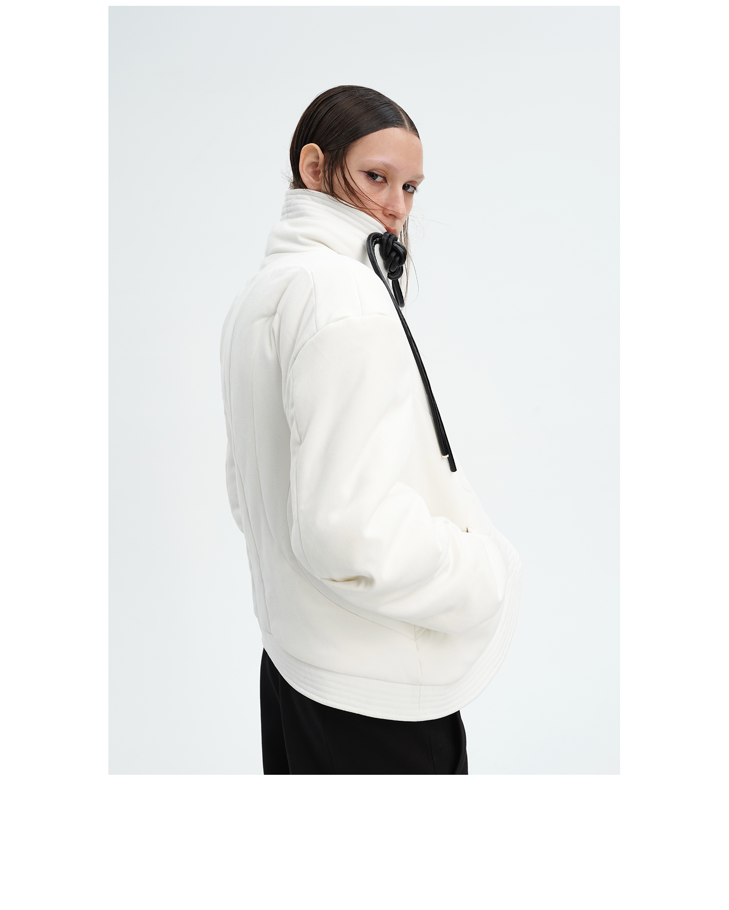 TIWILLTANG就异是 “MIRROR'”白色新中式皮盘扣立体门襟绗缝棉服