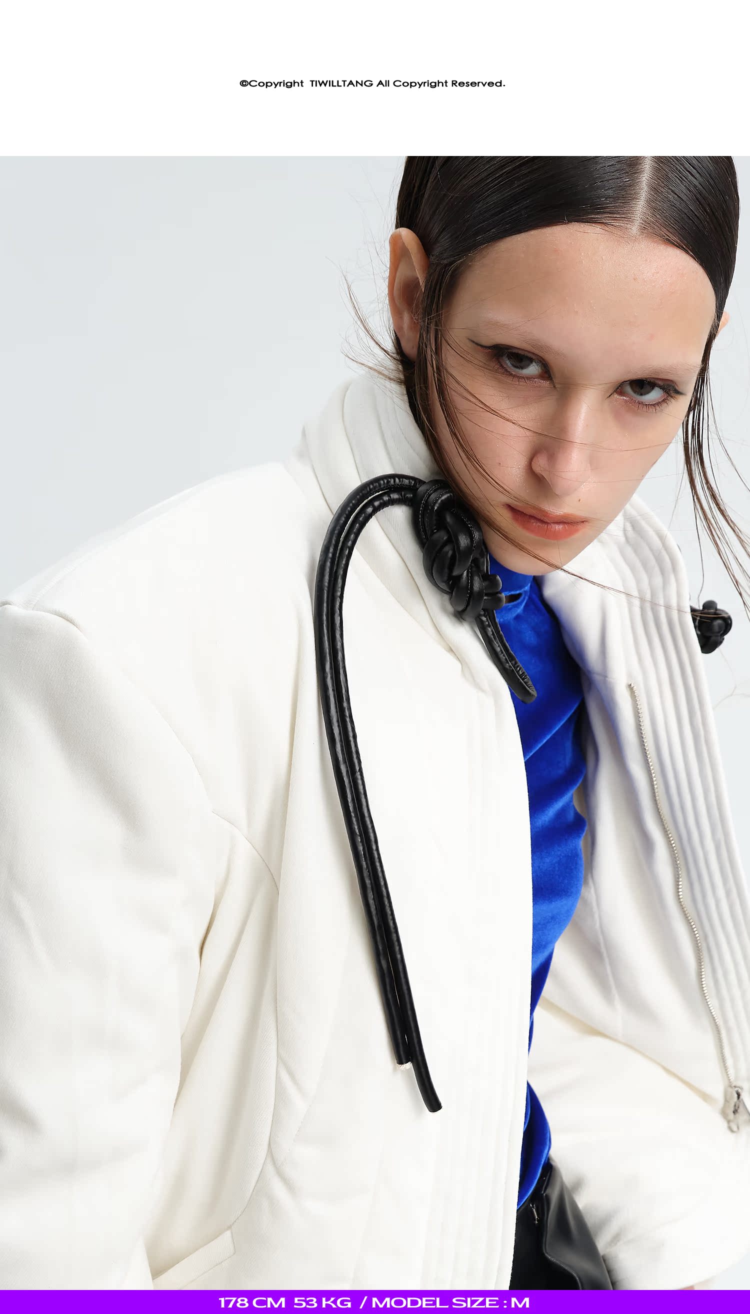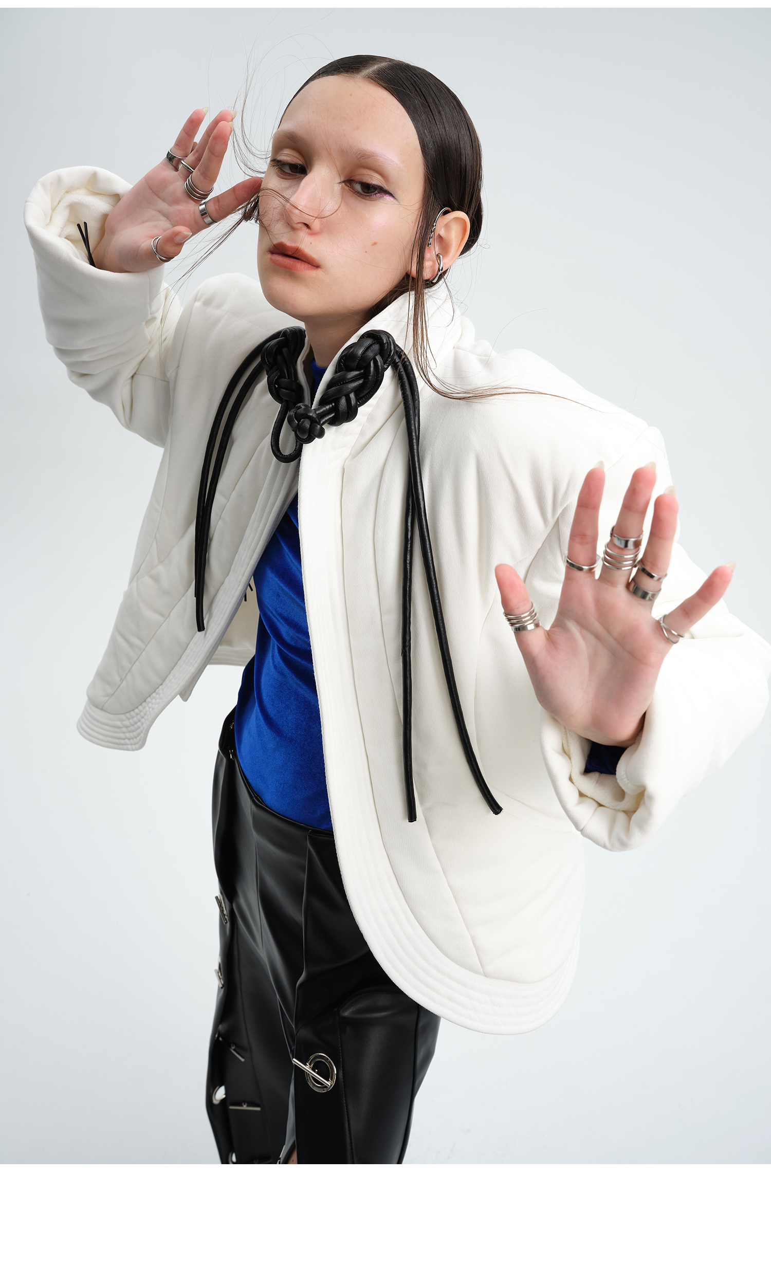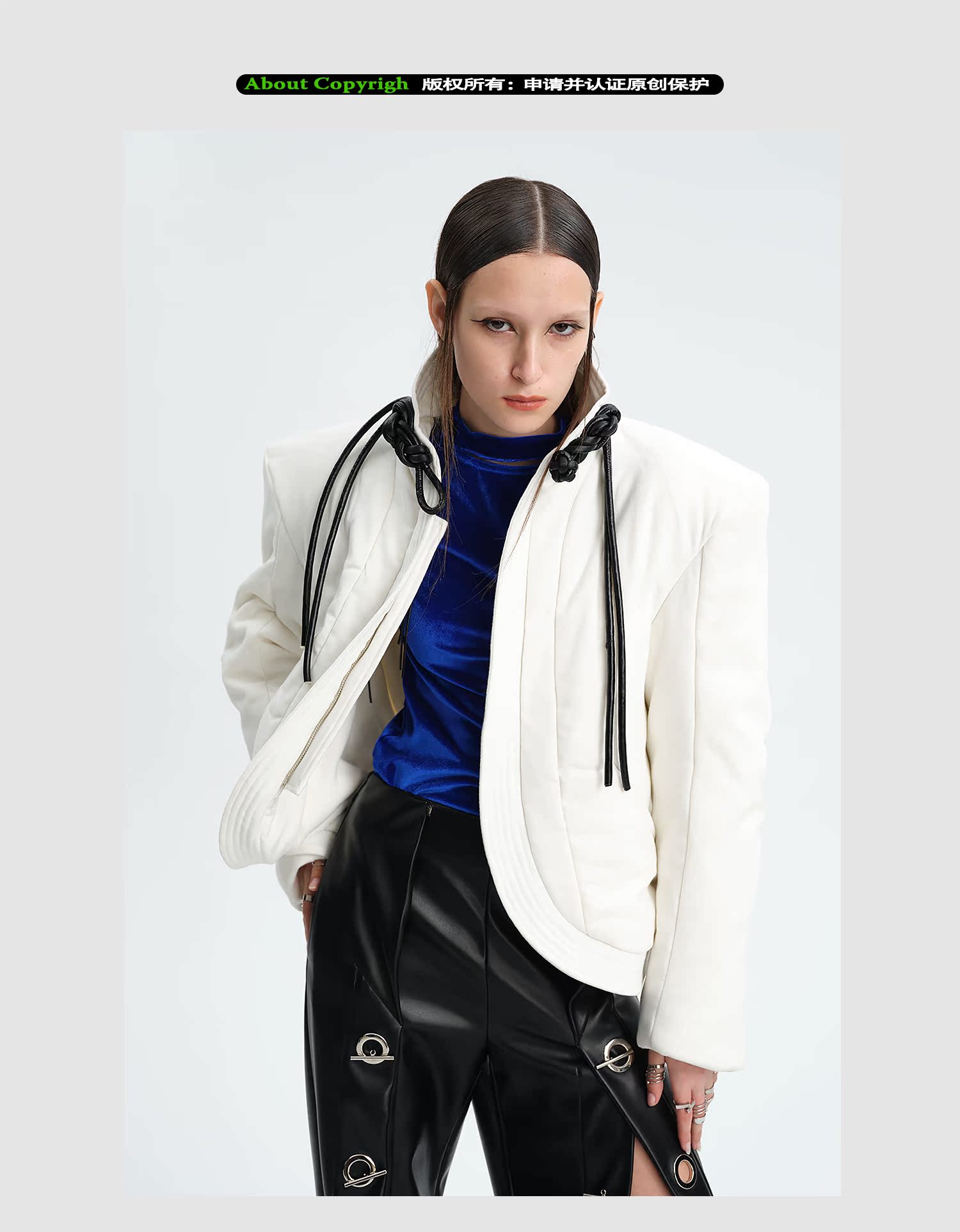 TIWILLTANG就异是 “MIRROR'”白色新中式皮盘扣立体门襟绗缝棉服