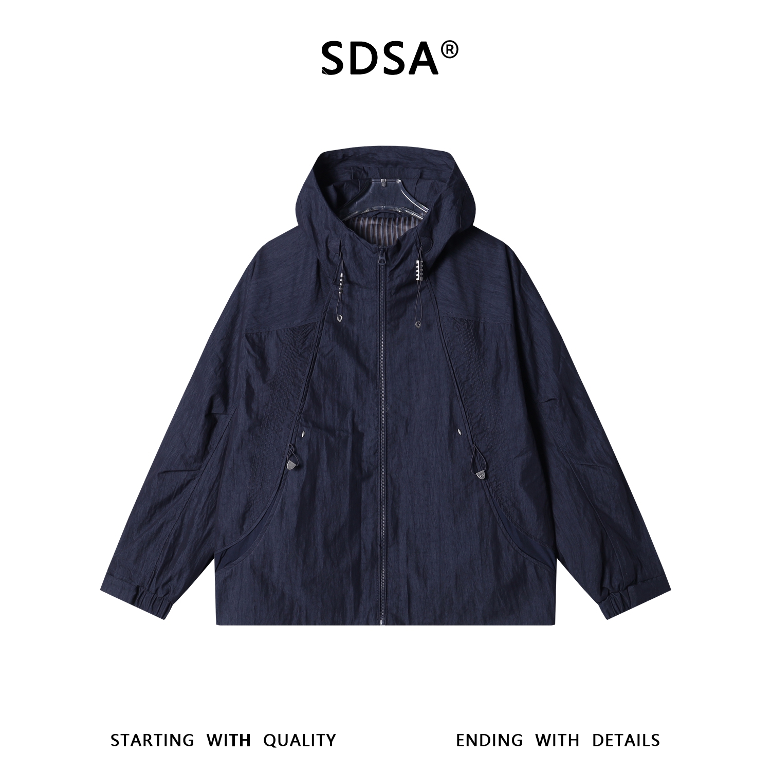 SDSA男士春夏新款痞帅男装美式时尚拼接拉链立领连帽夹克外套百搭