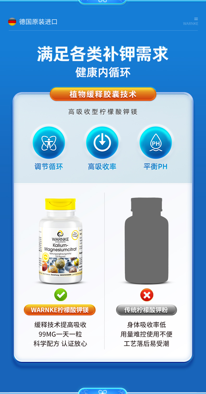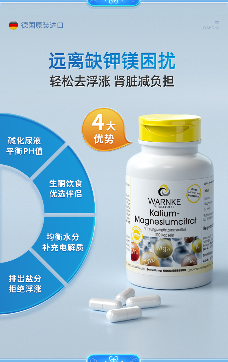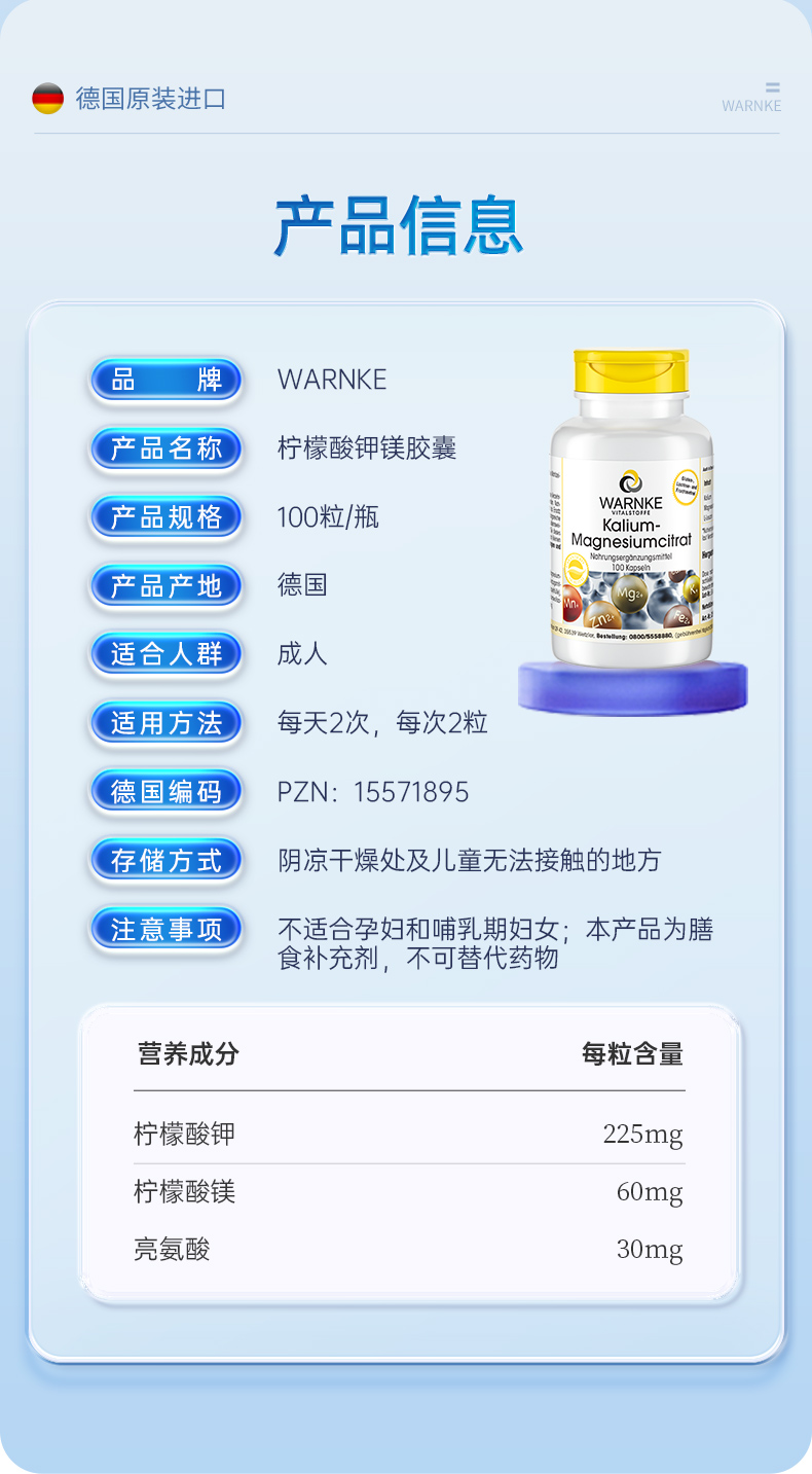 【ROMI专属】德国wanrke柠檬酸钾镁胶囊100粒