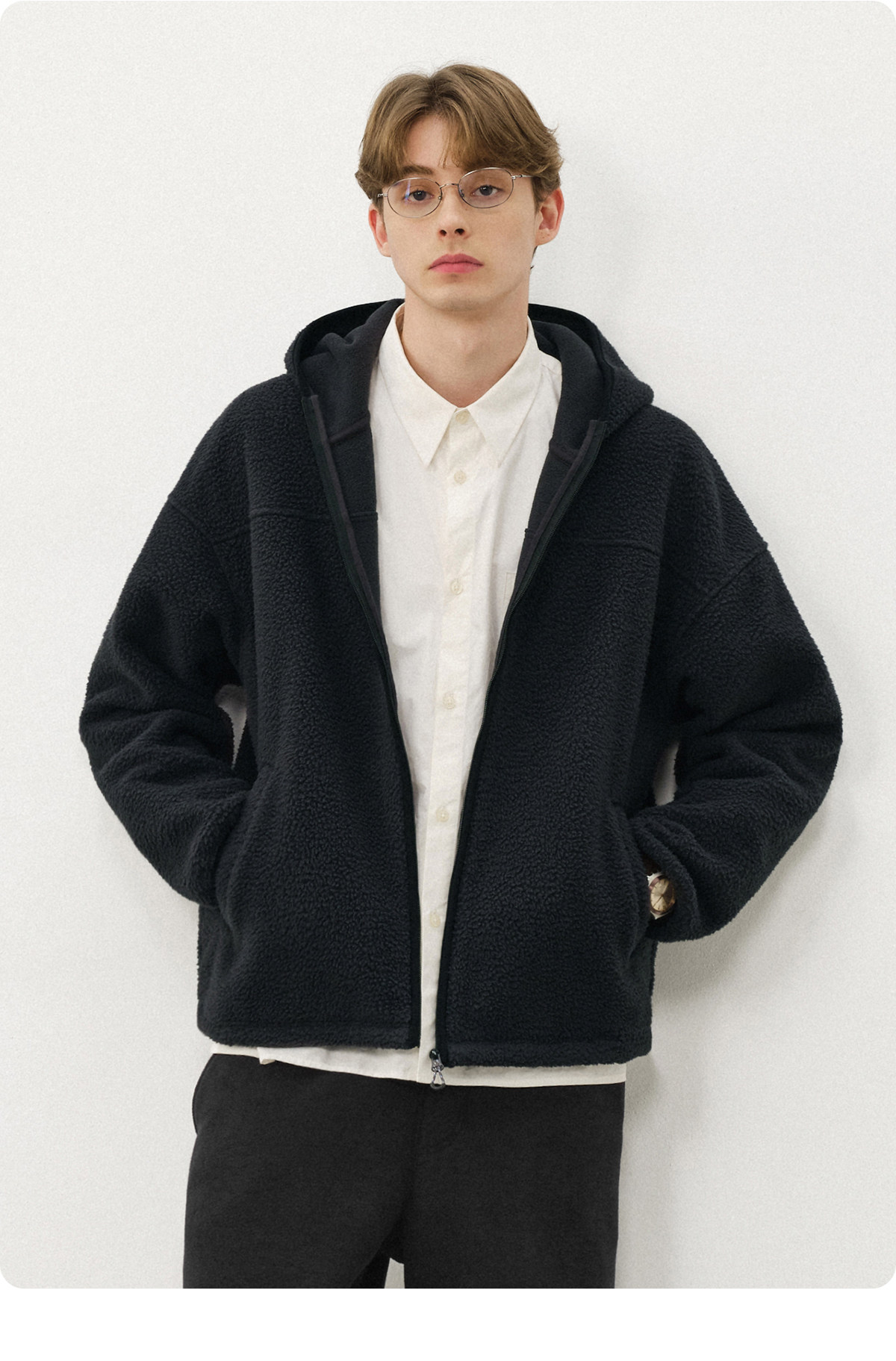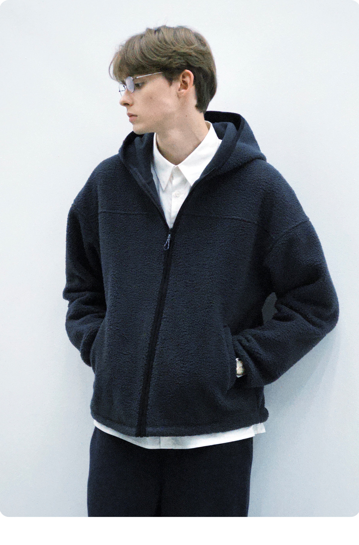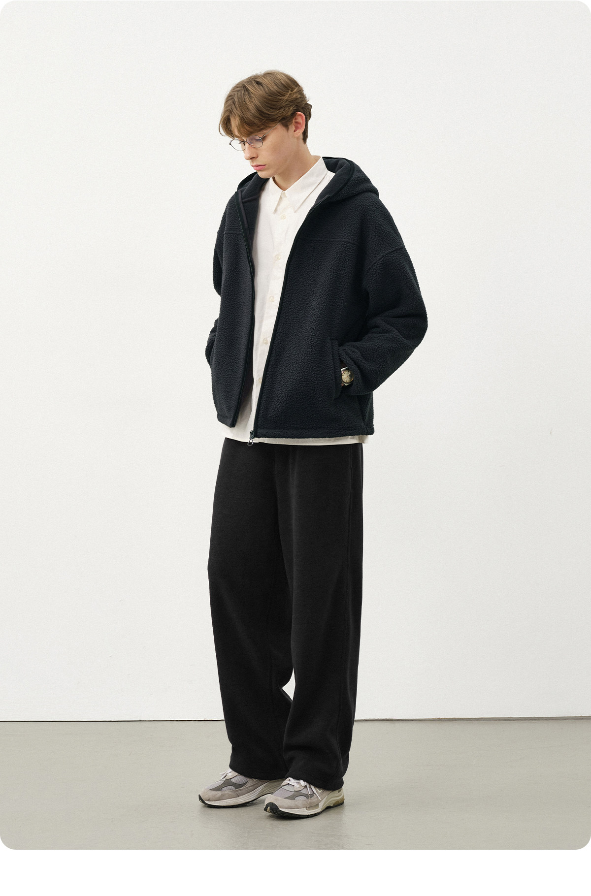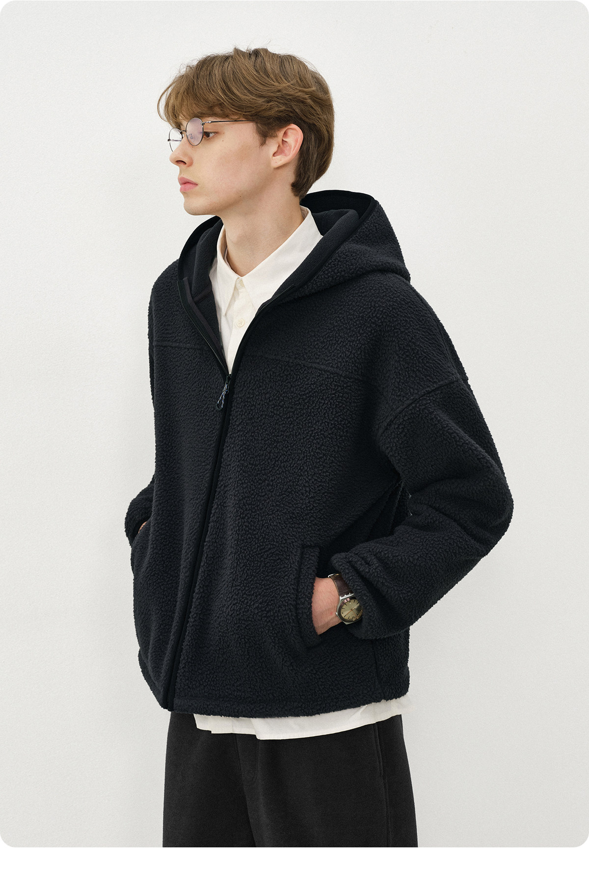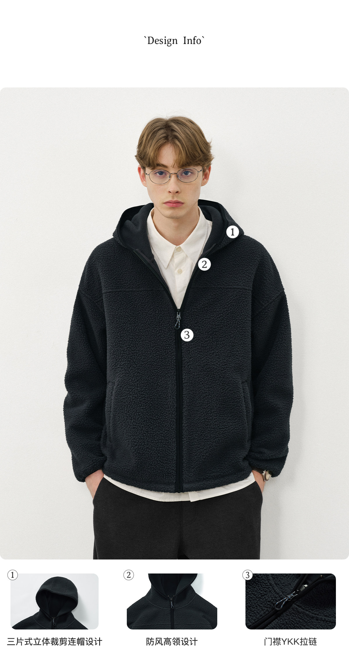 714street纯色羊羔绒连帽夹克百搭宽松2025新款工装棉服男秋冬