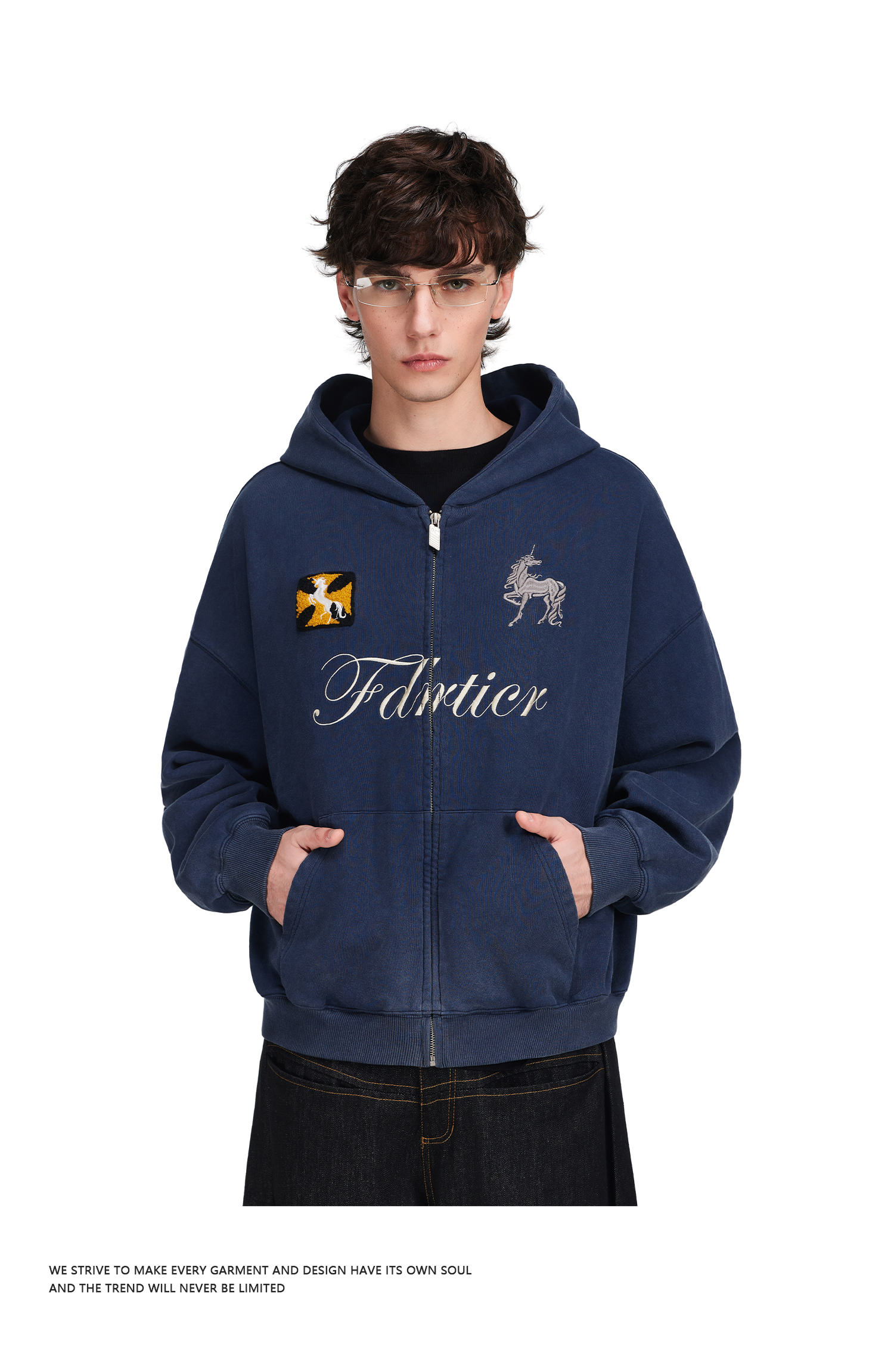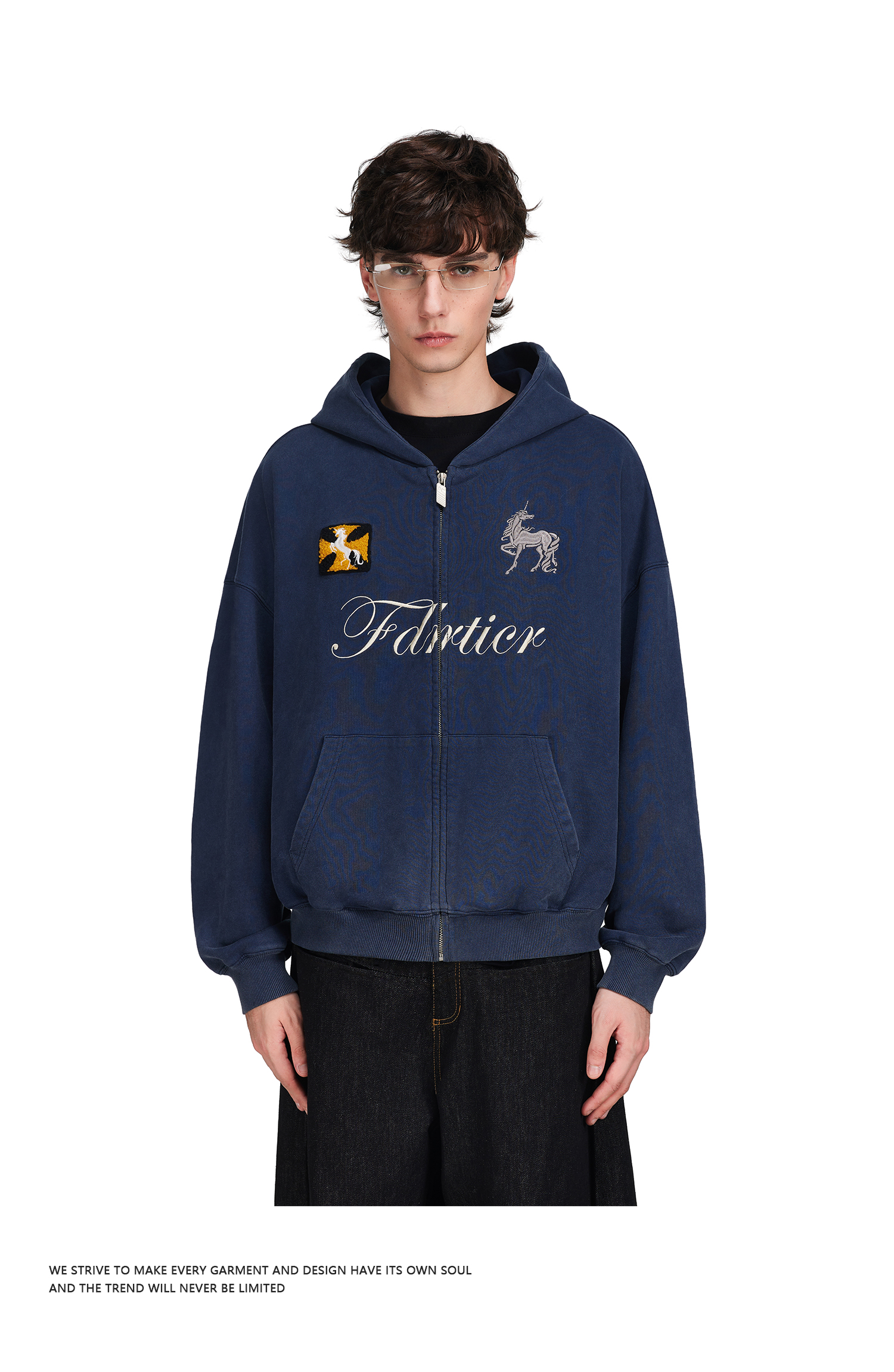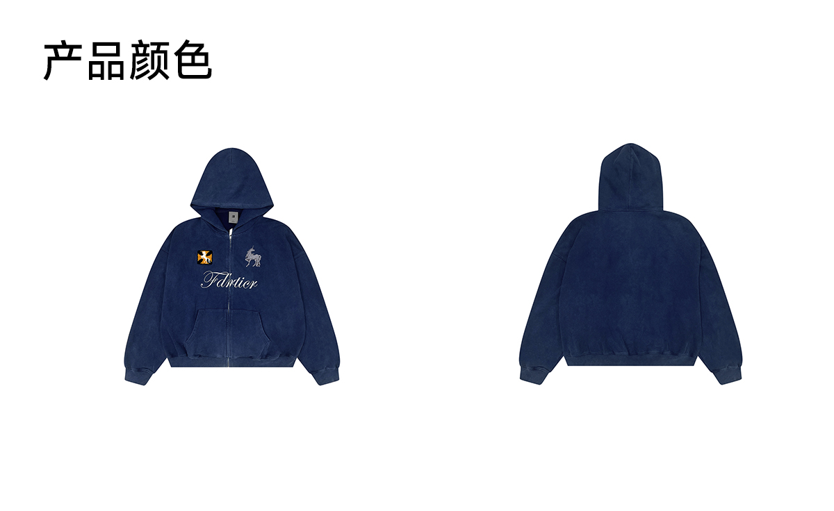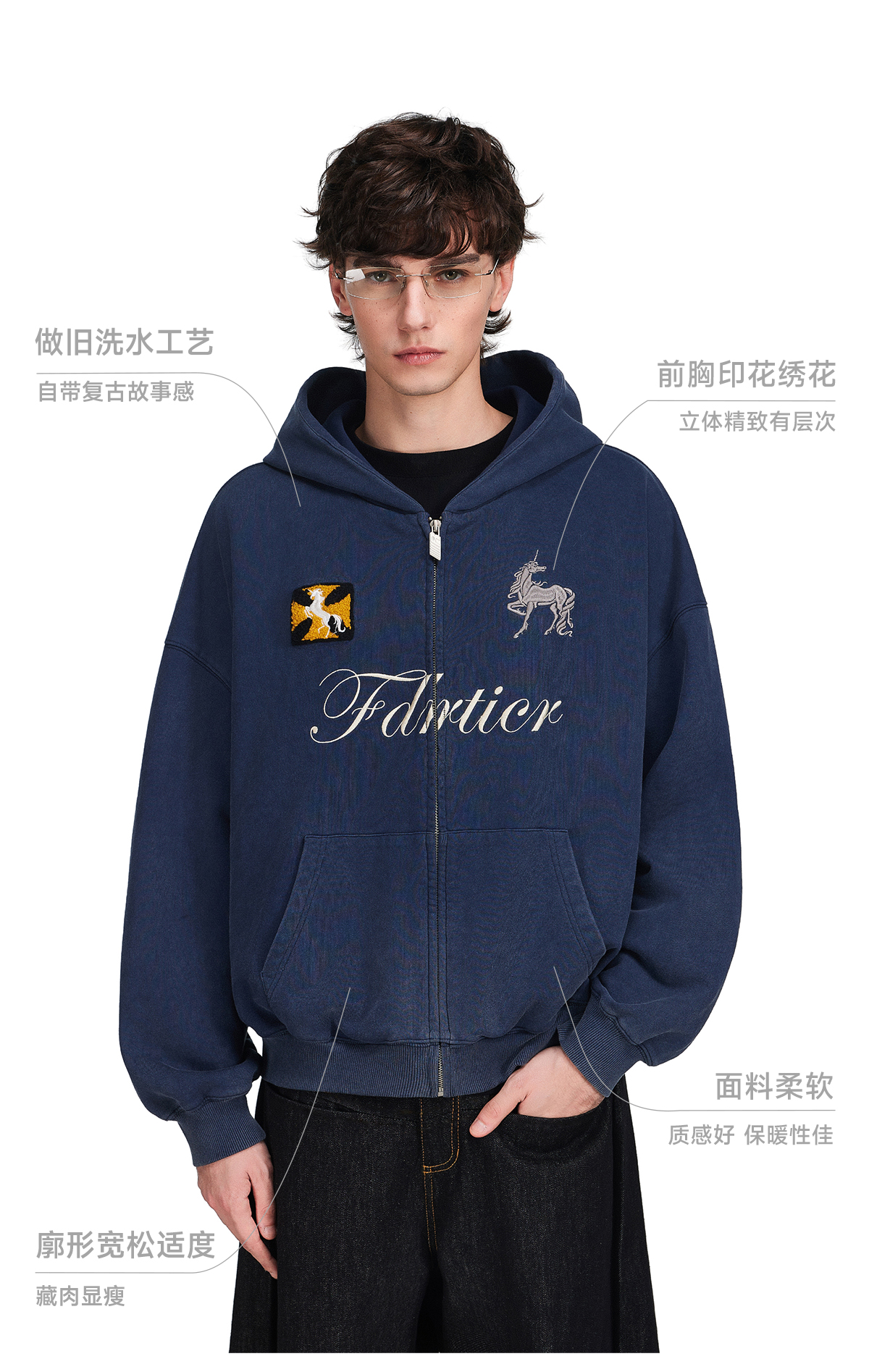 FDR官方店 美式复古做旧洗水卫衣男秋季情侣连帽拉链开衫外套女款