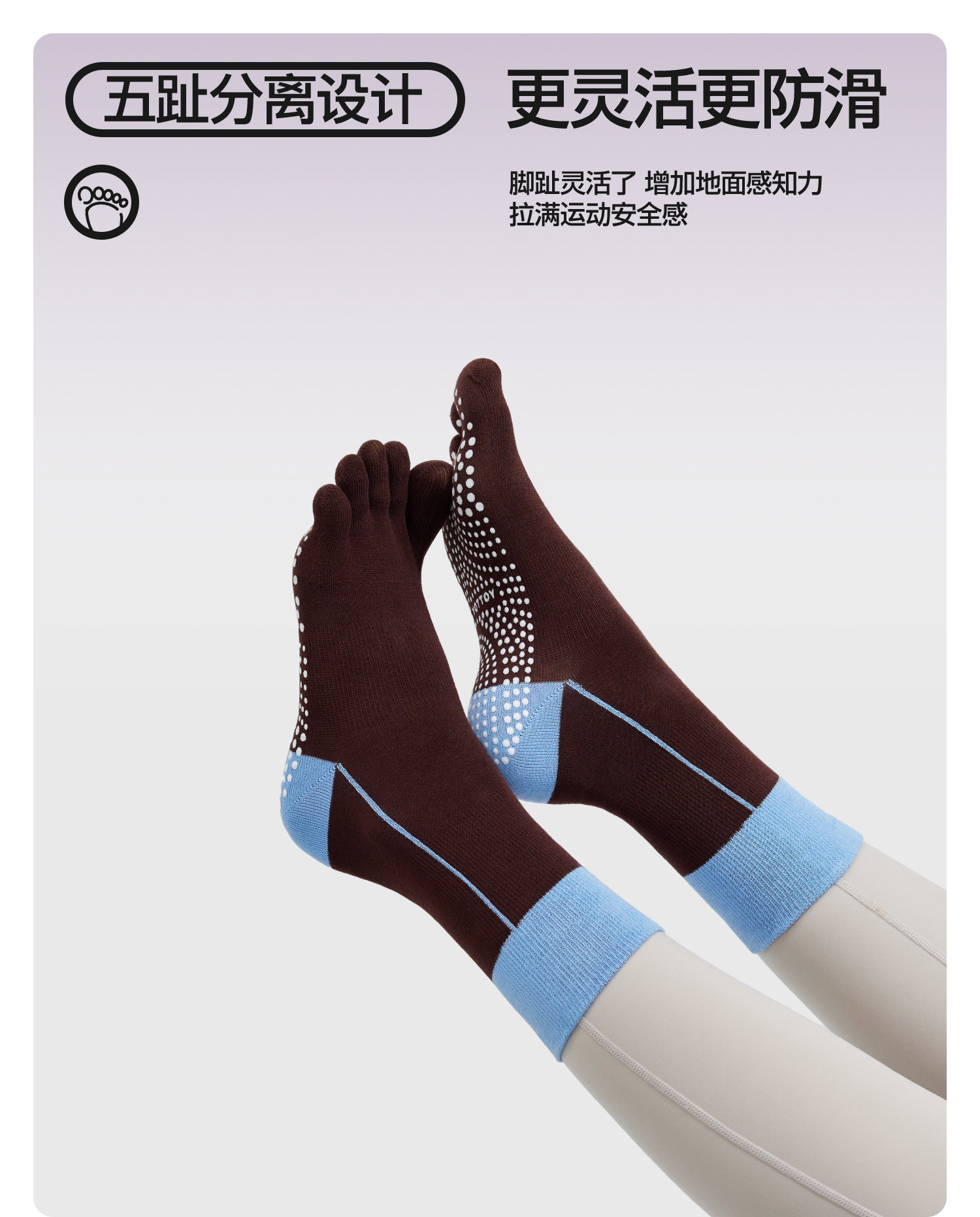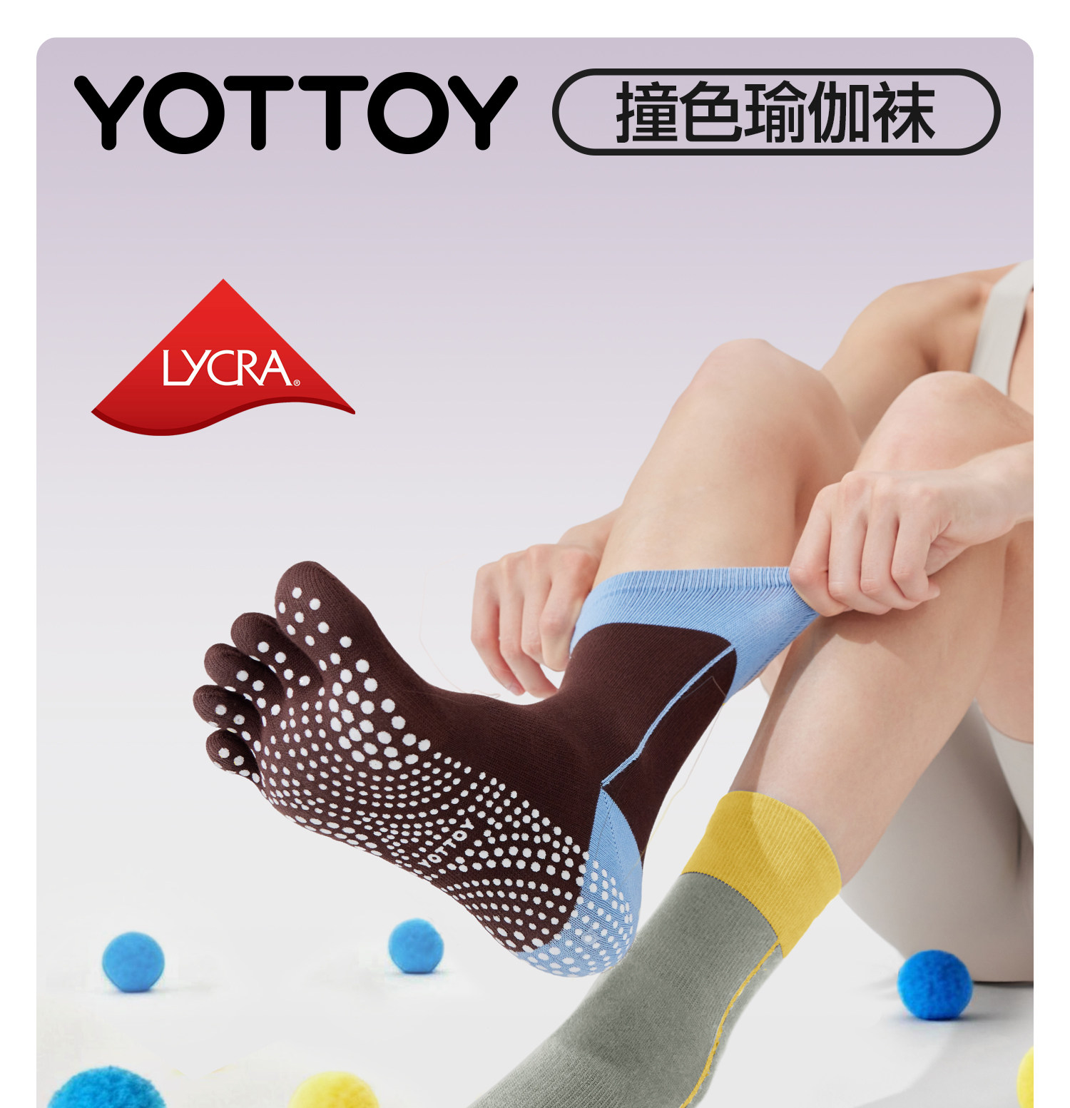 YOTTOY瑜伽袜 普拉提袜子 防滑专业 女室内中筒袜 五指袜 运动健身