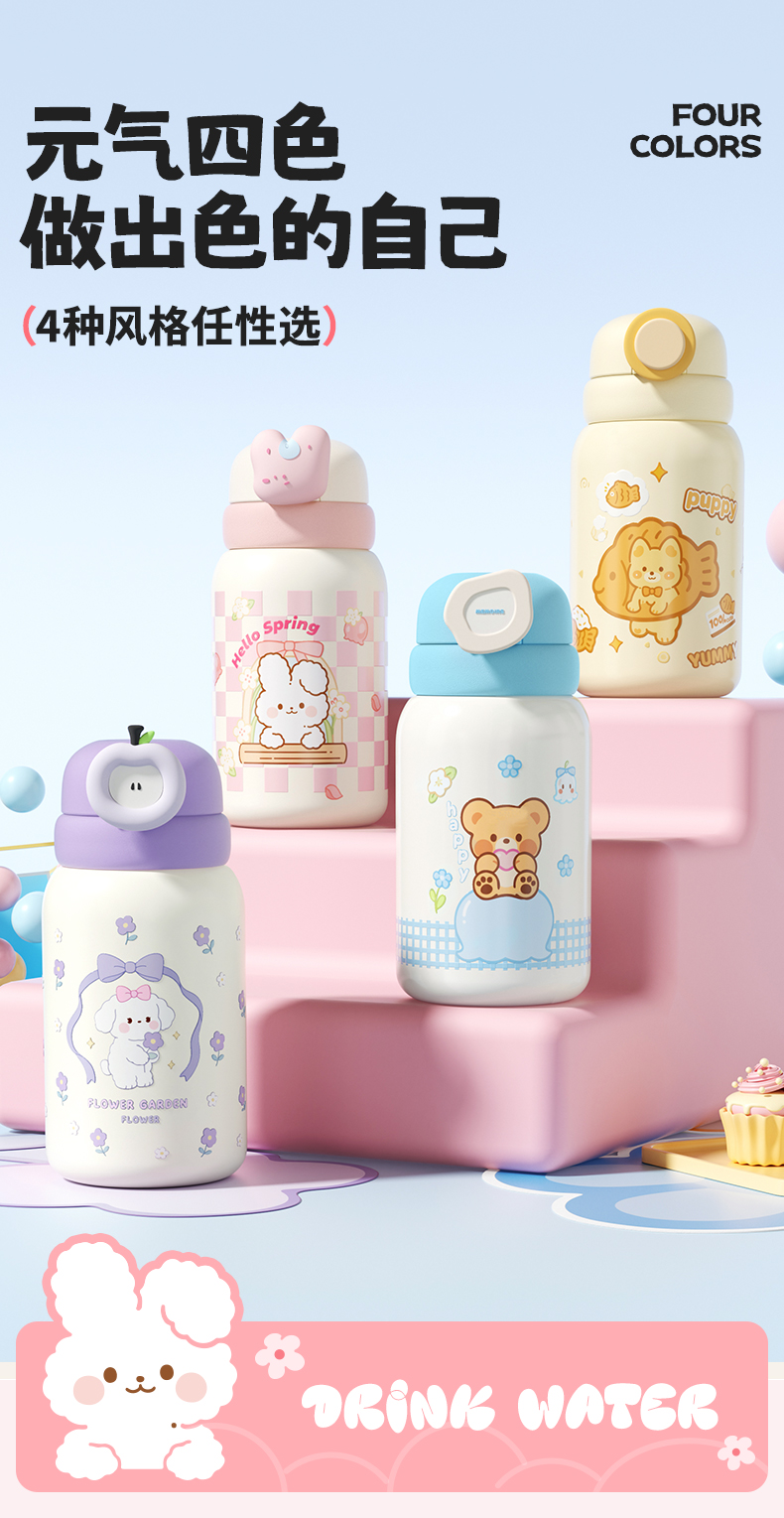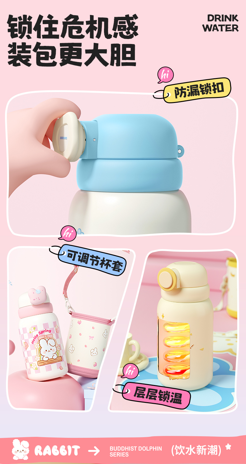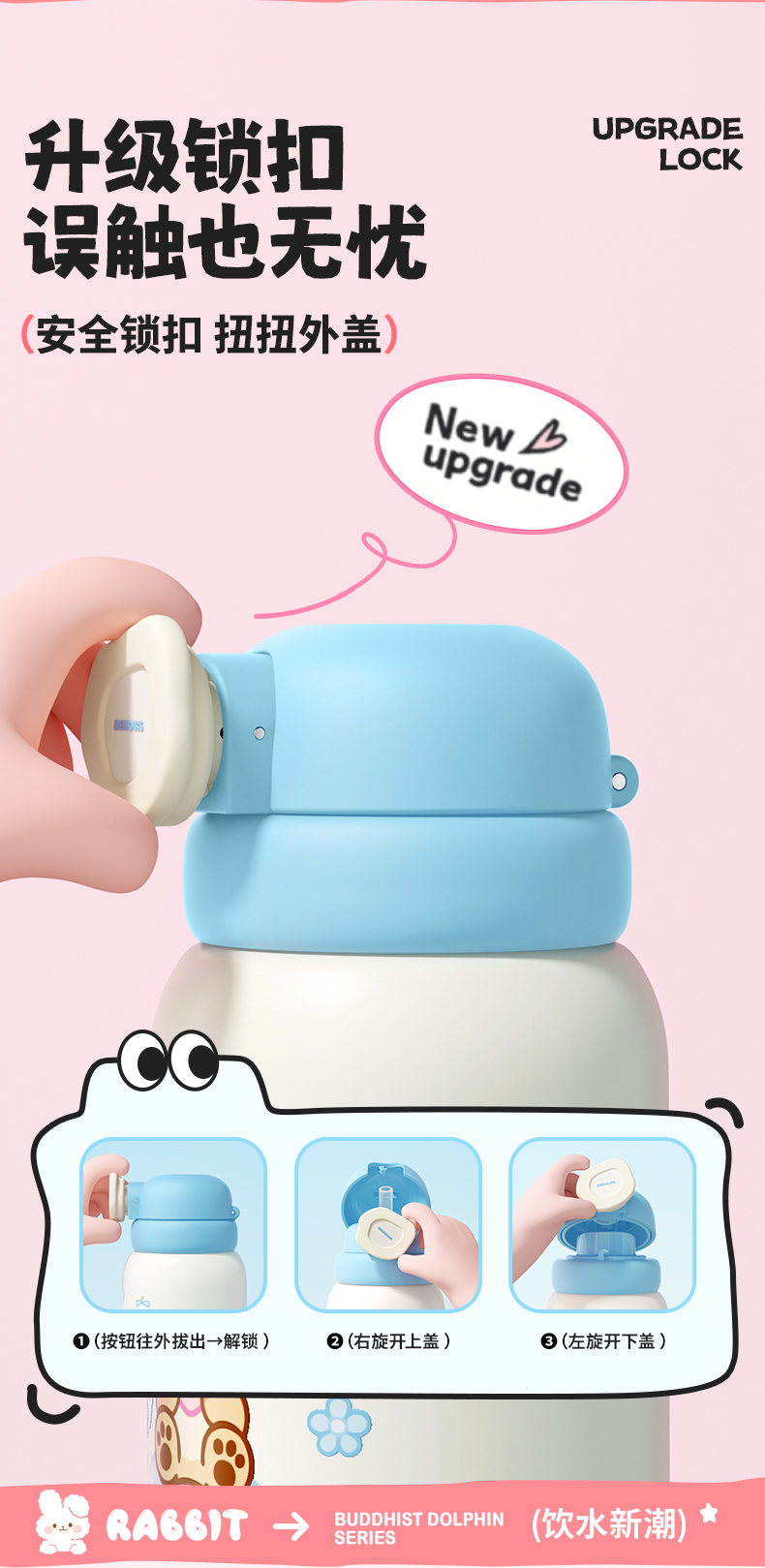 杯趣儿童系列扭扭杯许愿小兔316L不锈钢保温杯B-2061