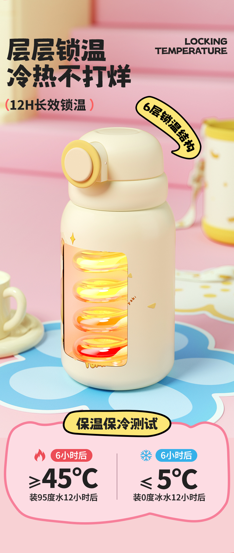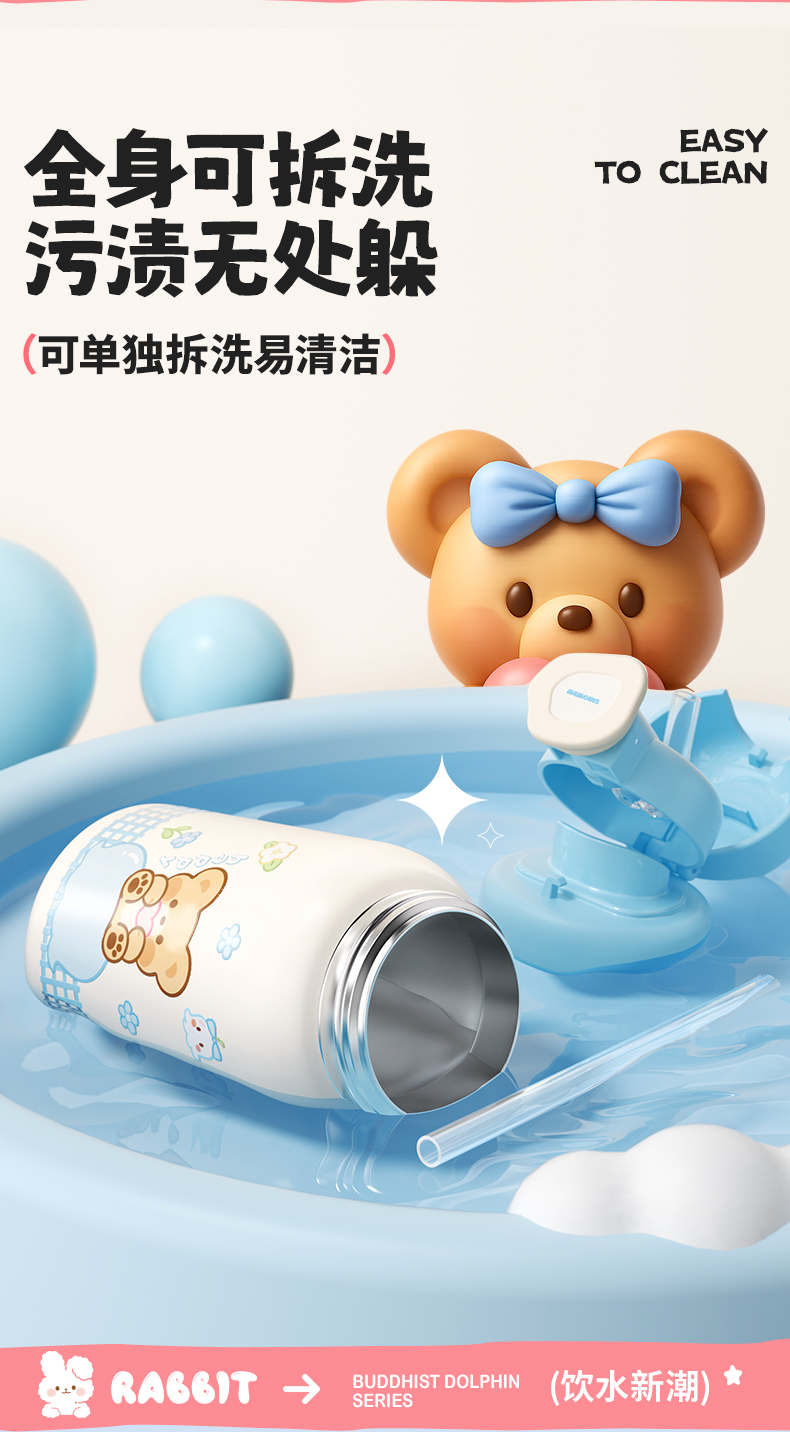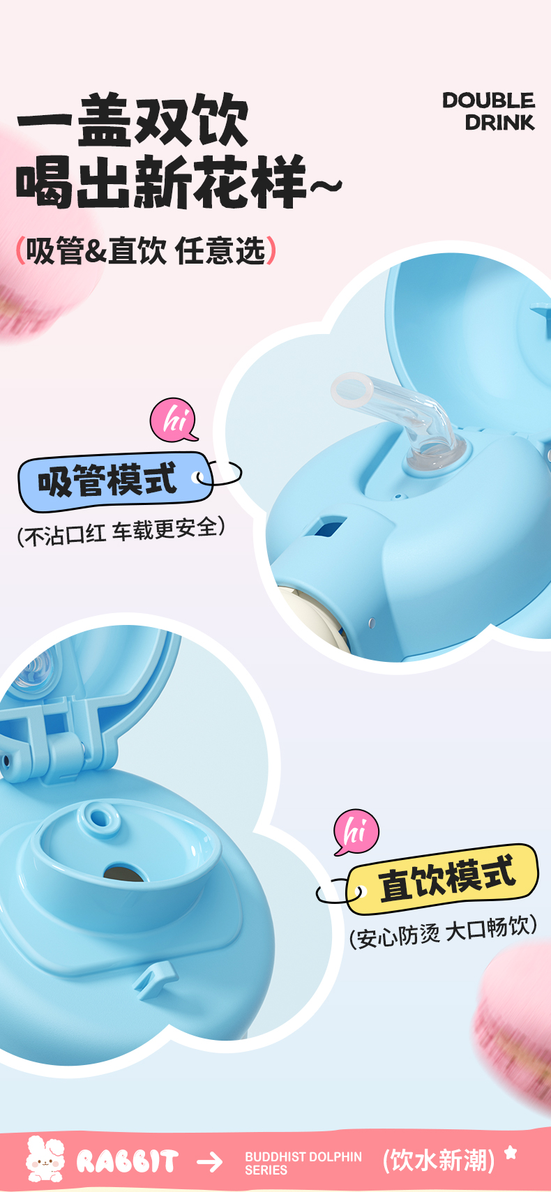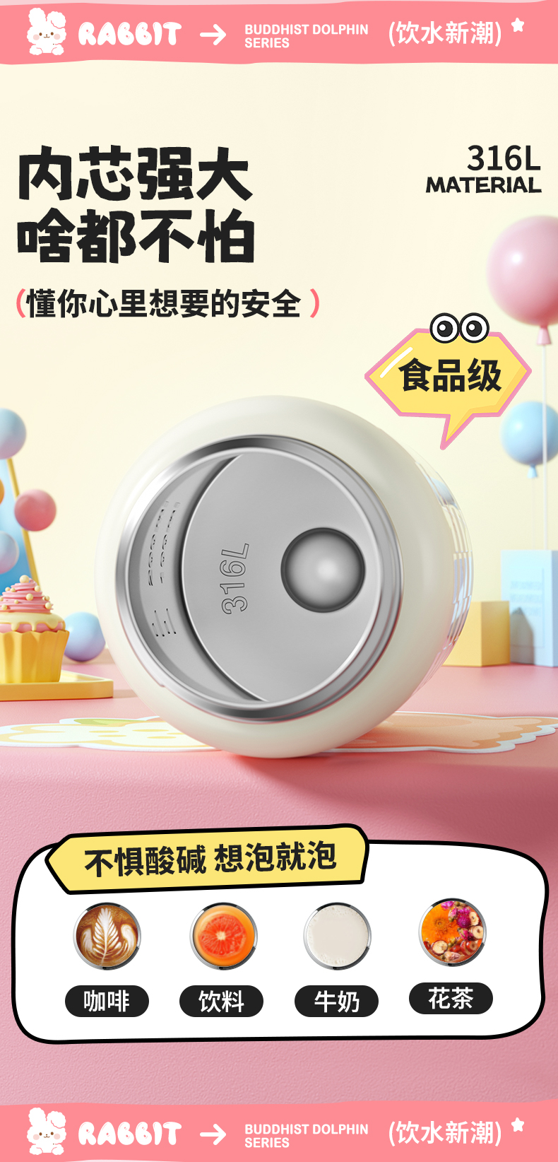 杯趣儿童系列扭扭杯许愿小兔316L不锈钢保温杯B-2061