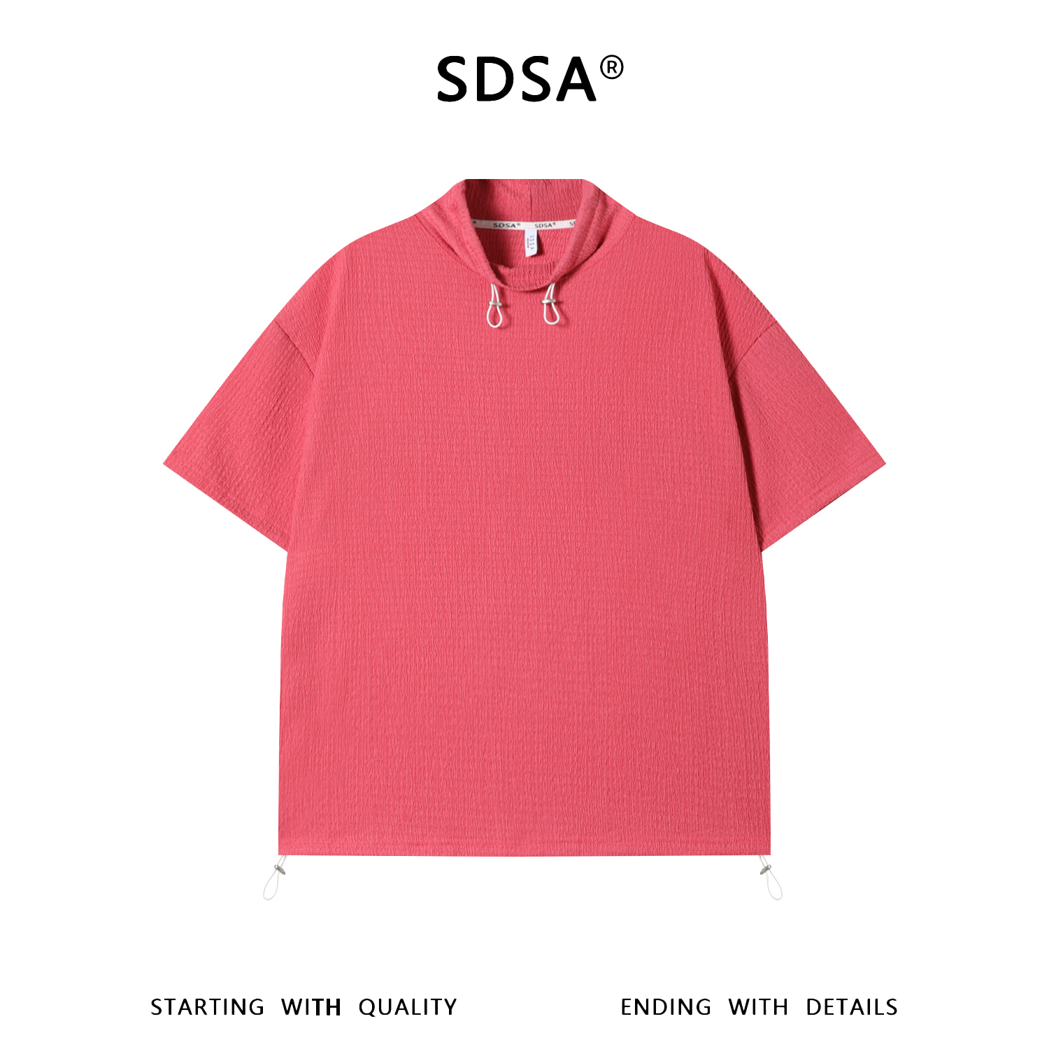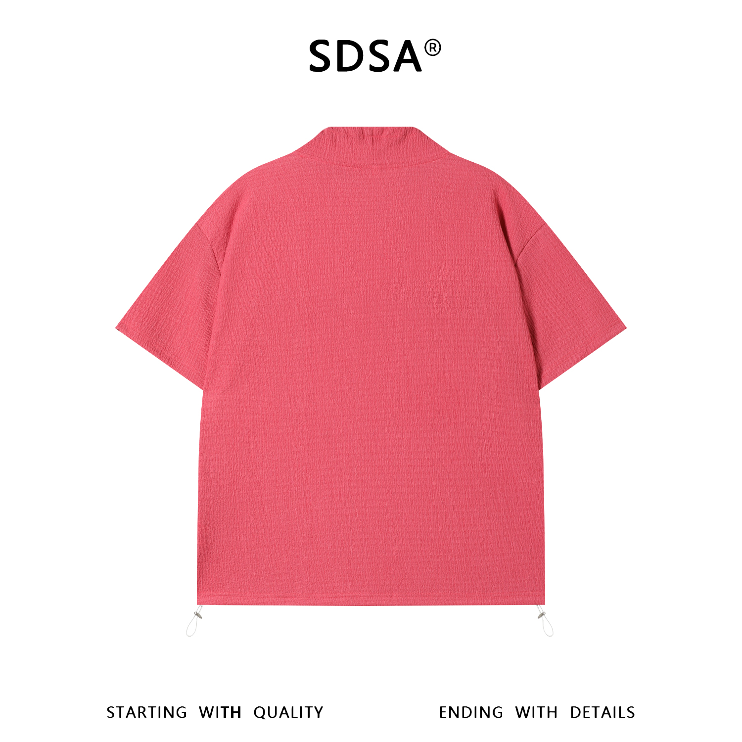 SDSA男装2026新款华夫格新中式盘扣抽绳短袖T恤宽松立领休闲上衣